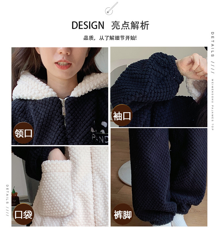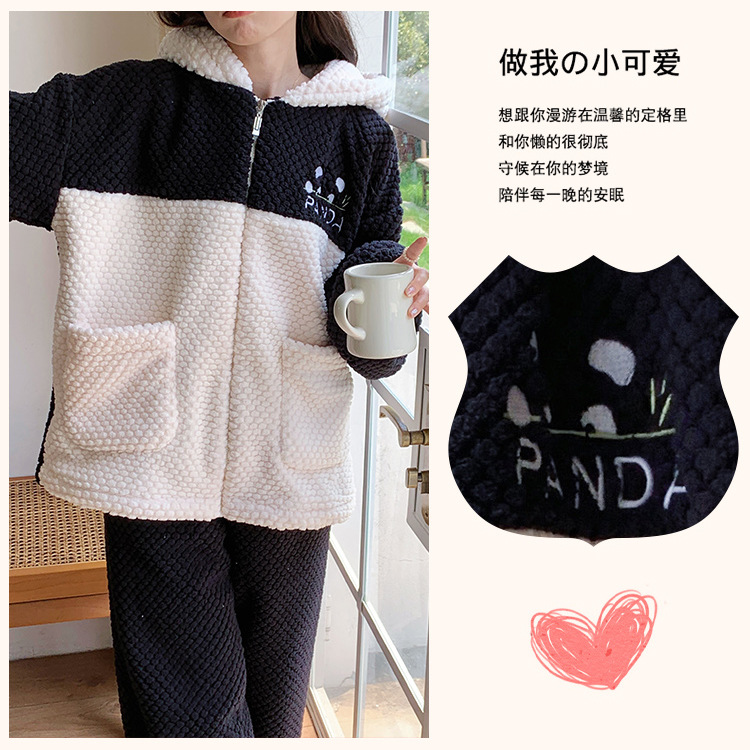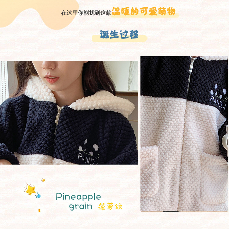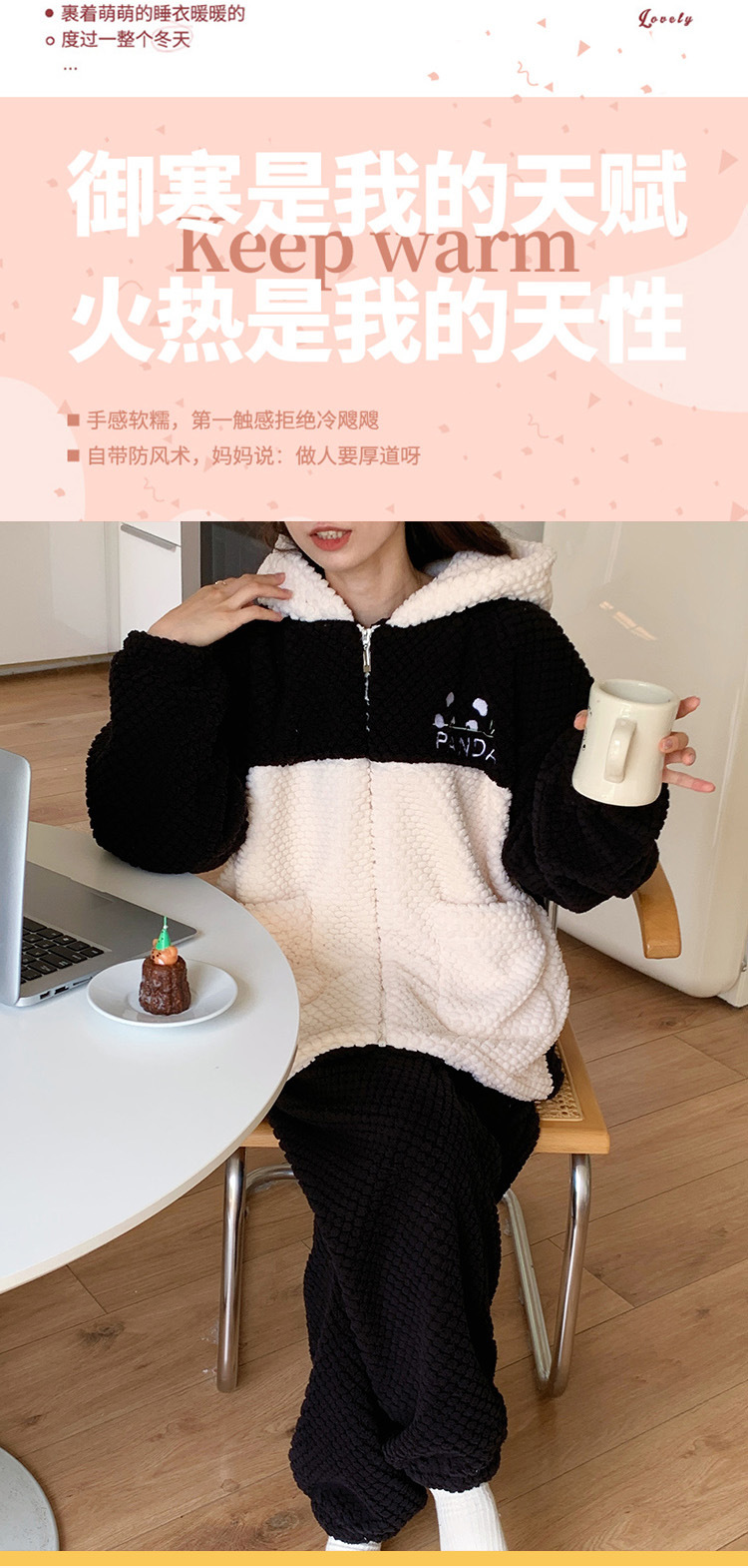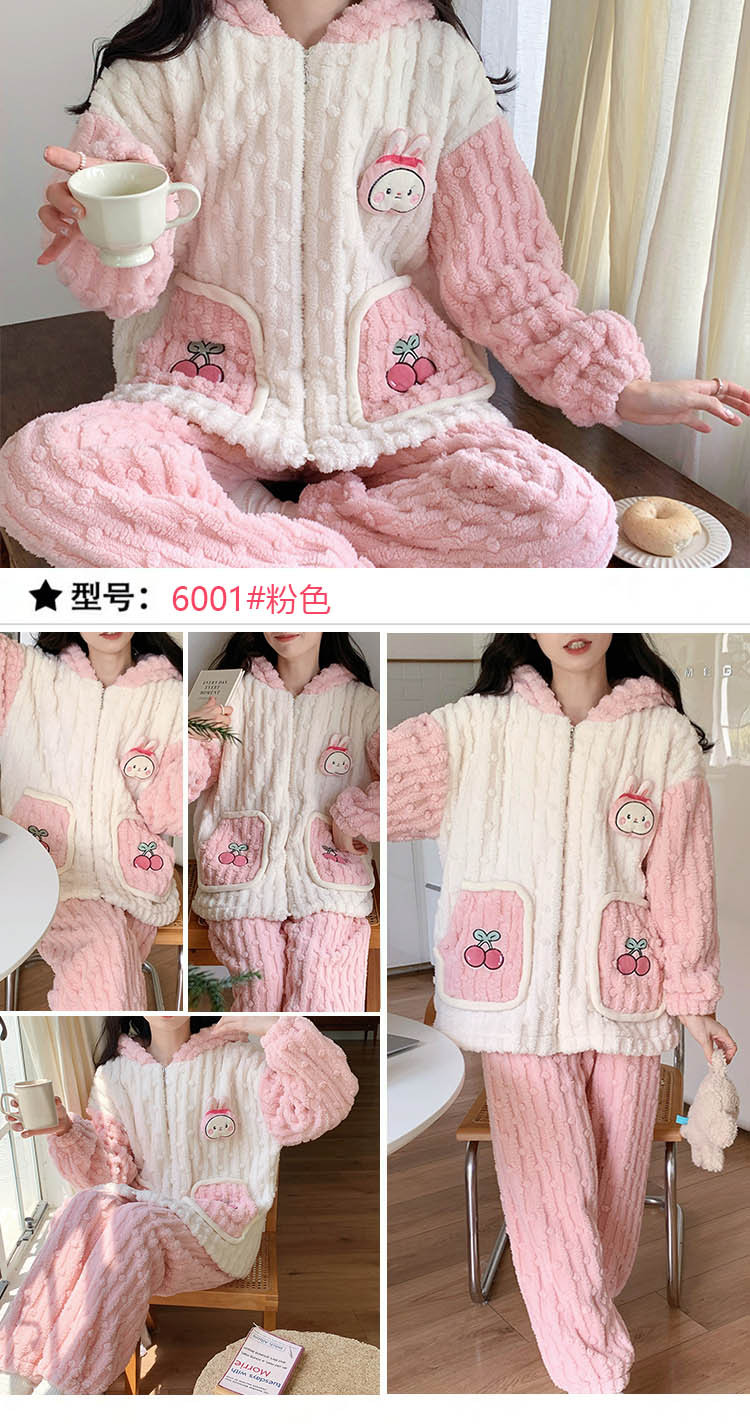可爱甜美风珊瑚绒睡衣女2023年冬季新款加厚保暖法兰绒拉链家居服