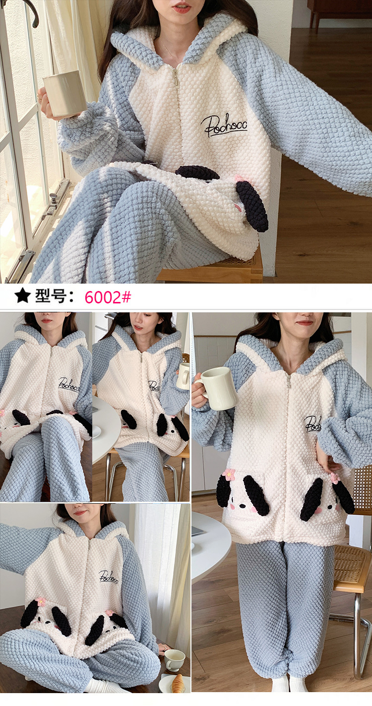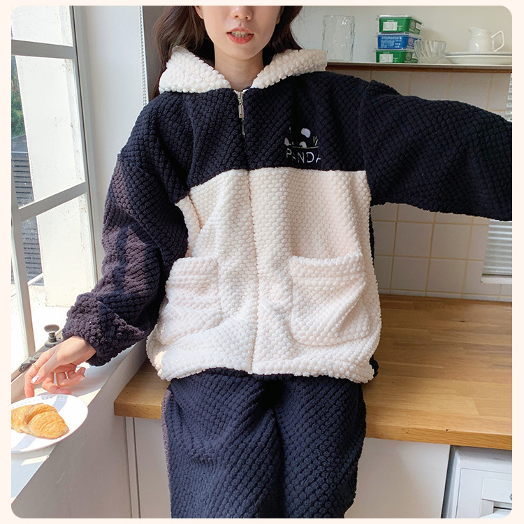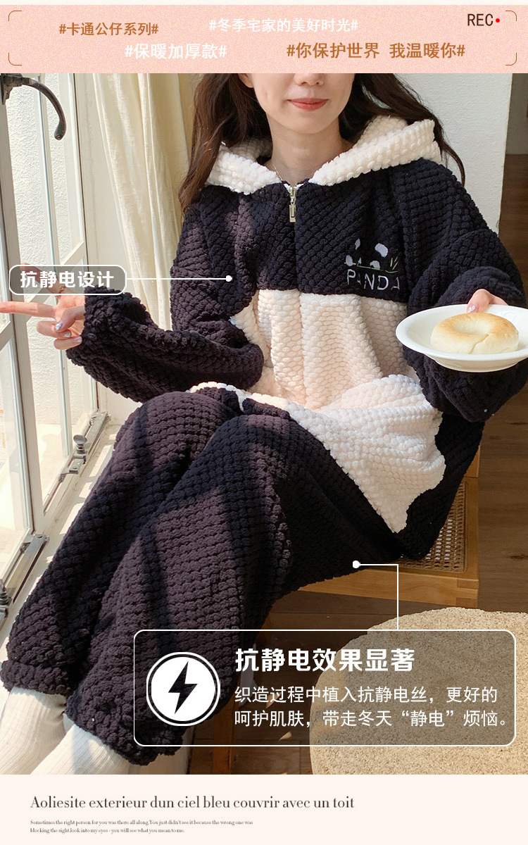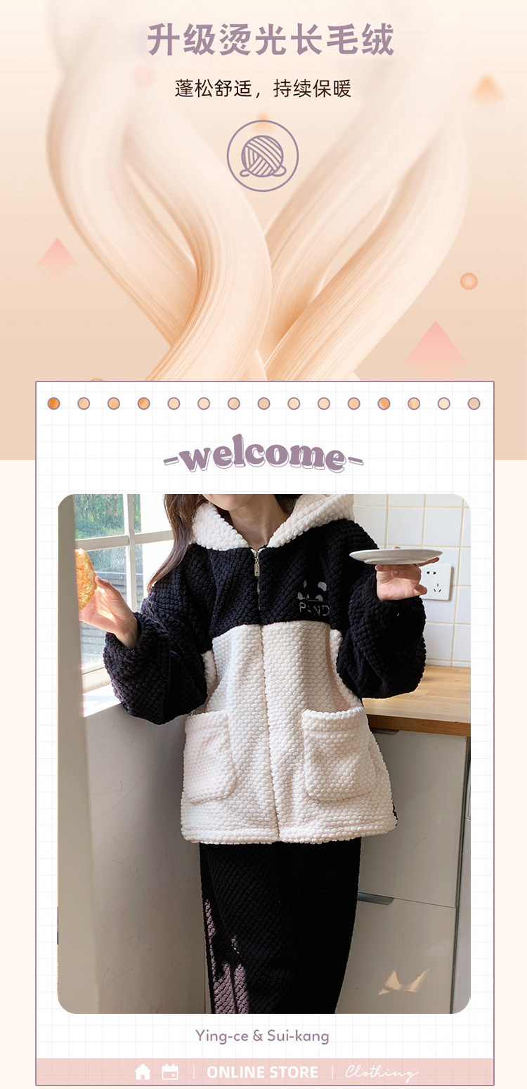 可爱甜美风珊瑚绒睡衣女2023年冬季新款加厚保暖法兰绒拉链家居服