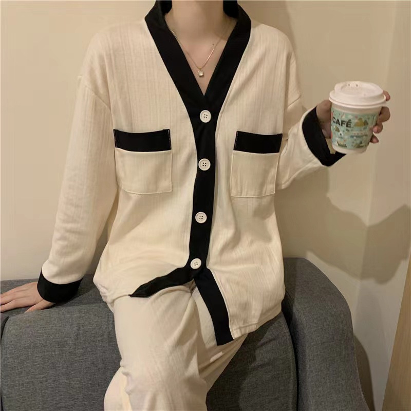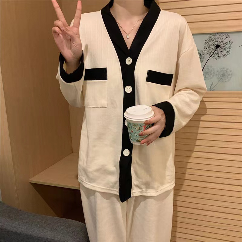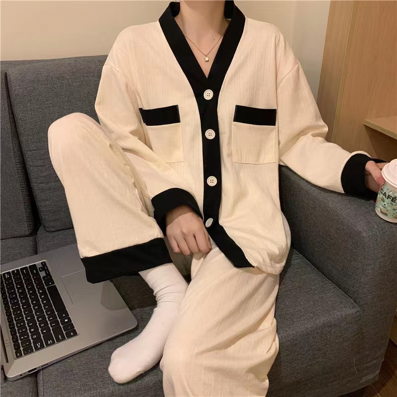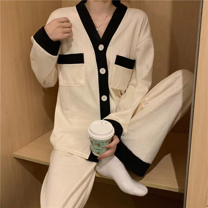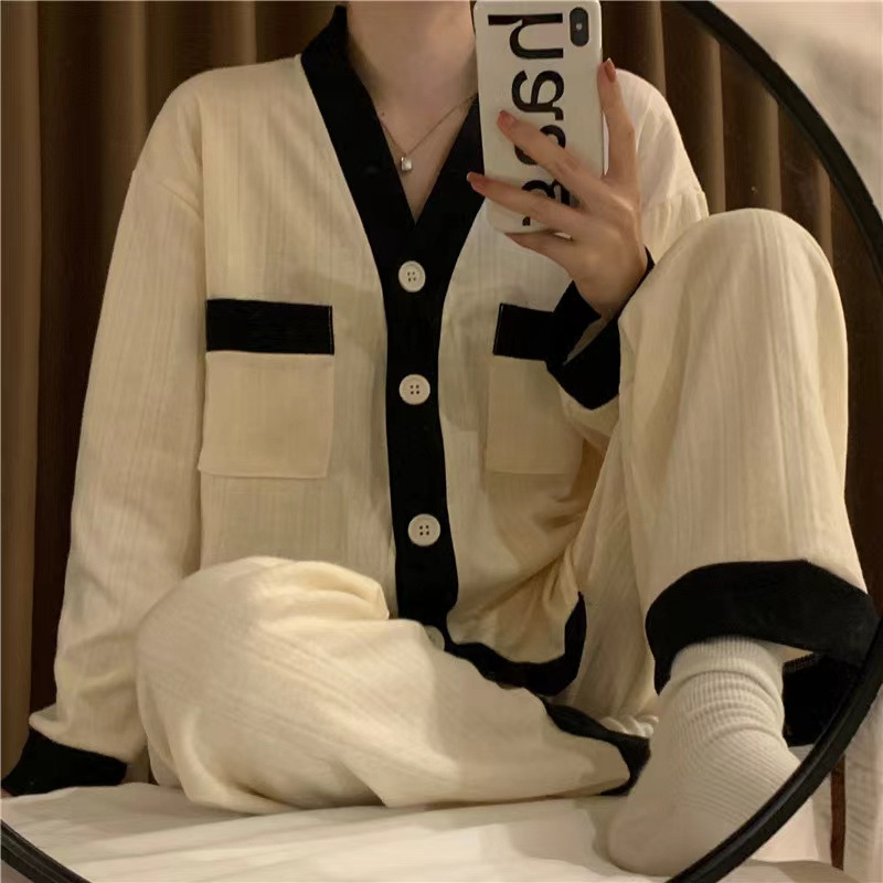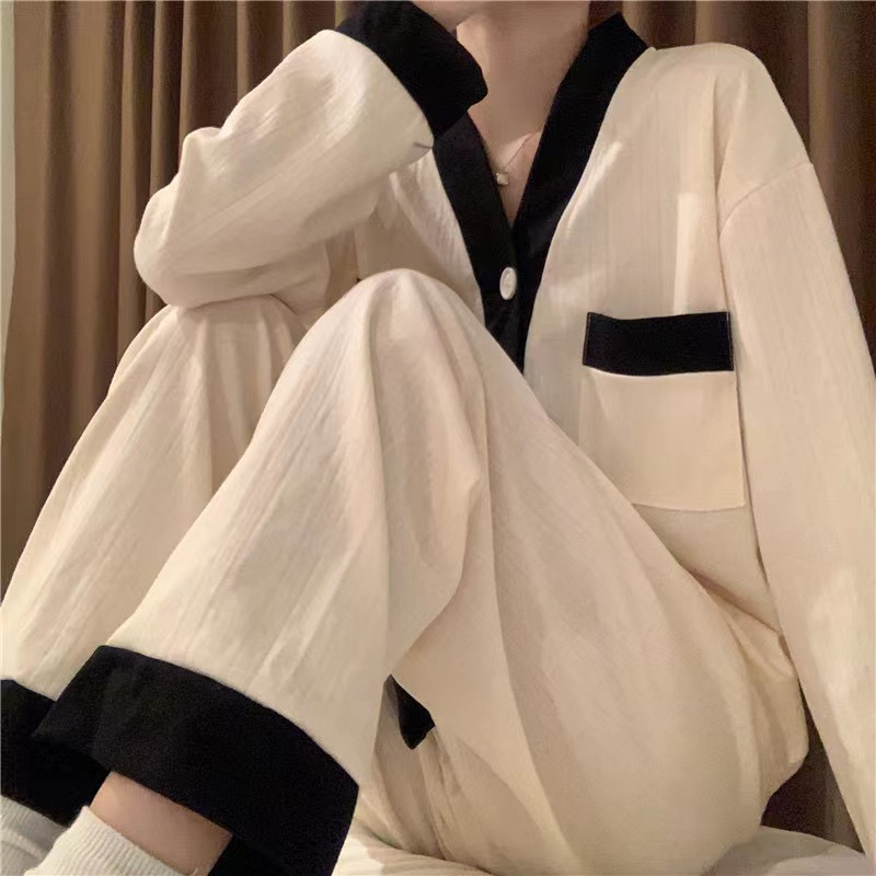 秋季可爱睡衣女新款简约时尚高级感长袖长裤舒适家居服套装可外穿