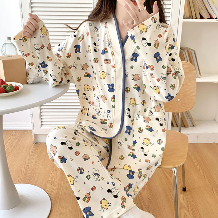 2023年卡通睡衣女秋季新款可爱甜美时尚风开衫家居服可外穿两件套