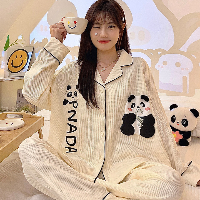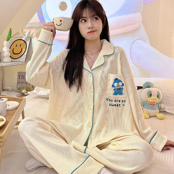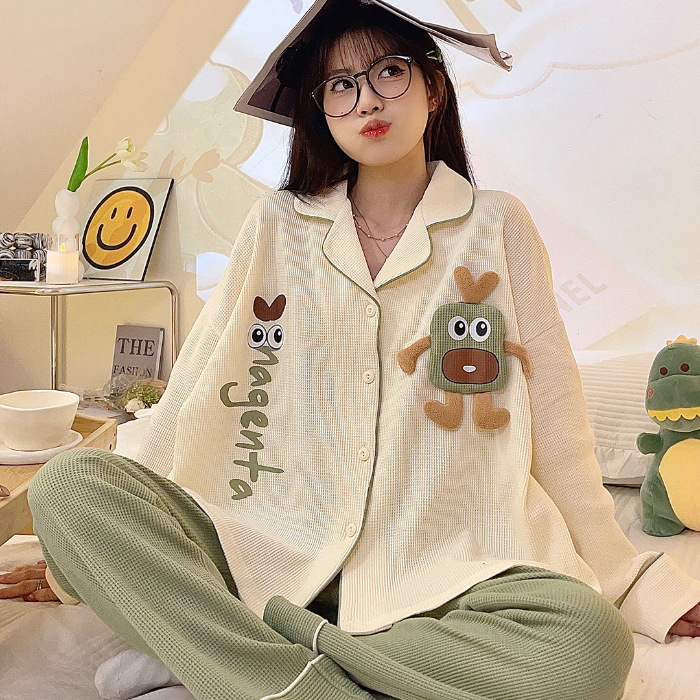 秋季卡通可爱甜美风开衫睡衣女2023新款休闲舒适家居服套装可外穿