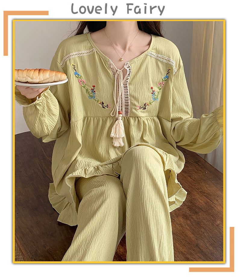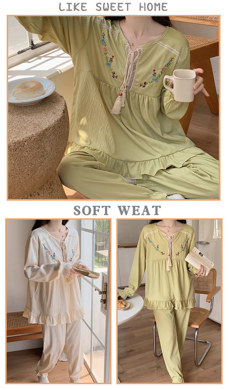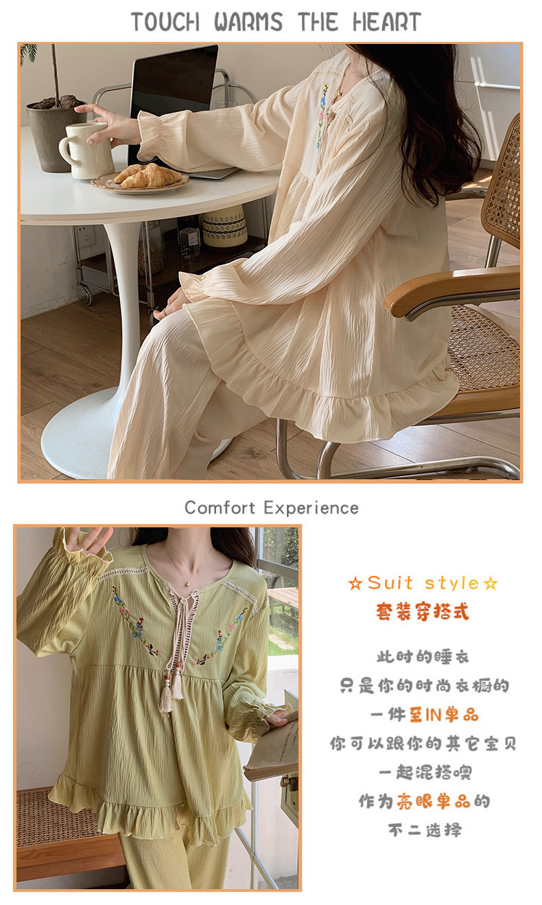 2023秋季可爱睡衣女新款甜美时尚风长袖长裤套装舒适家居服可外穿