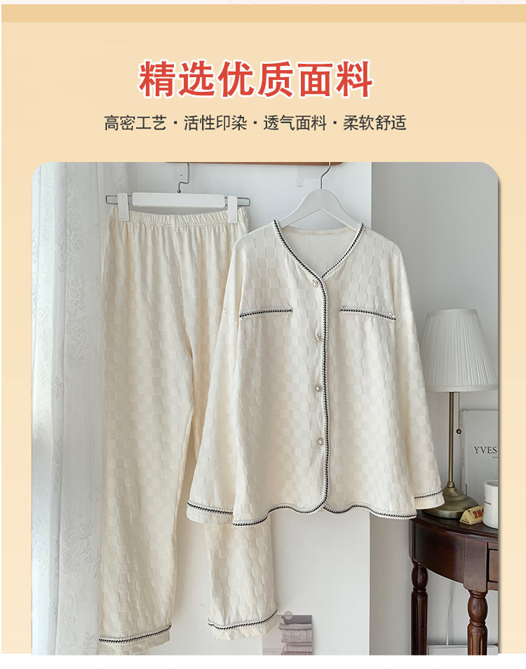 秋季休闲睡衣女韩版清新可爱甜美小香风开衫简约家居服套装可外穿