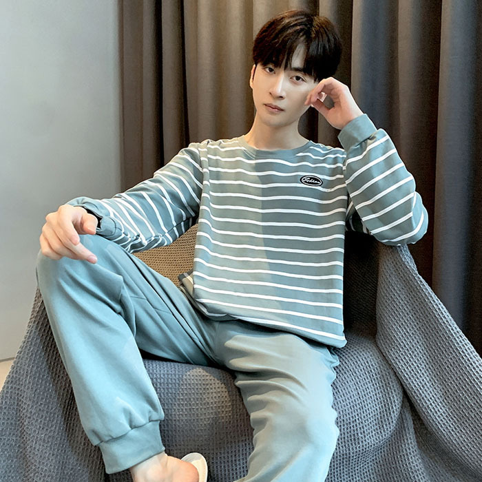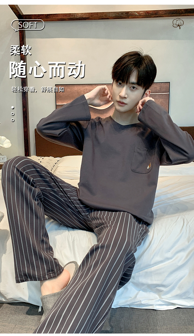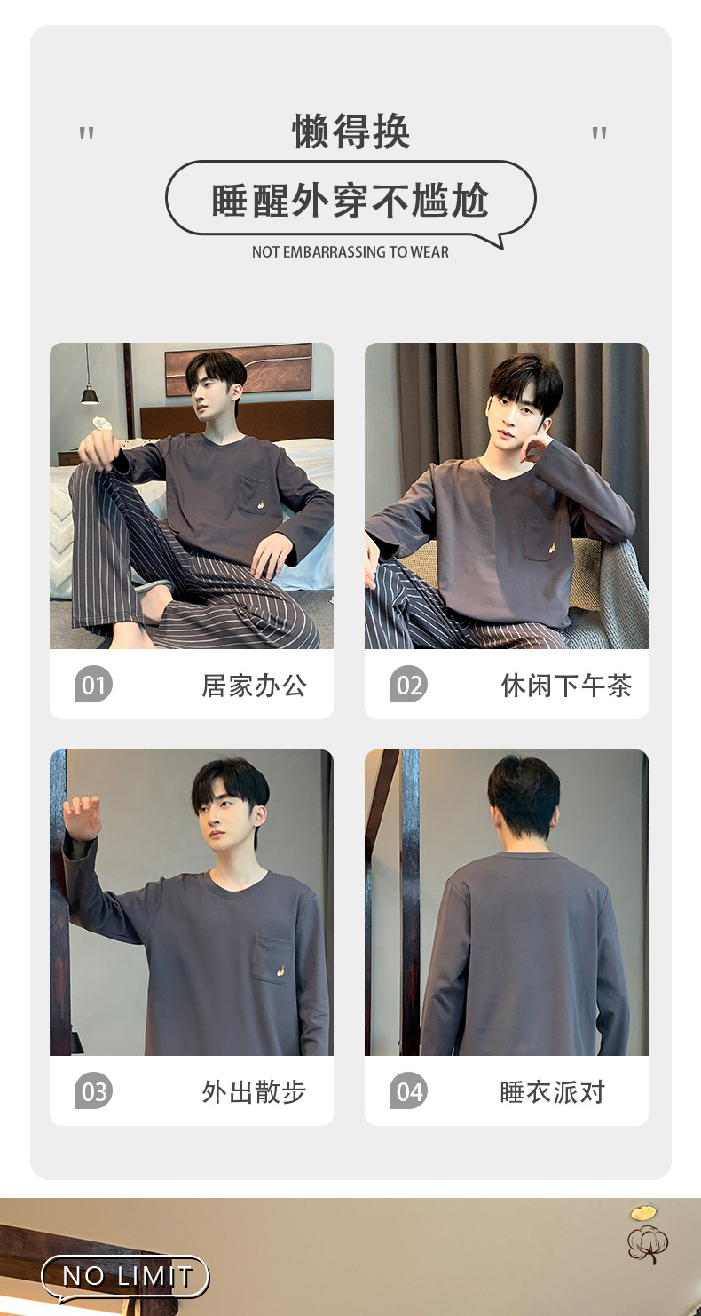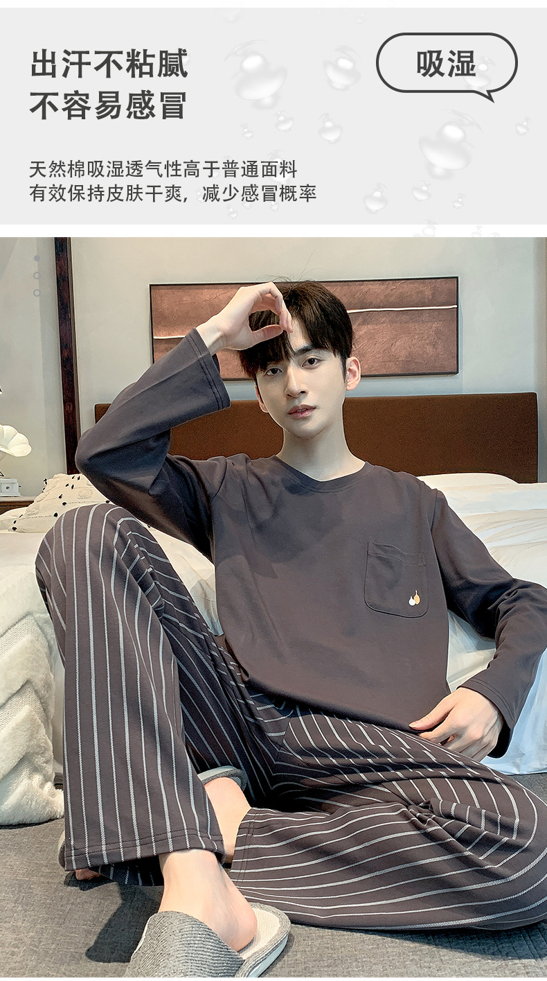 睡衣男士秋季休闲简约时尚2023新款长袖长裤套装舒适家居服可外穿