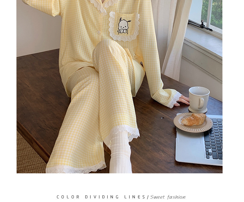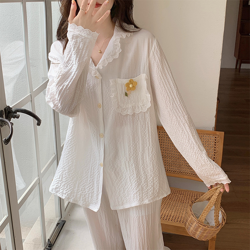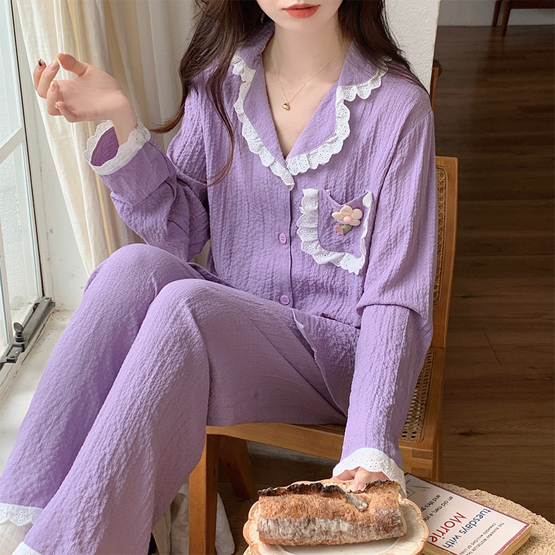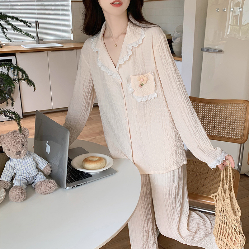 可爱开衫睡衣女2023秋季新款甜美舒适风长袖长裤套装家居服可外穿