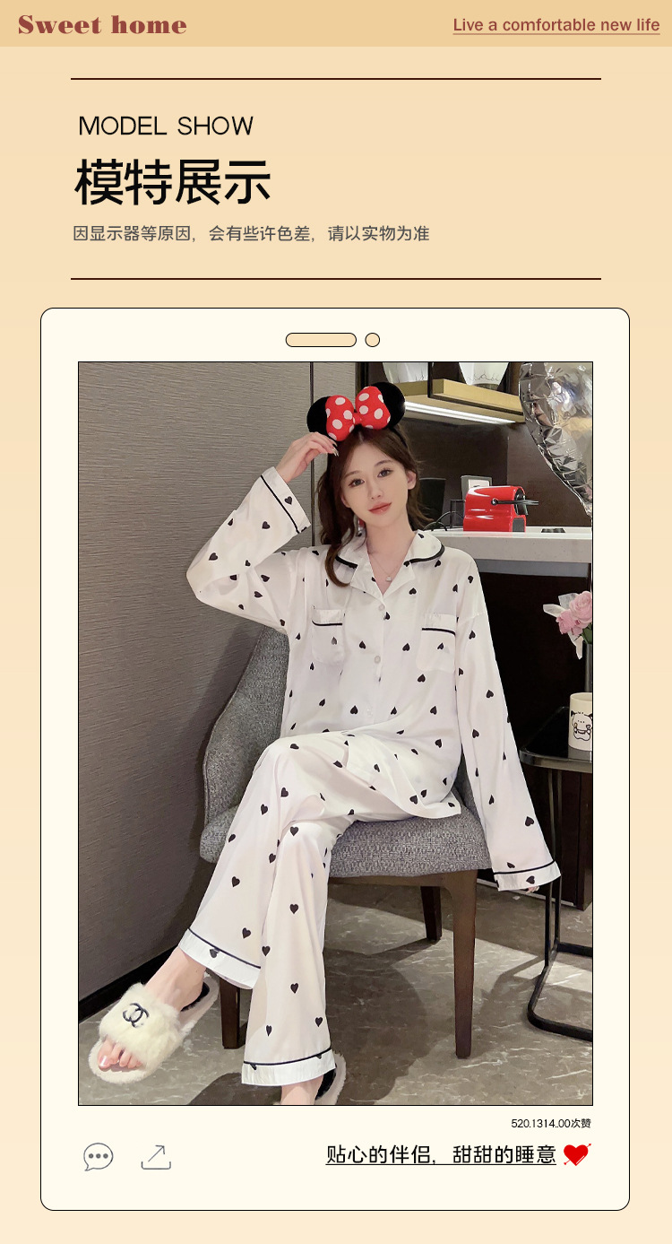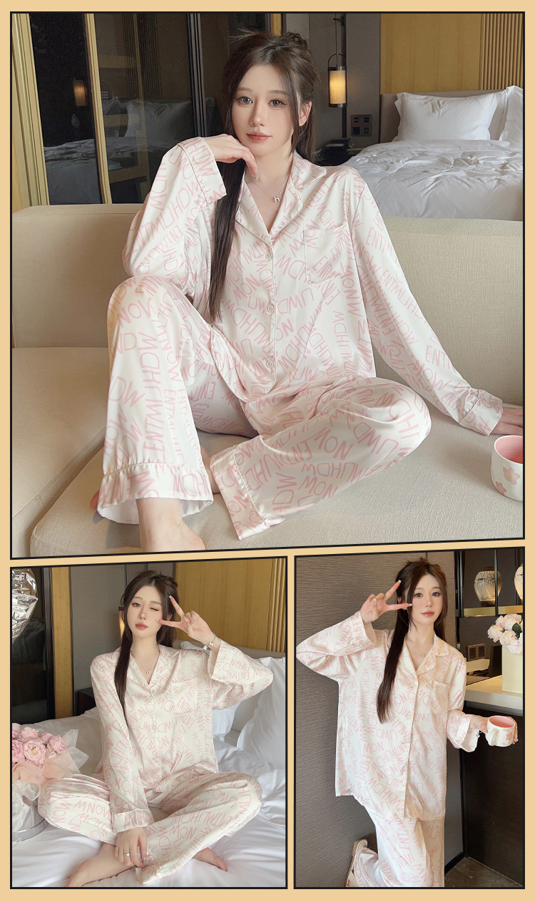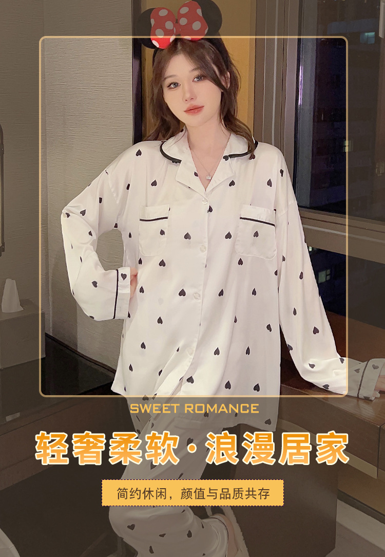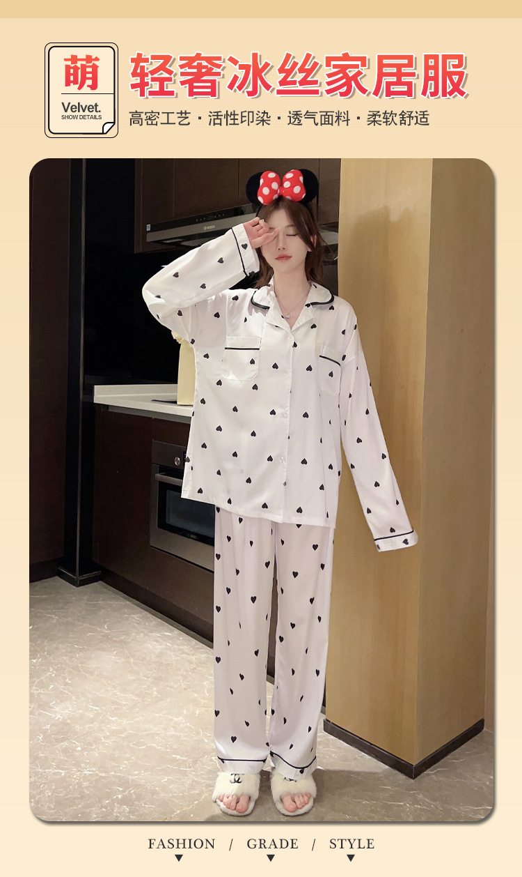 秋季冰丝睡衣女可爱甜美风舒适开衫家居服2023年新款两件套可外穿