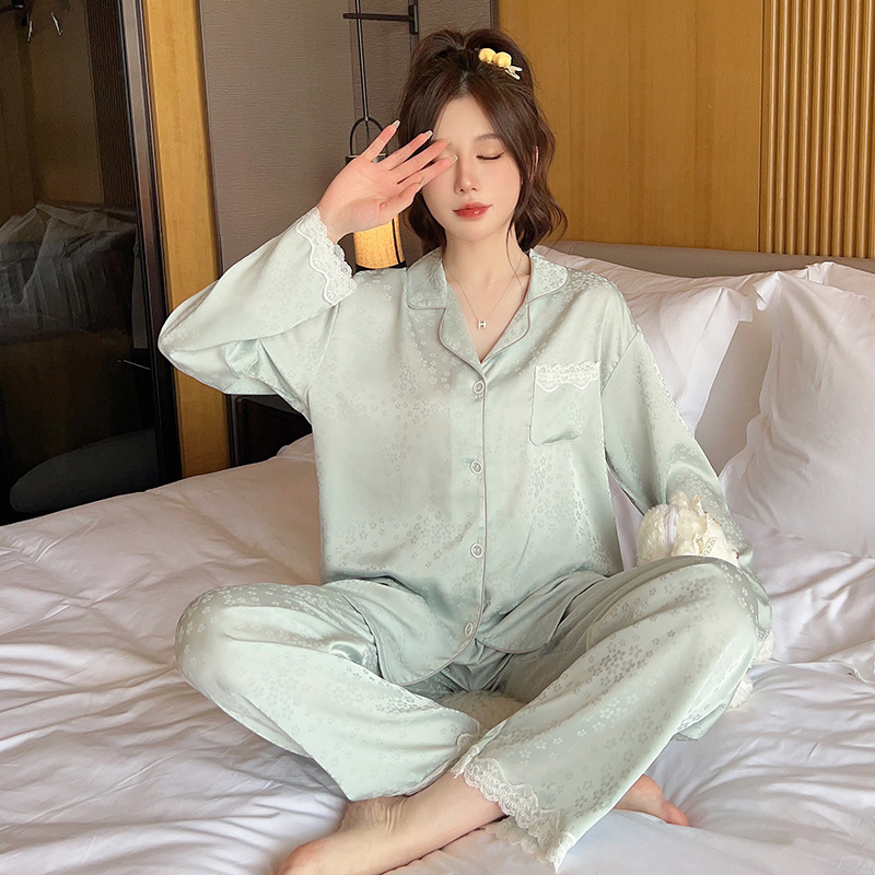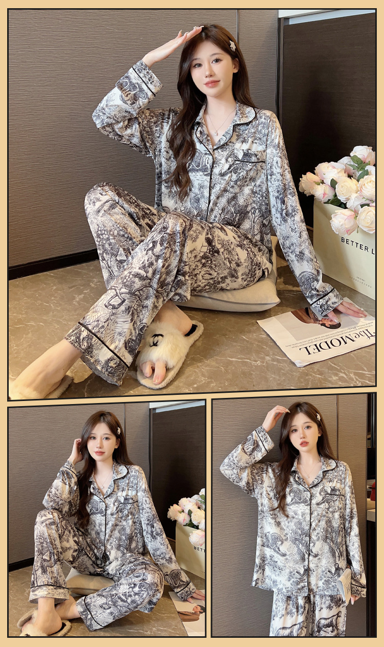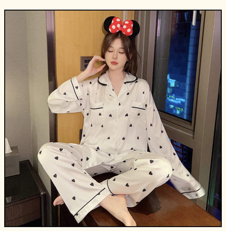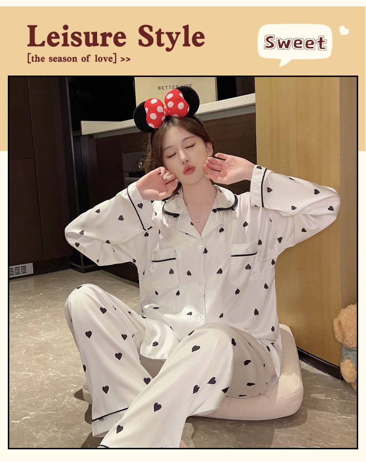 秋季冰丝睡衣女可爱甜美风舒适开衫家居服2023年新款两件套可外穿