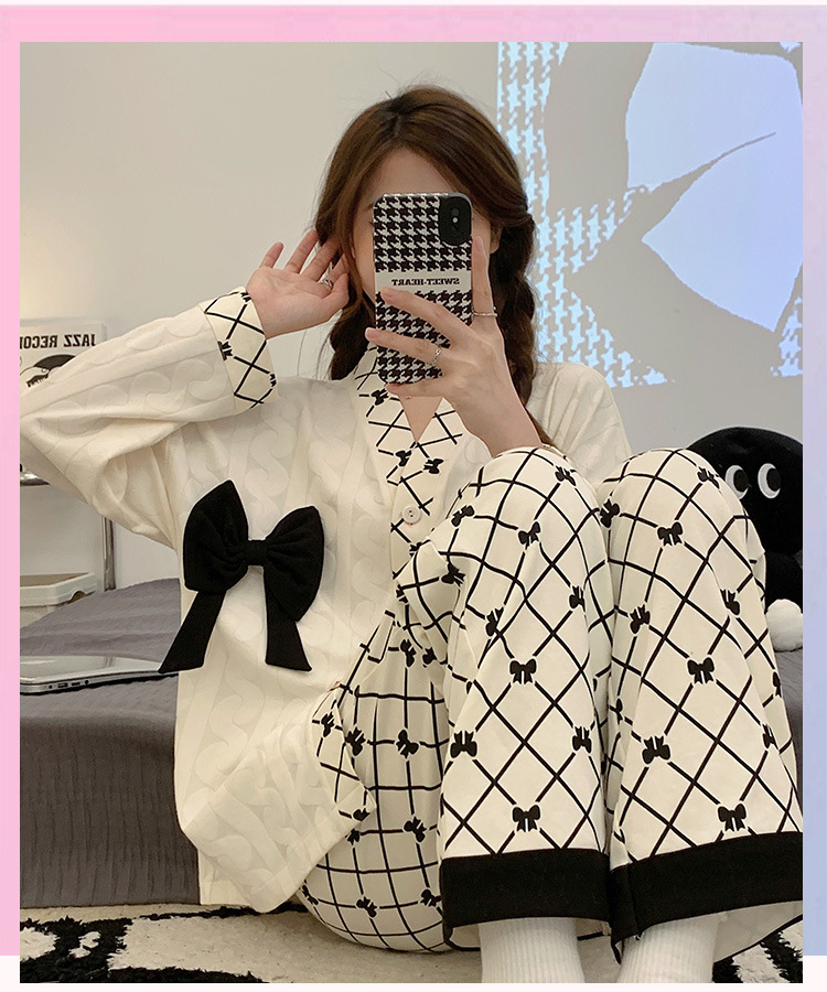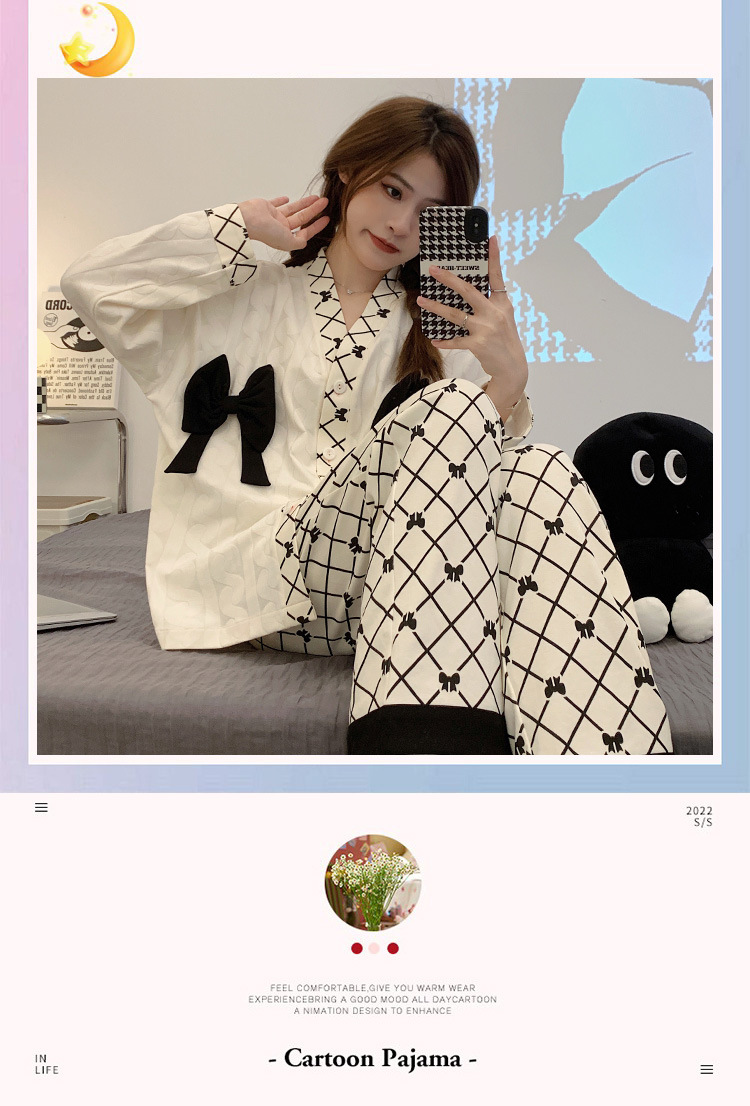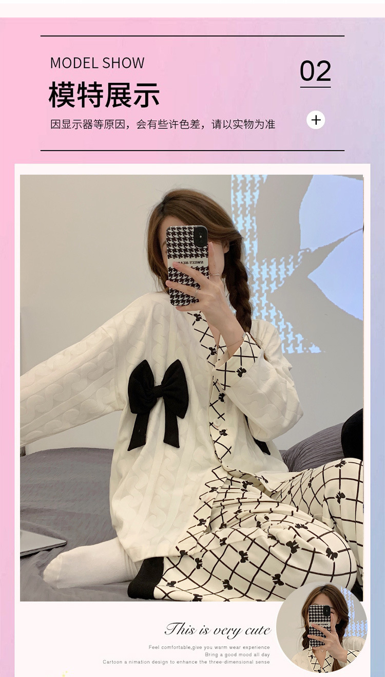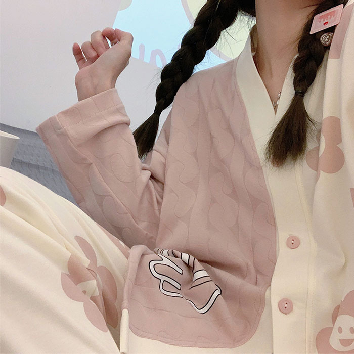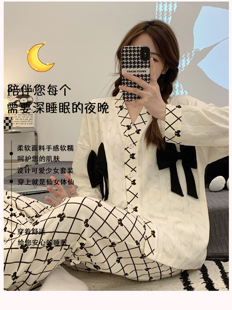 开衫睡衣女秋天可爱甜美小香风2023新款宽松舒适家居服套装可外穿