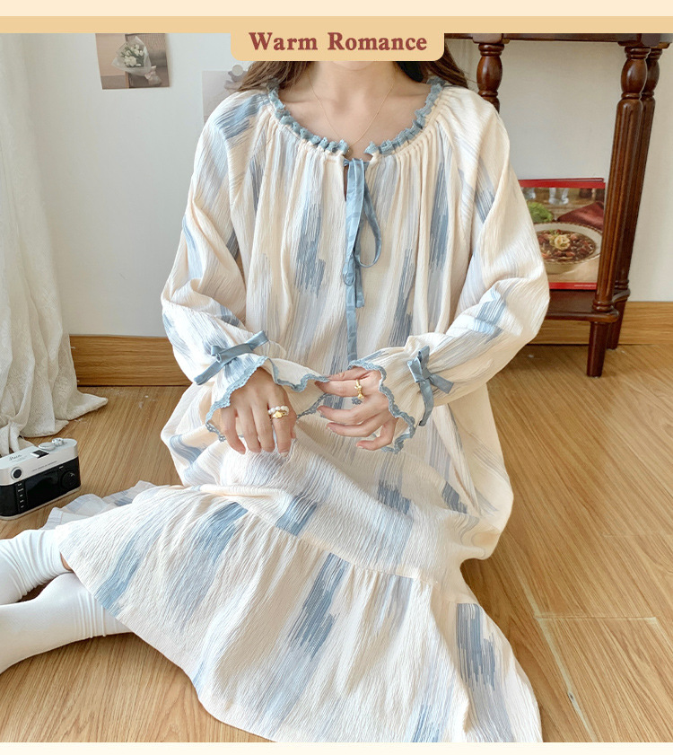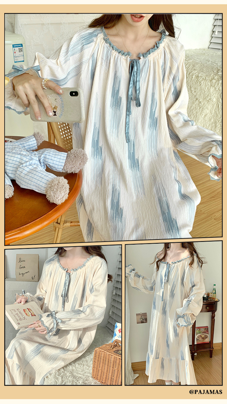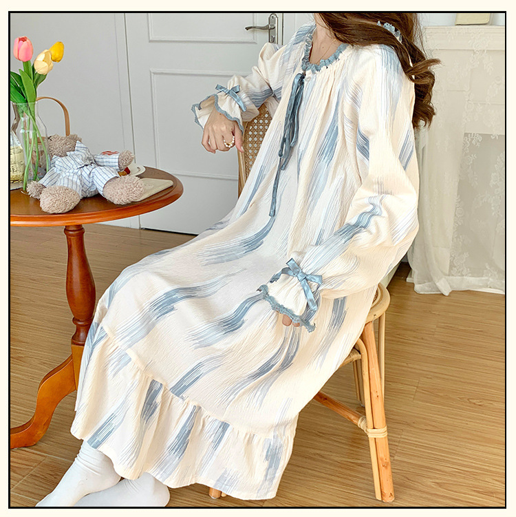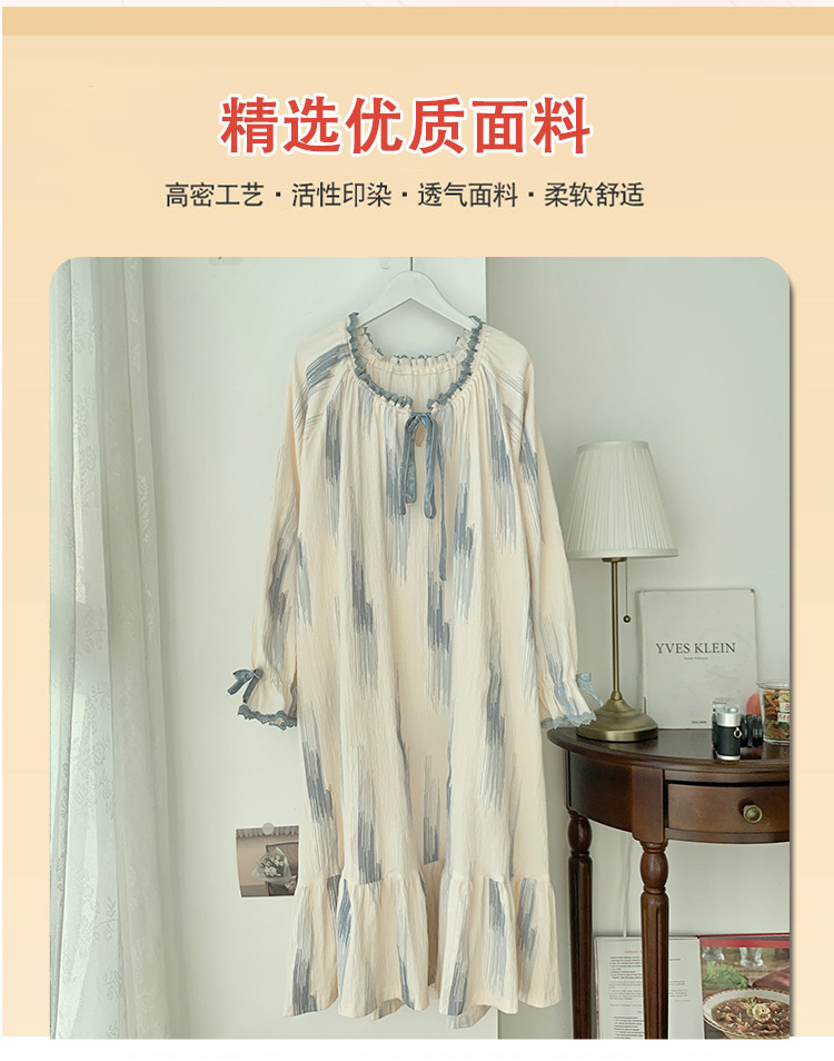 可爱长袖睡裙女秋季2023新款小清新时尚棉质舒适长裙家居服可外穿