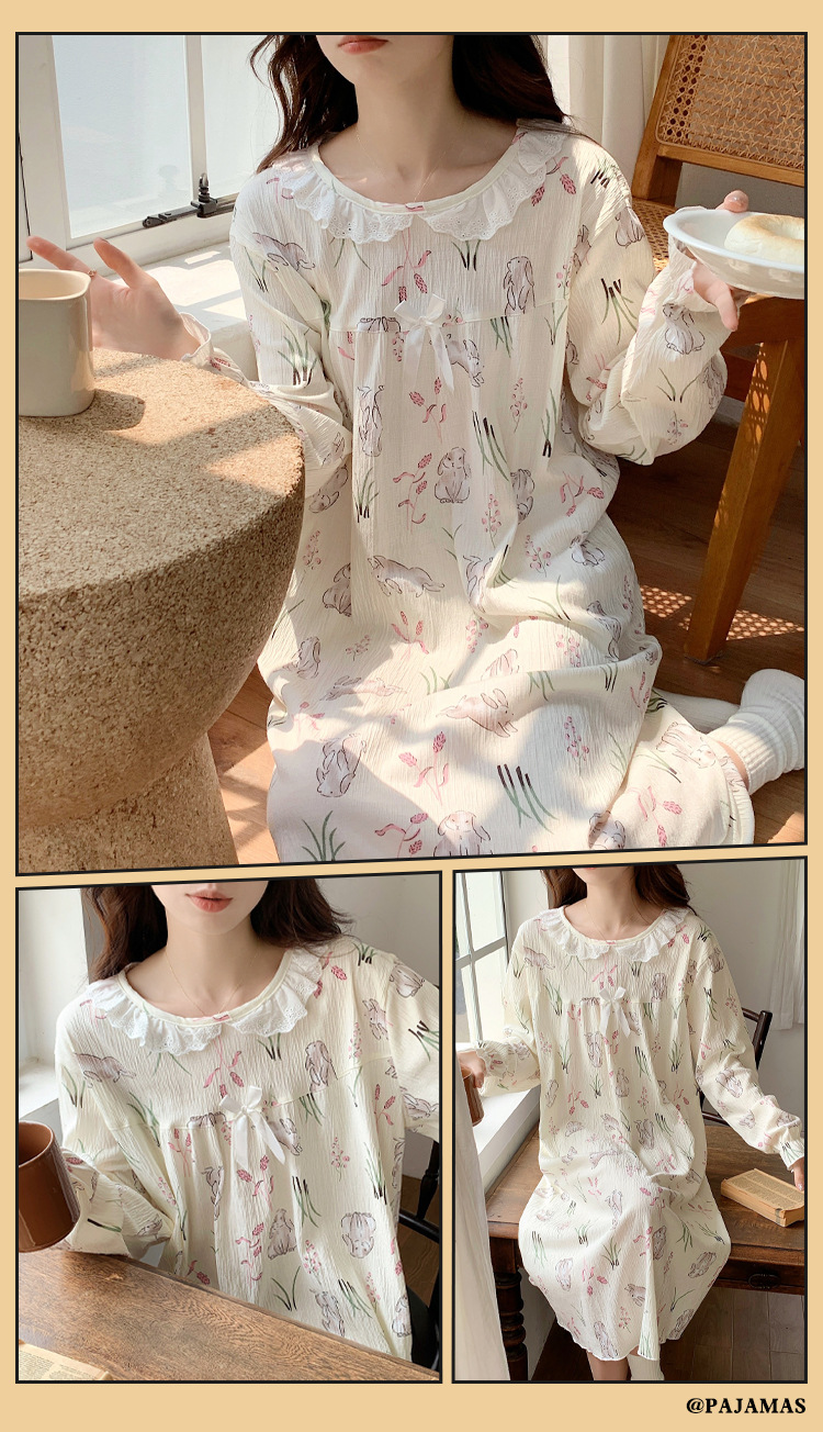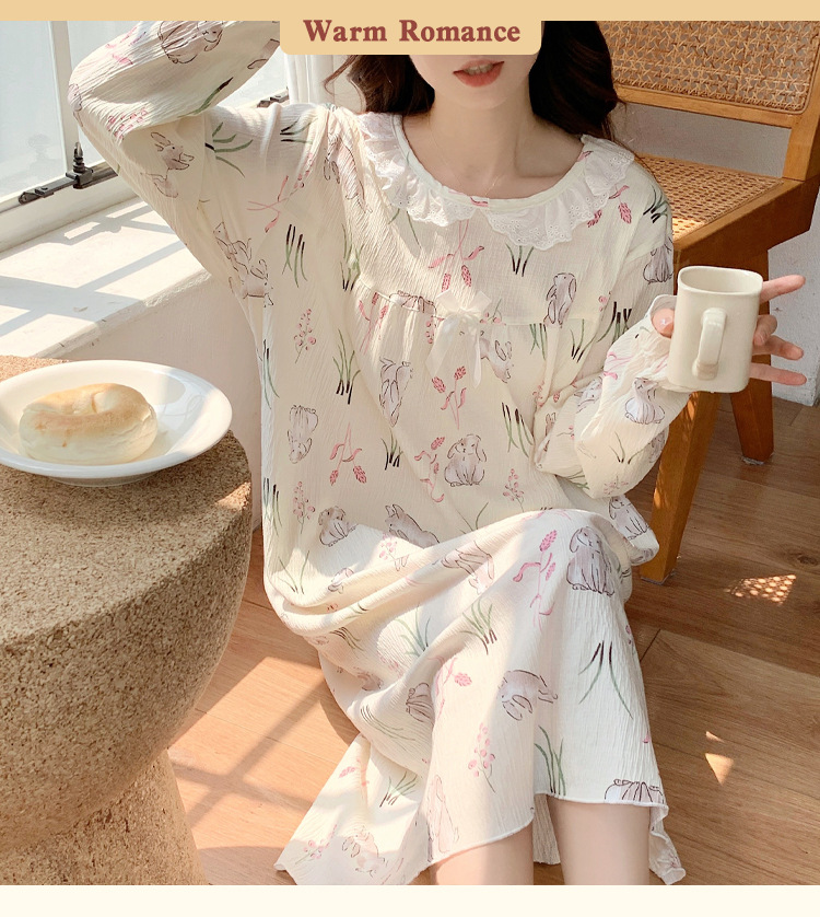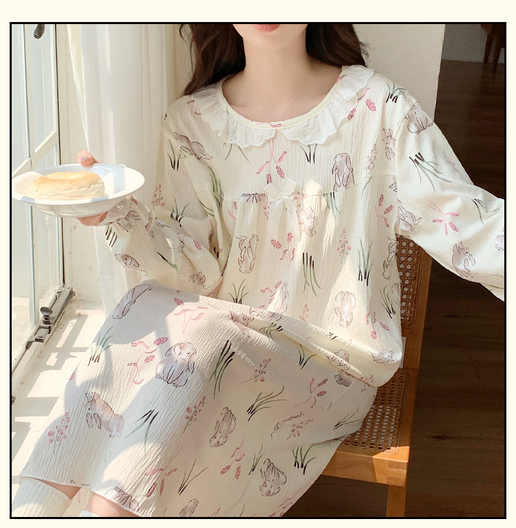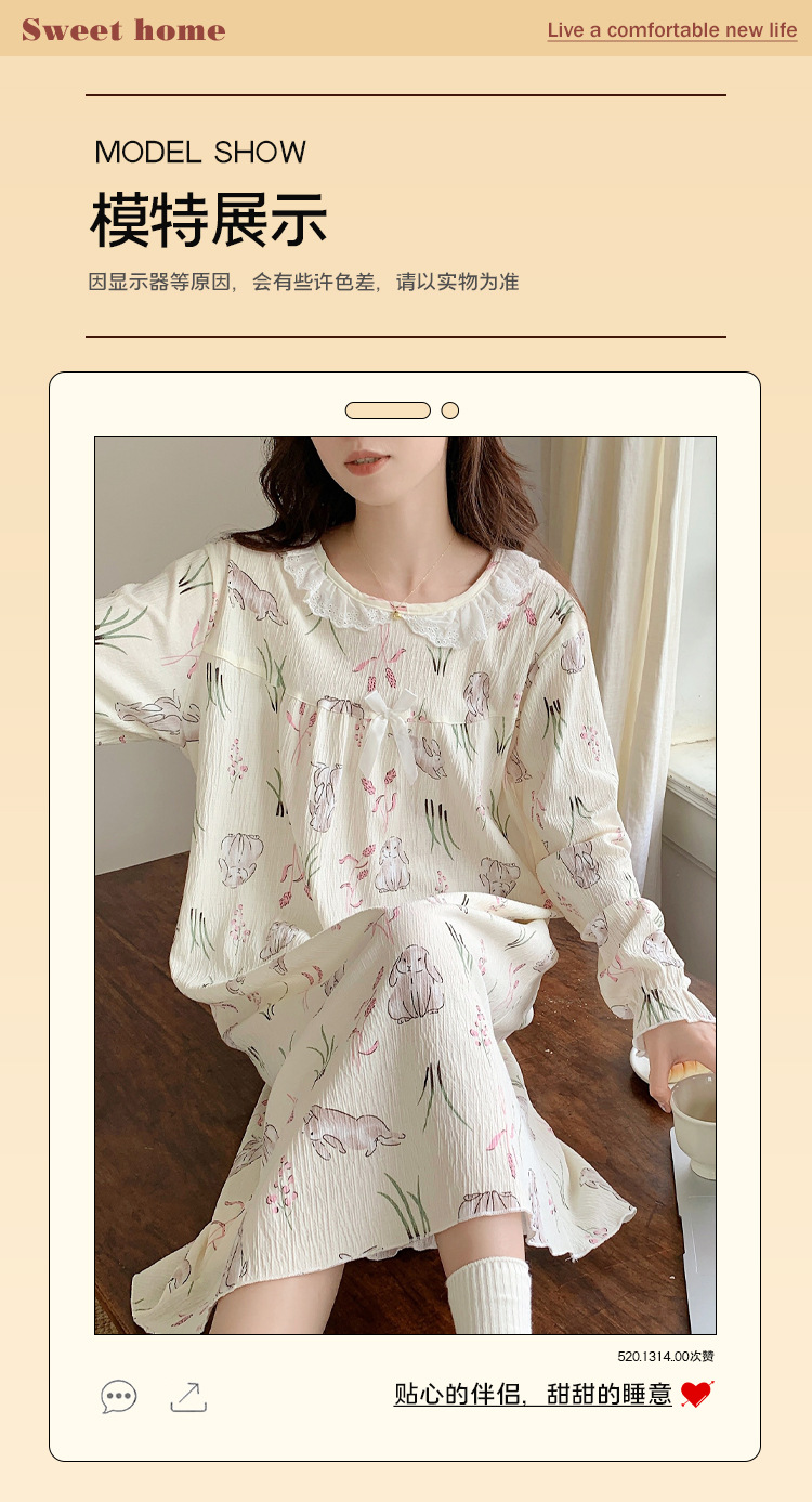 秋冬可爱甜美长袖睡裙女新款邹布宽松小清新舒适长裙家居服可外穿
