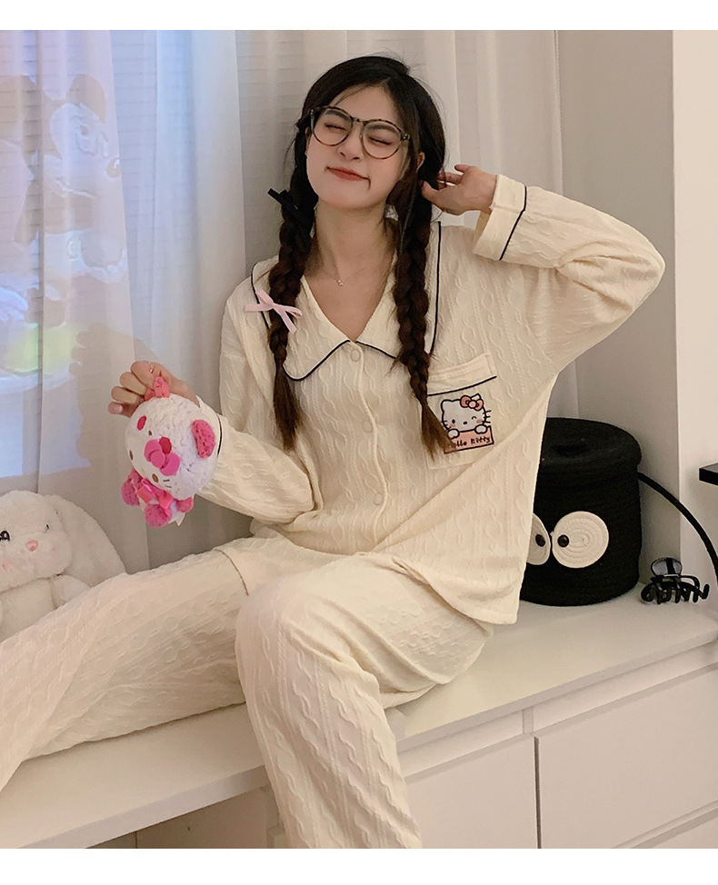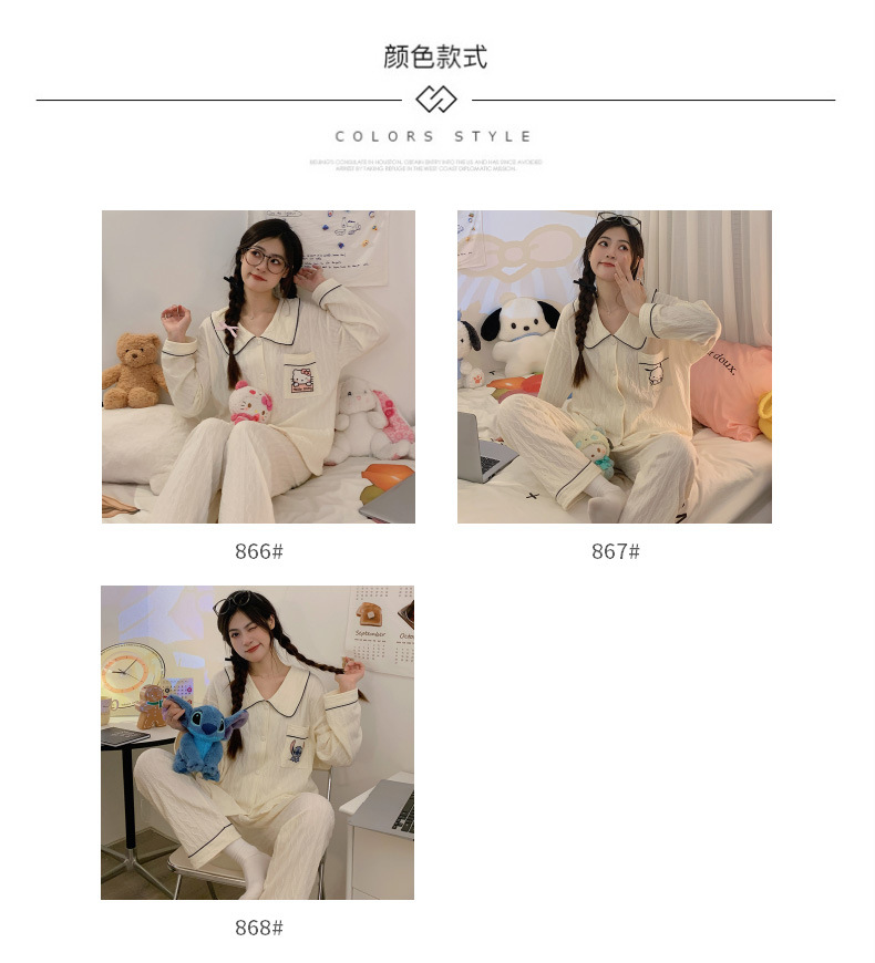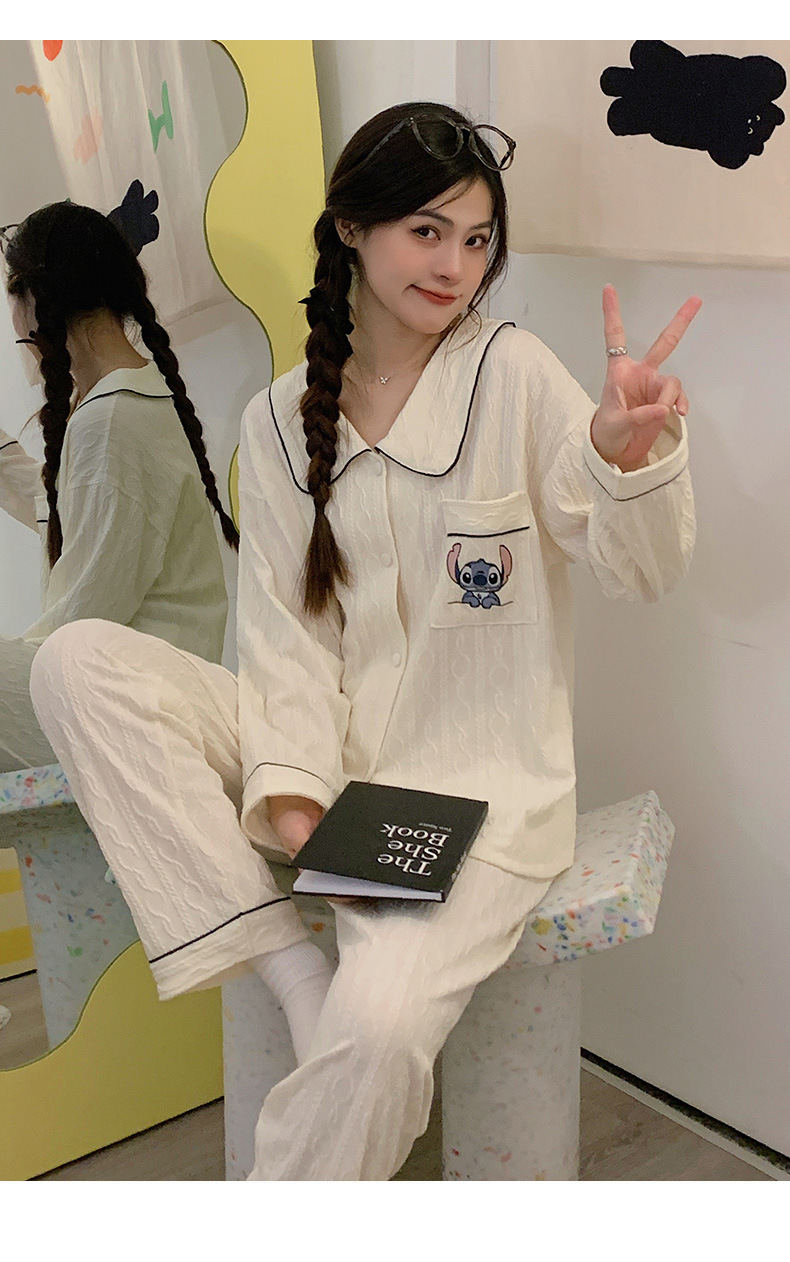秋季新款可爱睡衣女士卡通甜美风大码舒适休闲家居服可外穿两件套