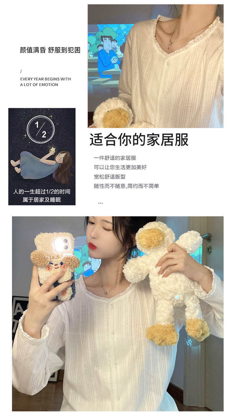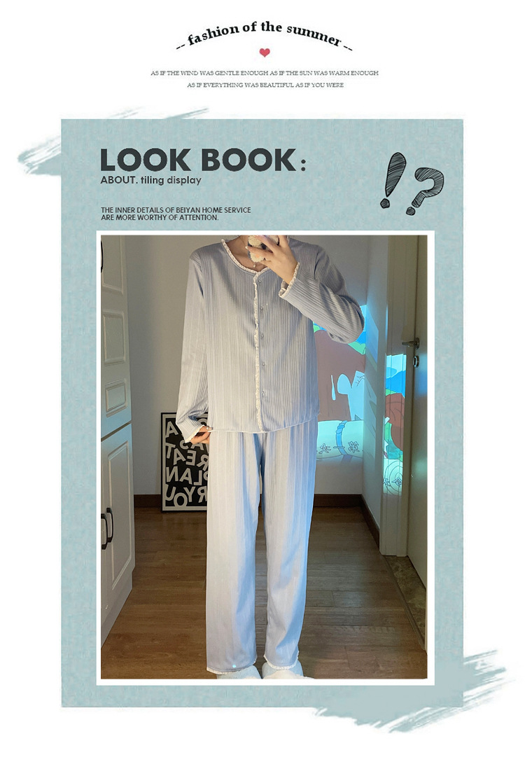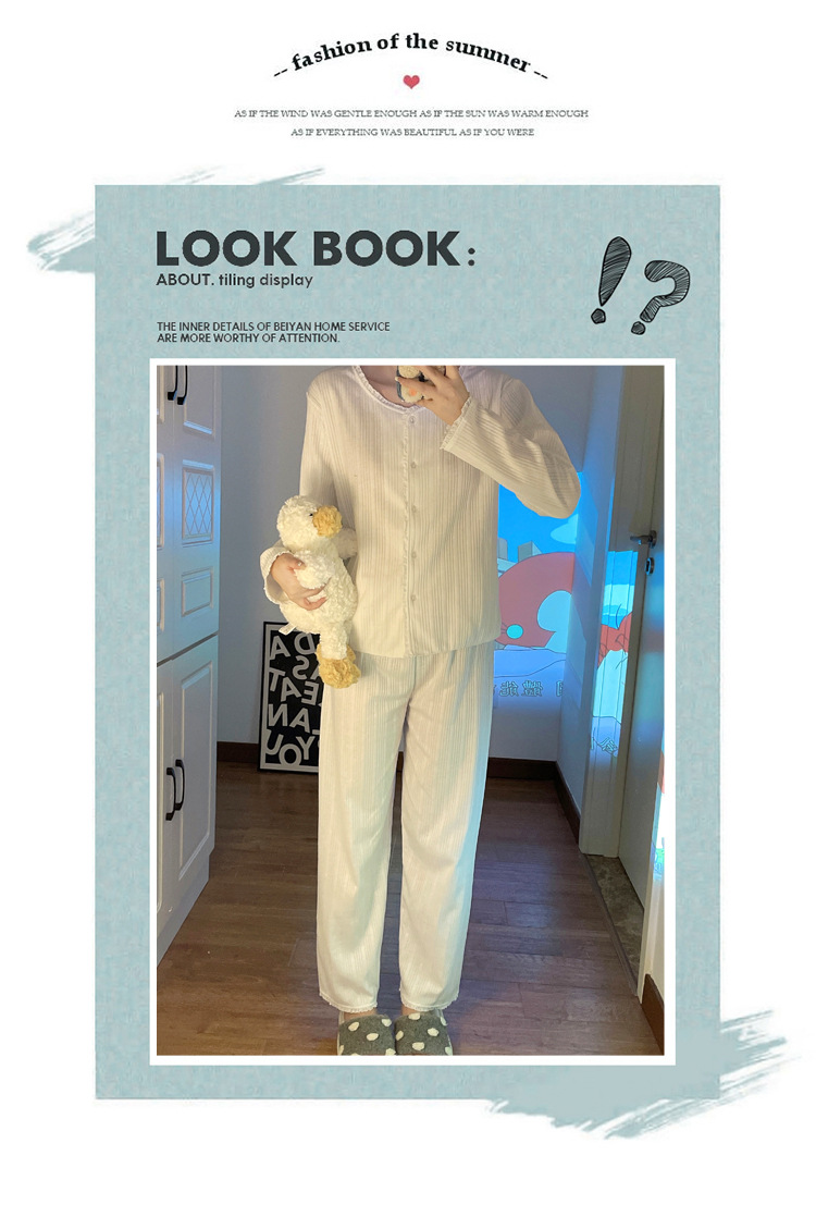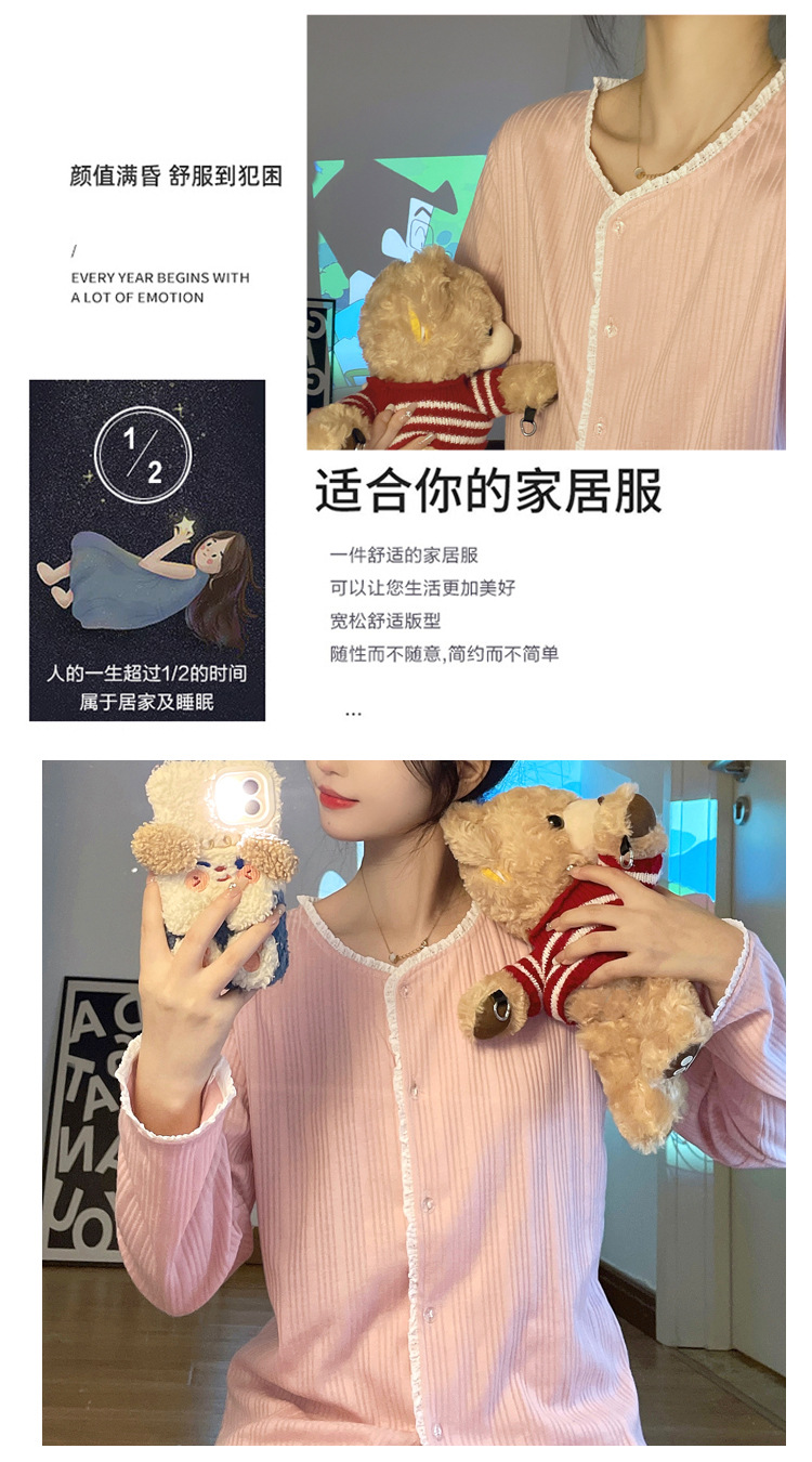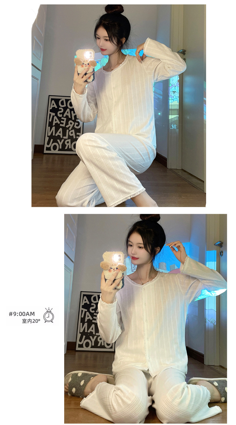 纯色睡衣女秋季新款可爱休闲小清新长袖长裤套装舒适家居服可外穿