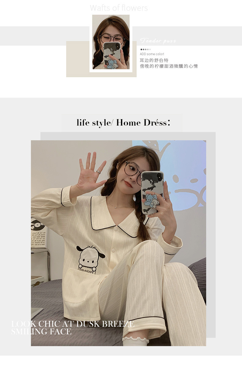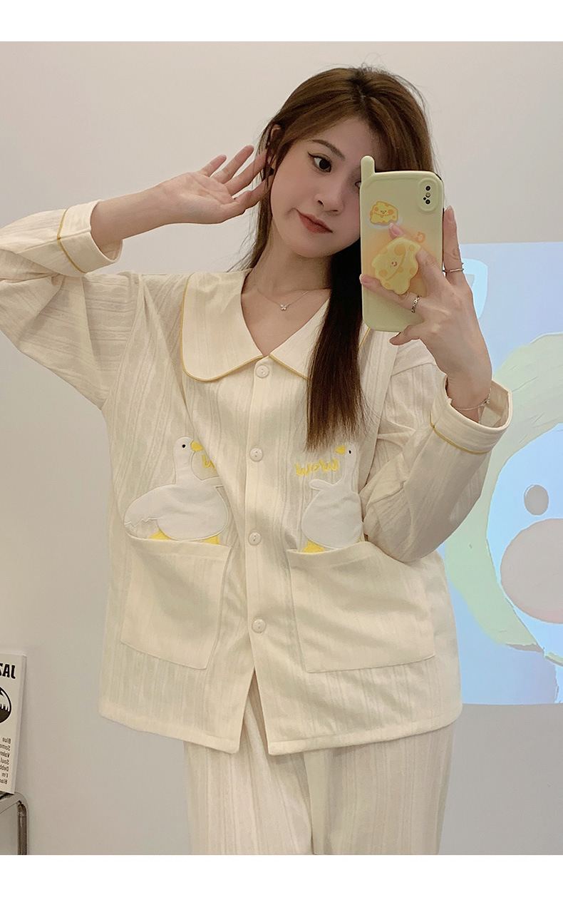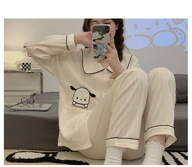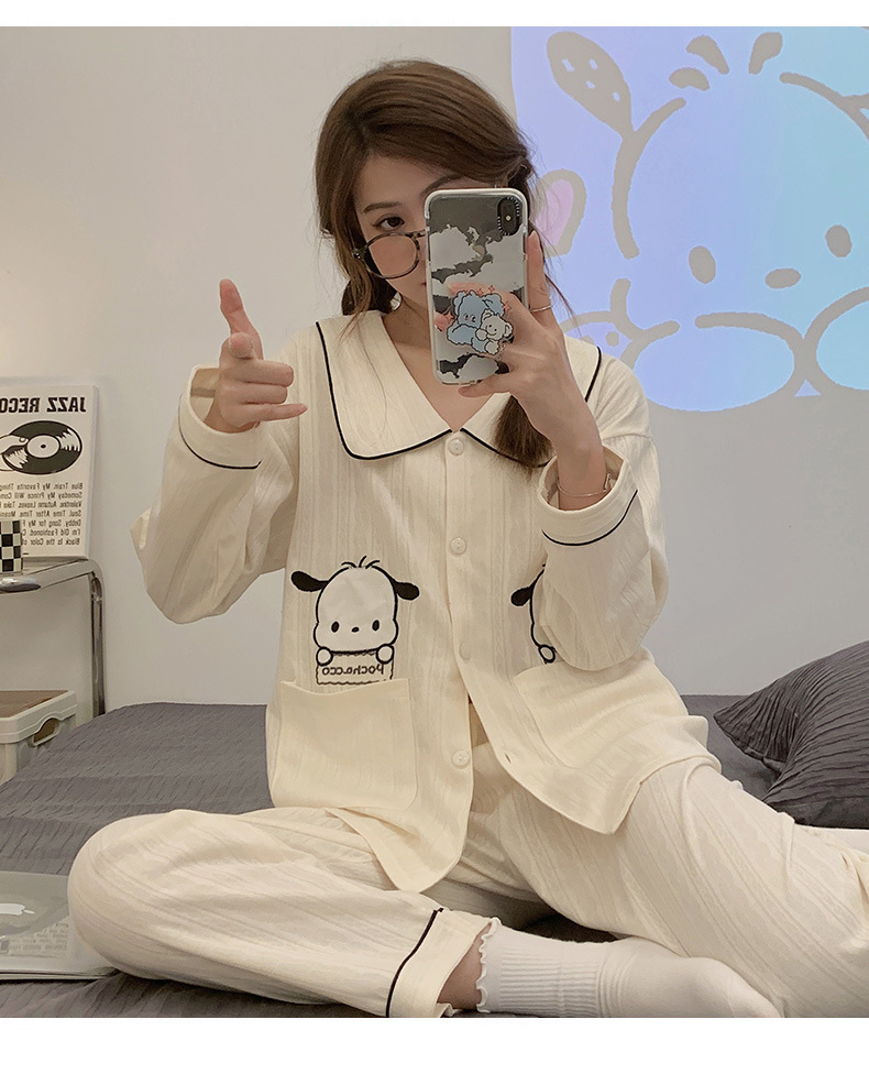 卡通睡衣女2023年秋季新款可爱休闲时尚开衫套装舒适家居服可外穿
