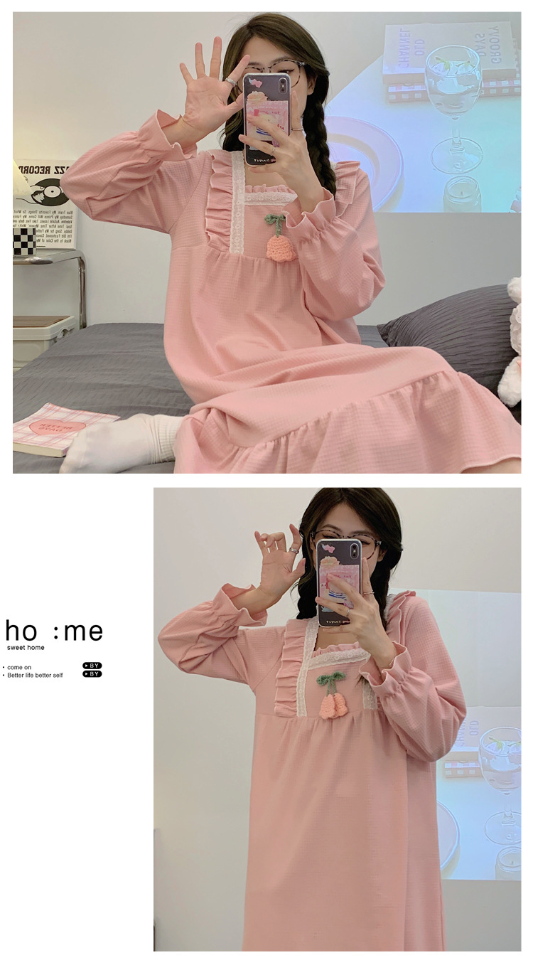 秋季长袖睡裙女2023年新款花边可爱甜美宽松舒适休闲家居服可外穿