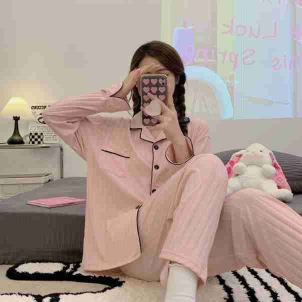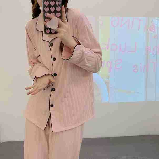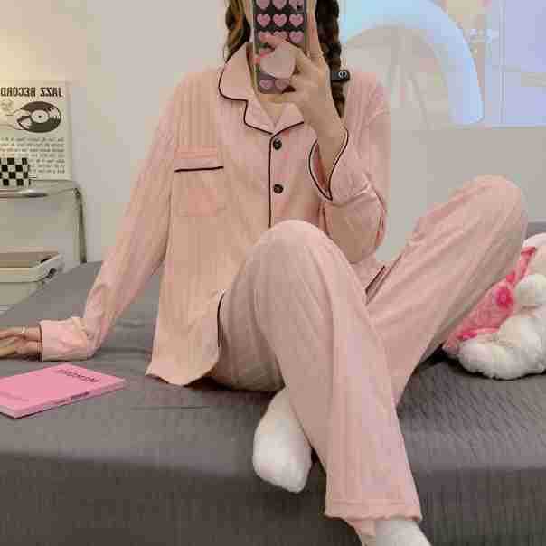 秋季2023新款小翻领开衫睡衣女士可爱时尚长袖长裤套装简约家居服