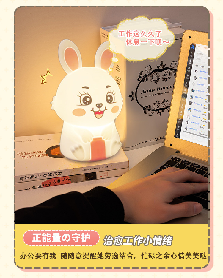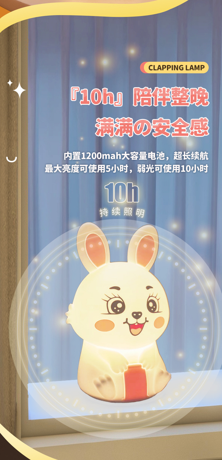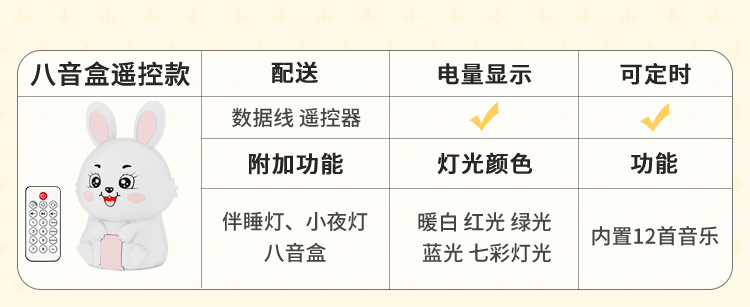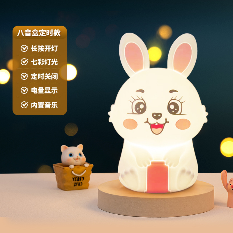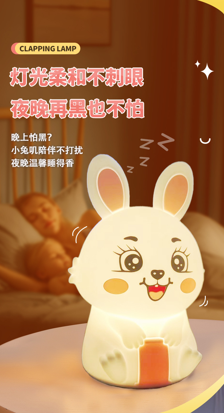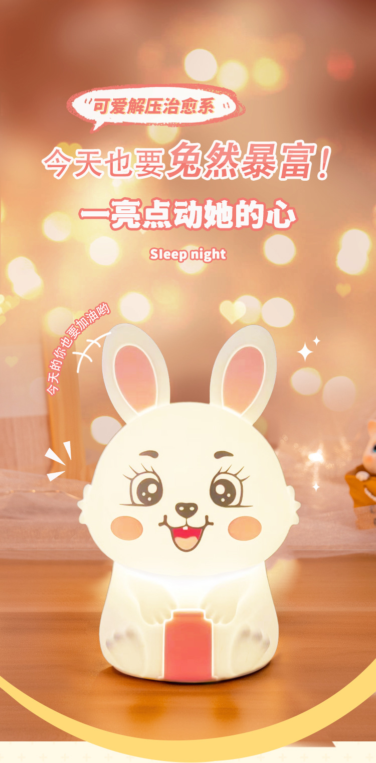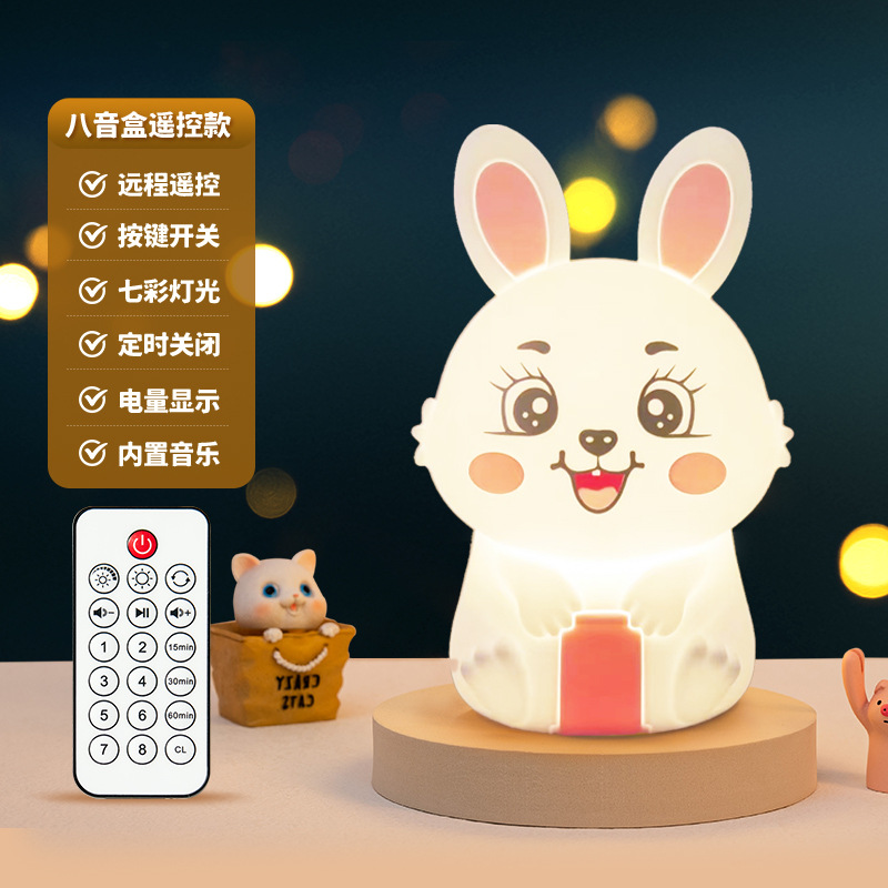 创意遥控小夜灯喂奶婴儿床头灯儿童卧室硅胶拍拍灯兔然暴富定时款