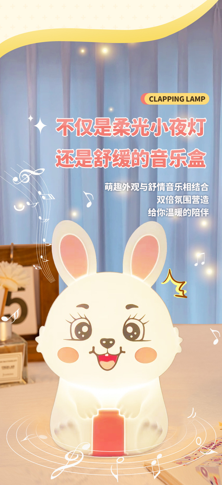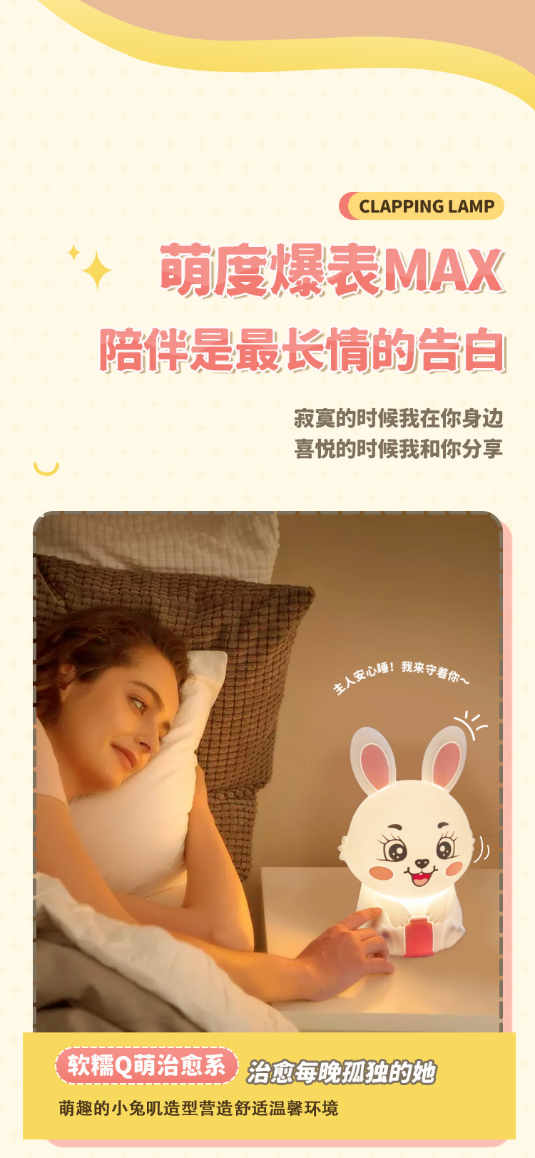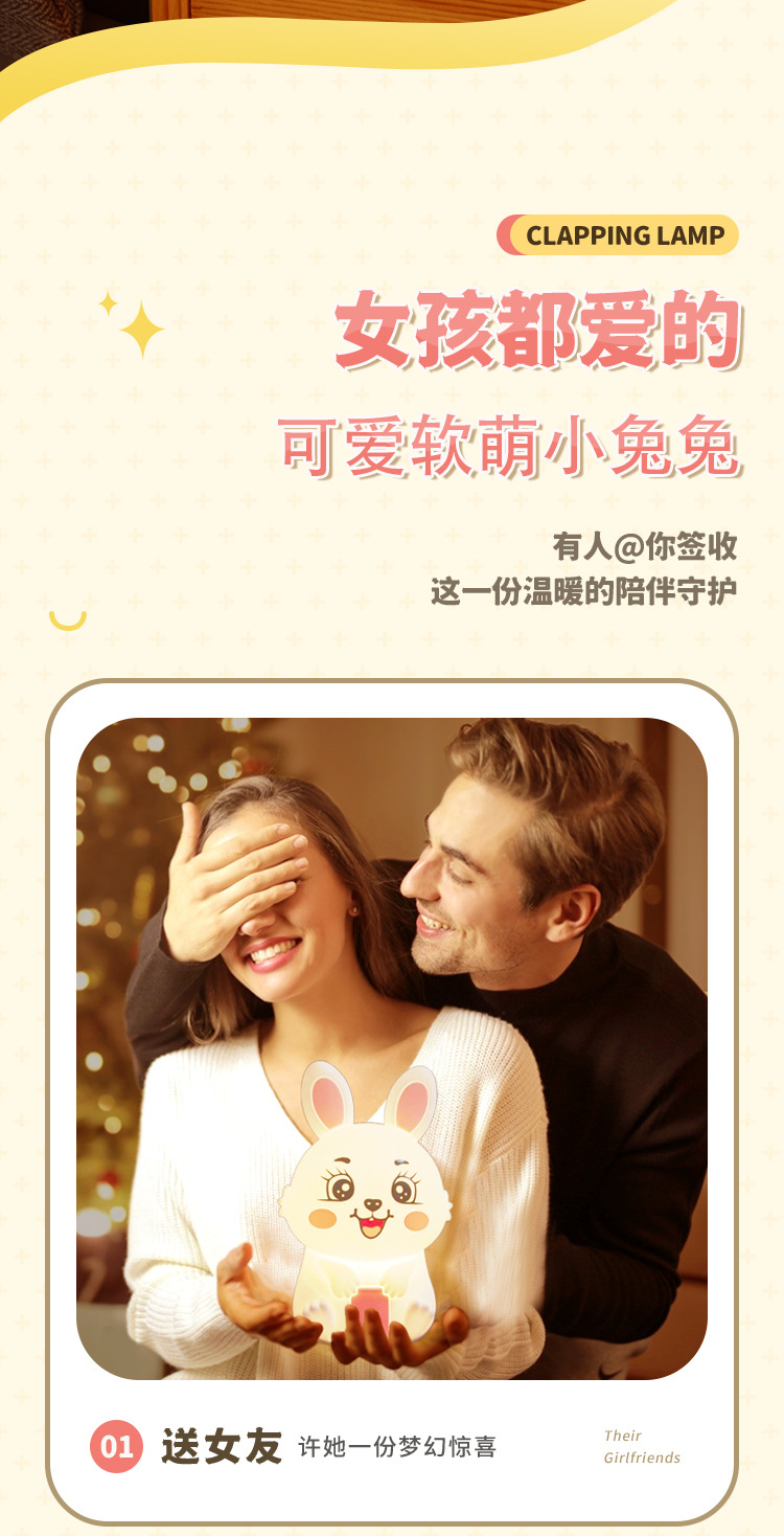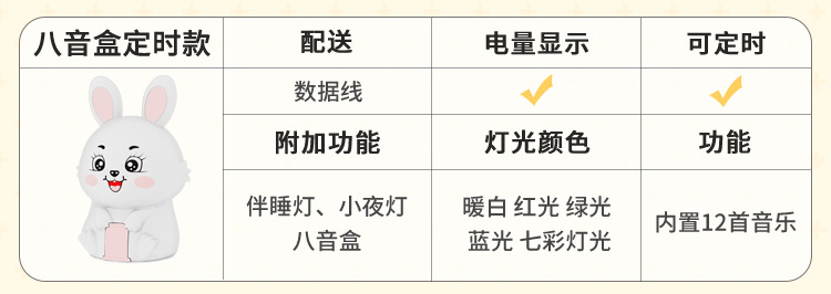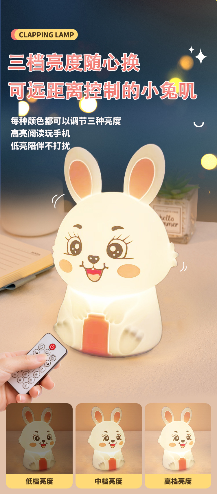 创意遥控小夜灯喂奶婴儿床头灯儿童卧室硅胶拍拍灯兔然暴富定时款