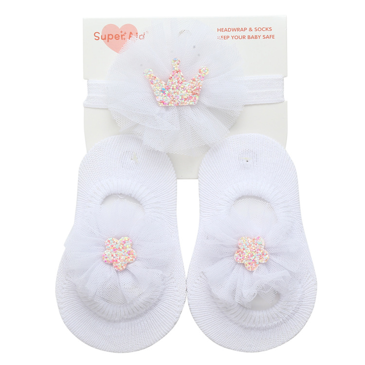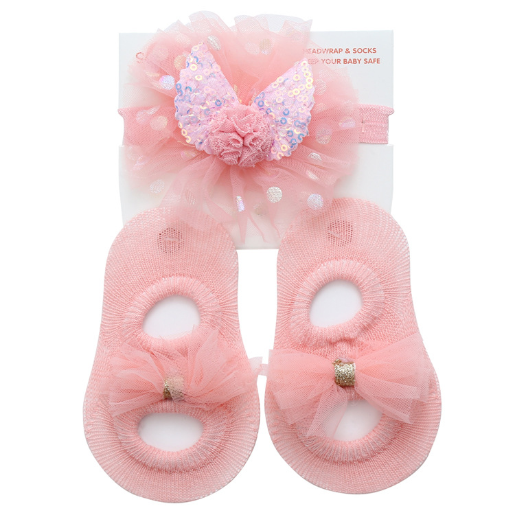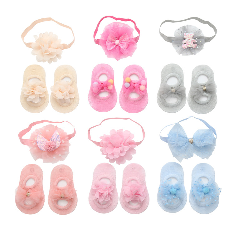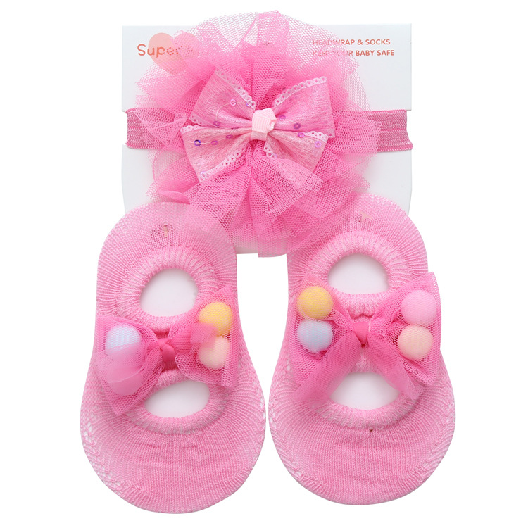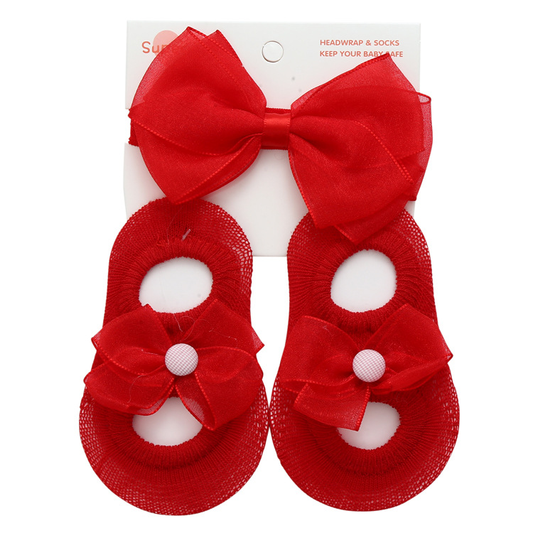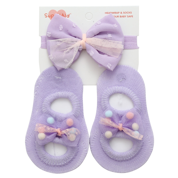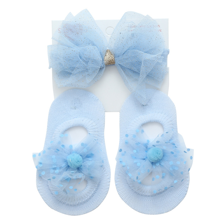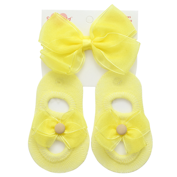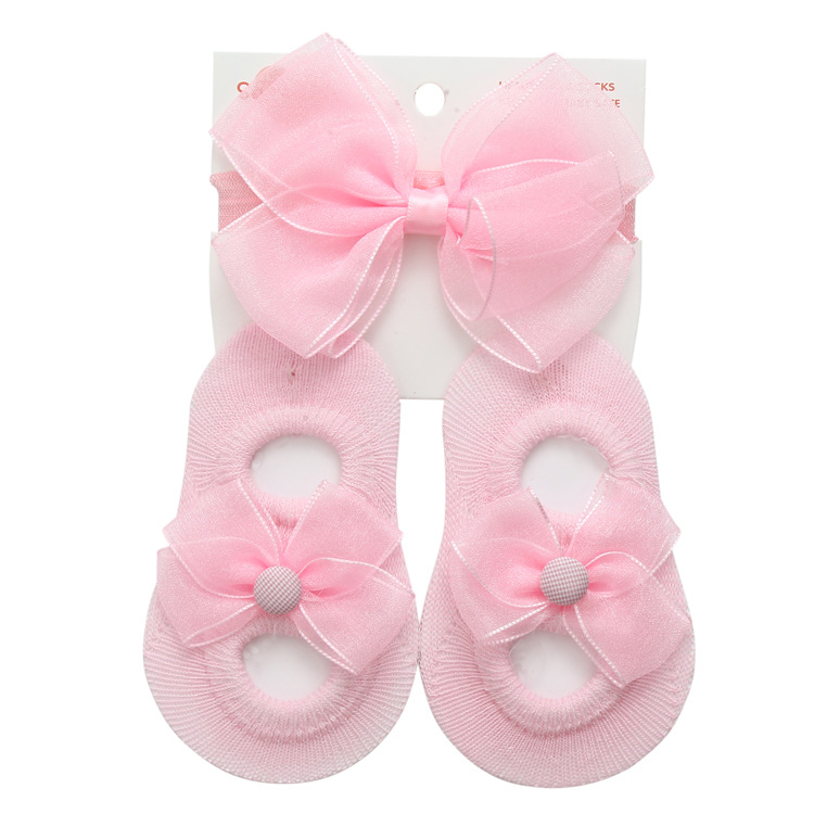 跨境透气公主纯色婴儿袜子 可爱蝴蝶结糖果儿童袜子发带套装