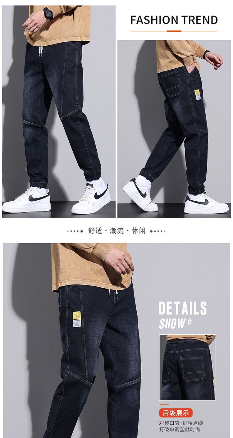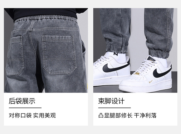 冬天加绒加厚工装牛仔裤男秋冬款潮牌宽松束脚哈伦休闲秋冬季裤子