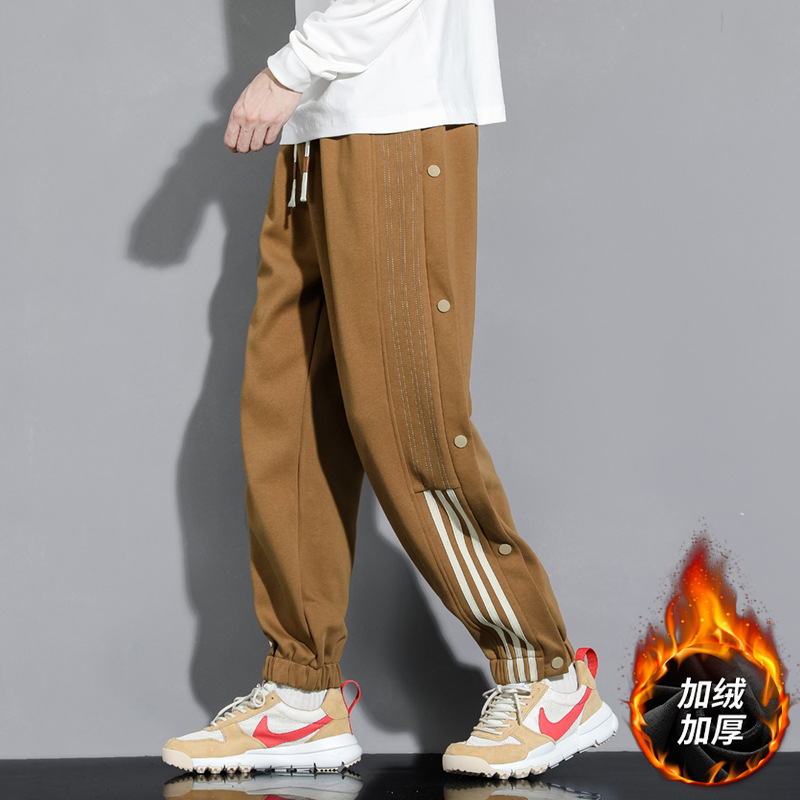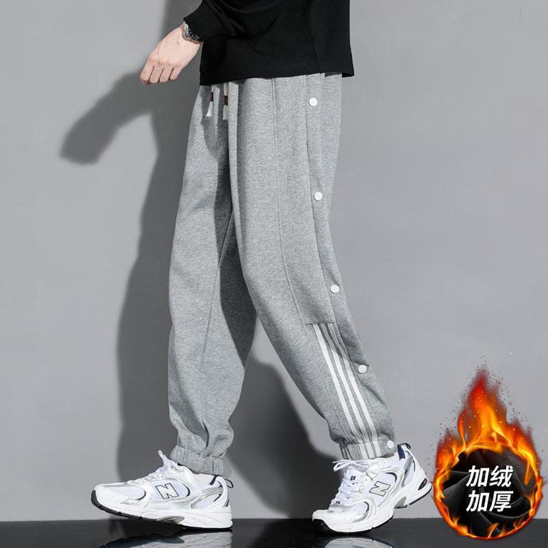 秋冬季经典排扣长裤男宽松卫裤加绒加厚运动裤潮牌男士束脚休闲裤