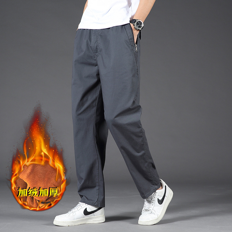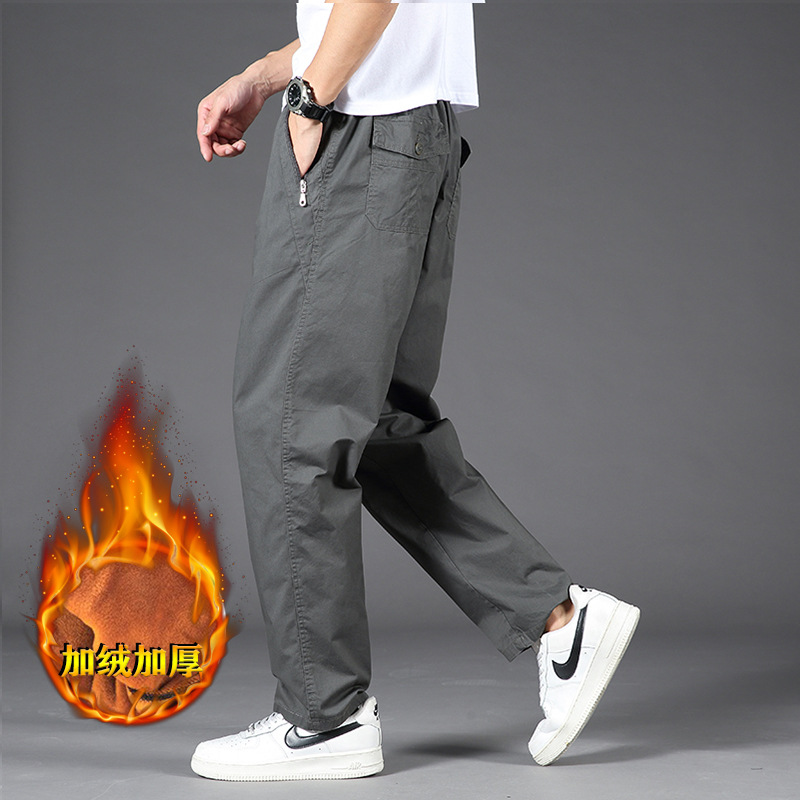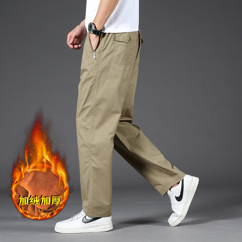 秋冬季加绒加厚工装裤男款宽松大码直筒休闲裤男士中老年纯棉裤子