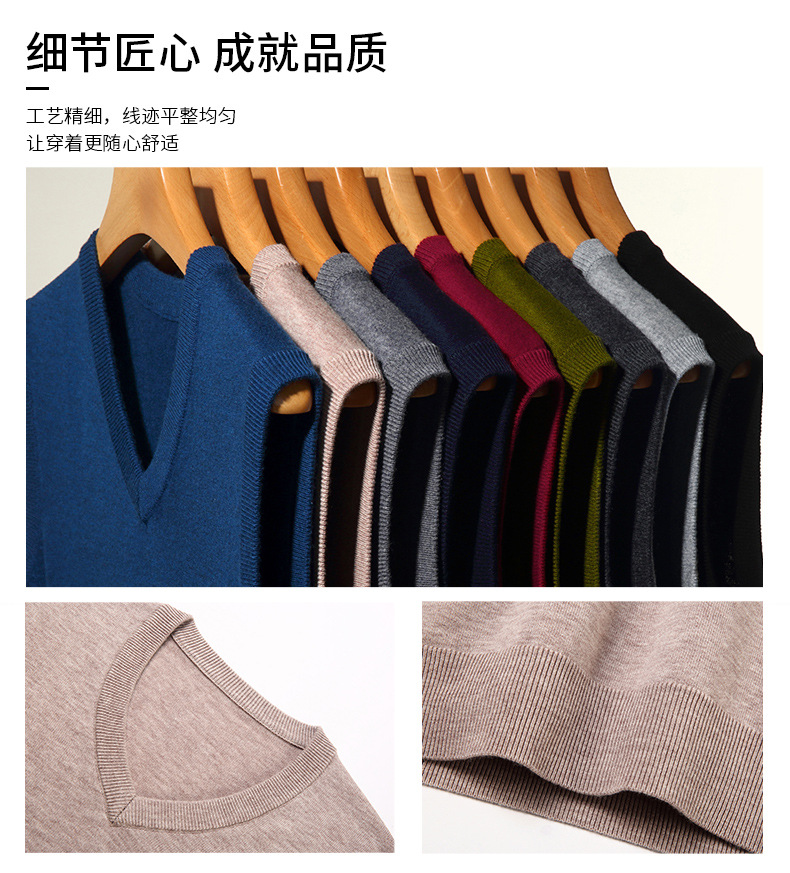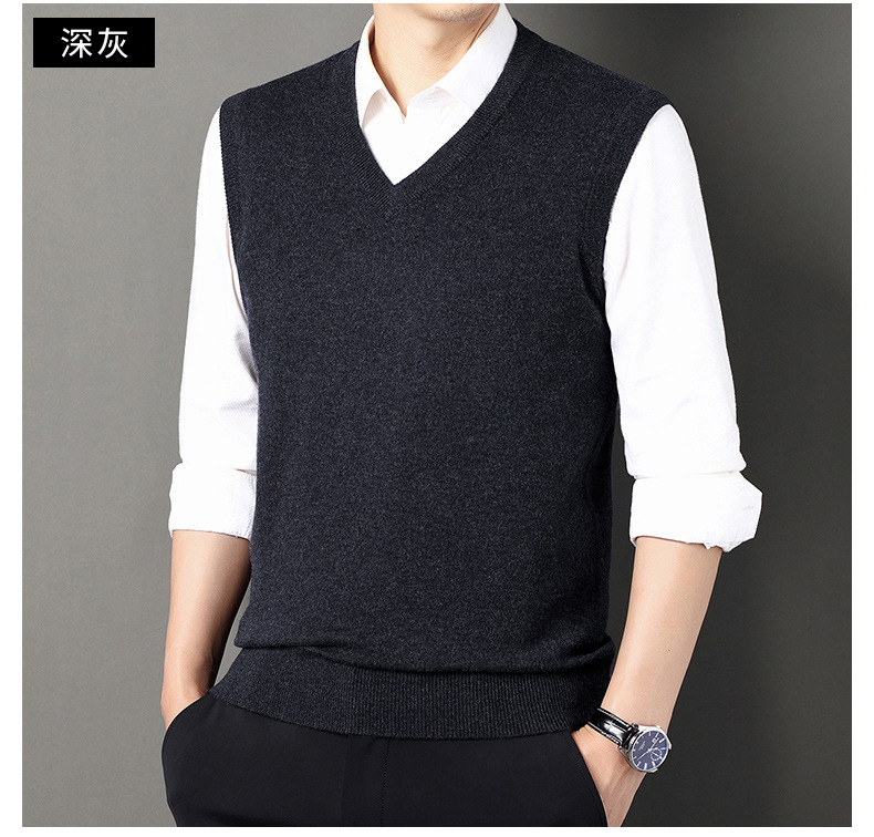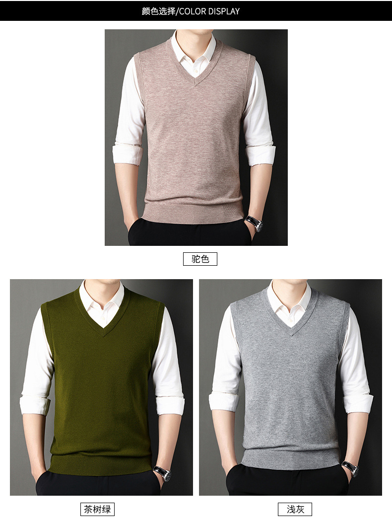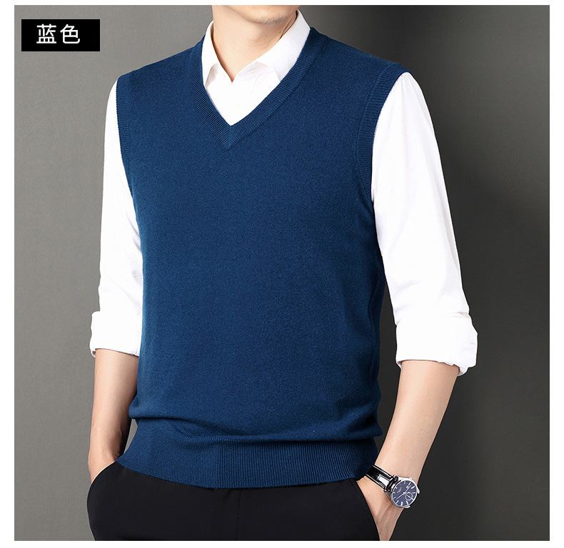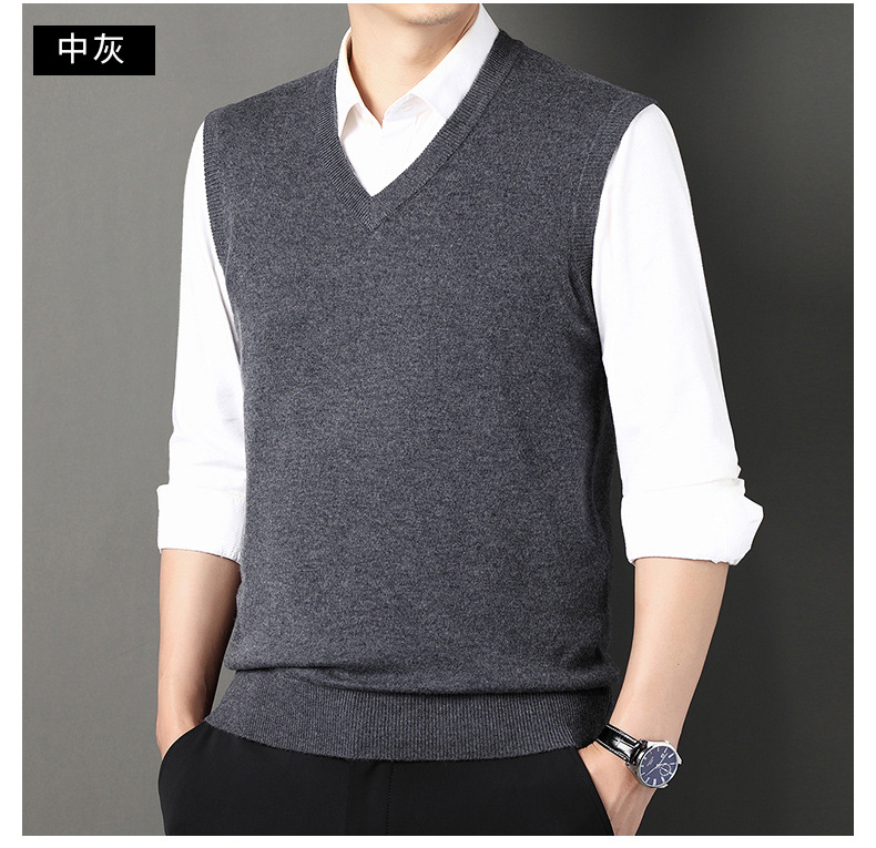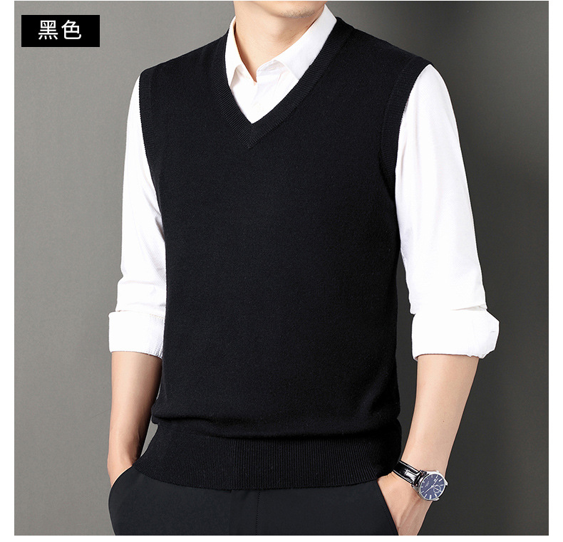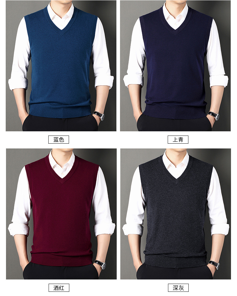 秋冬男士羊毛衫背心时尚纯色针织男款V领打底衫爸爸无袖马甲毛衣