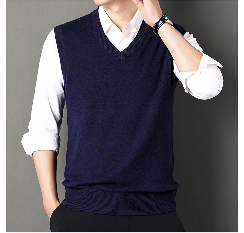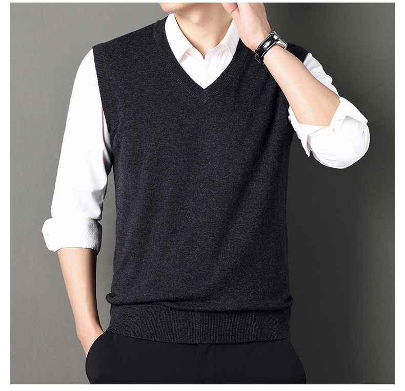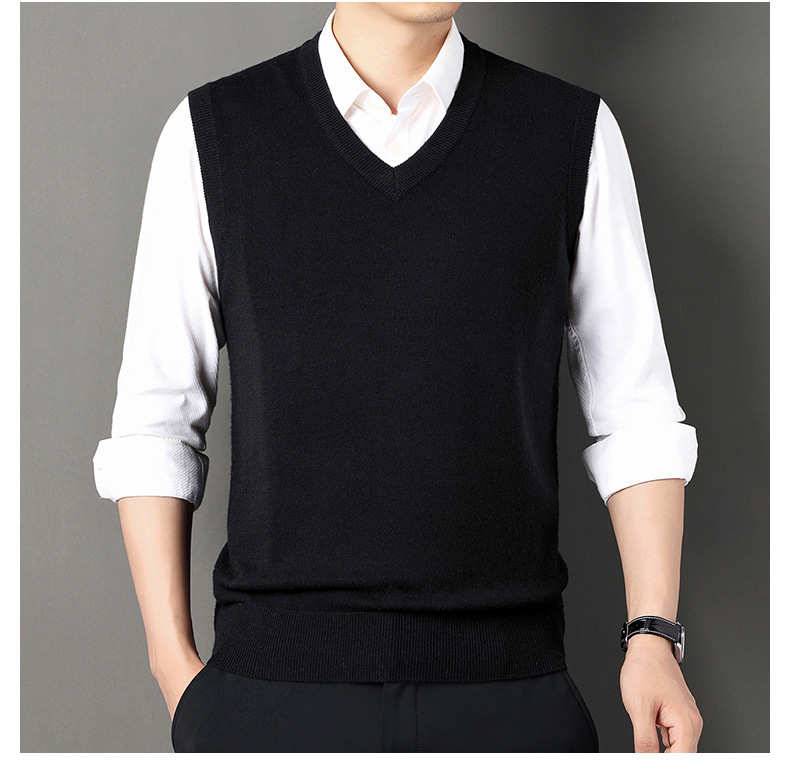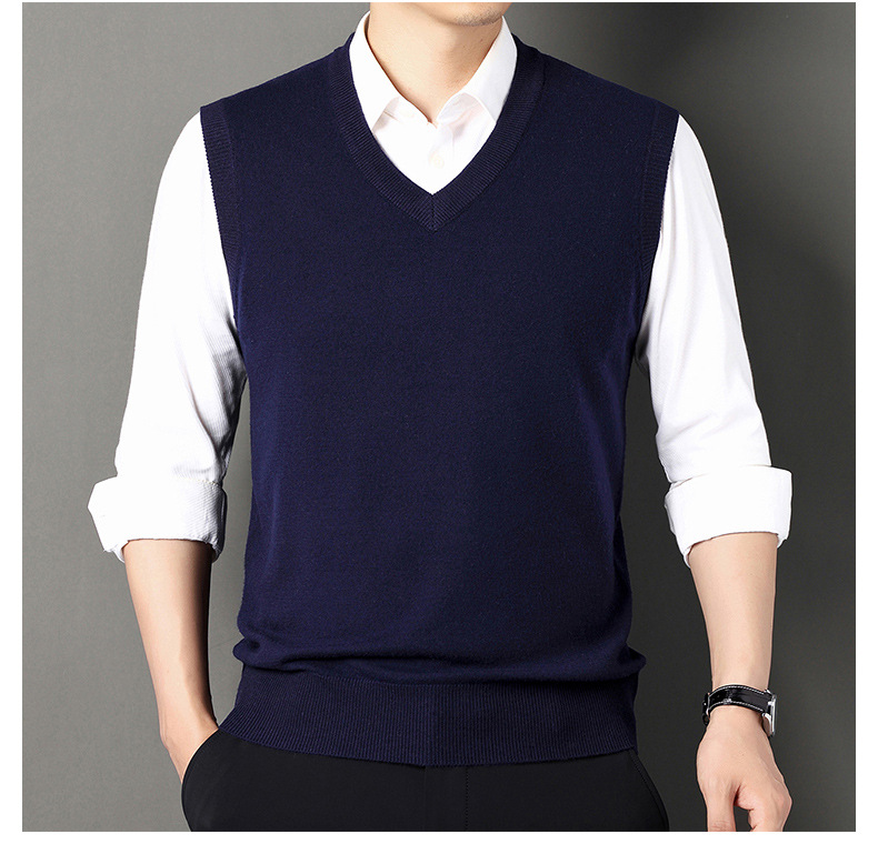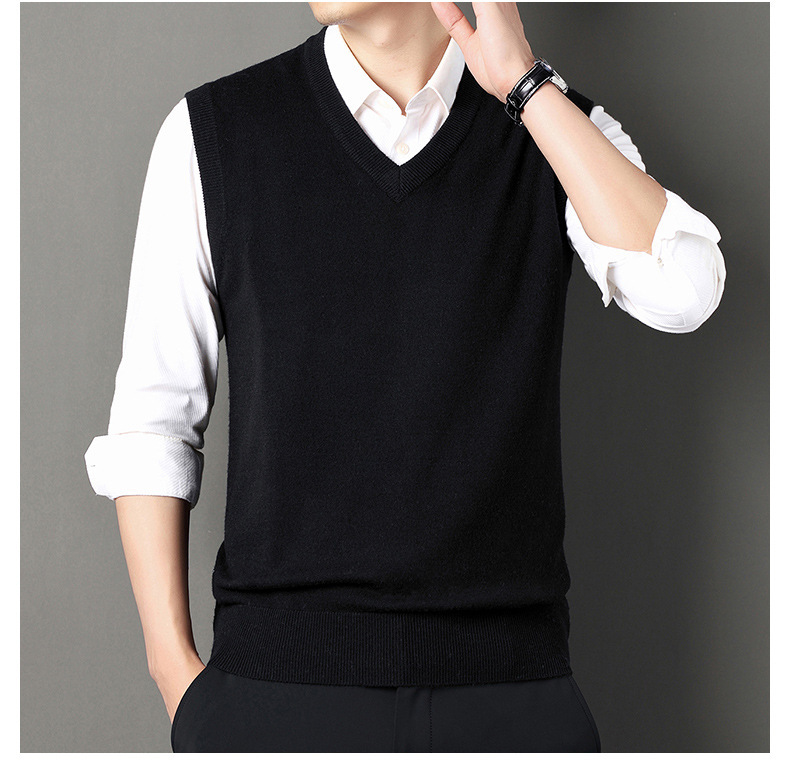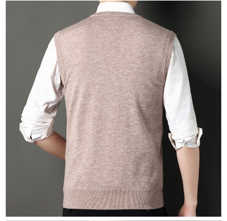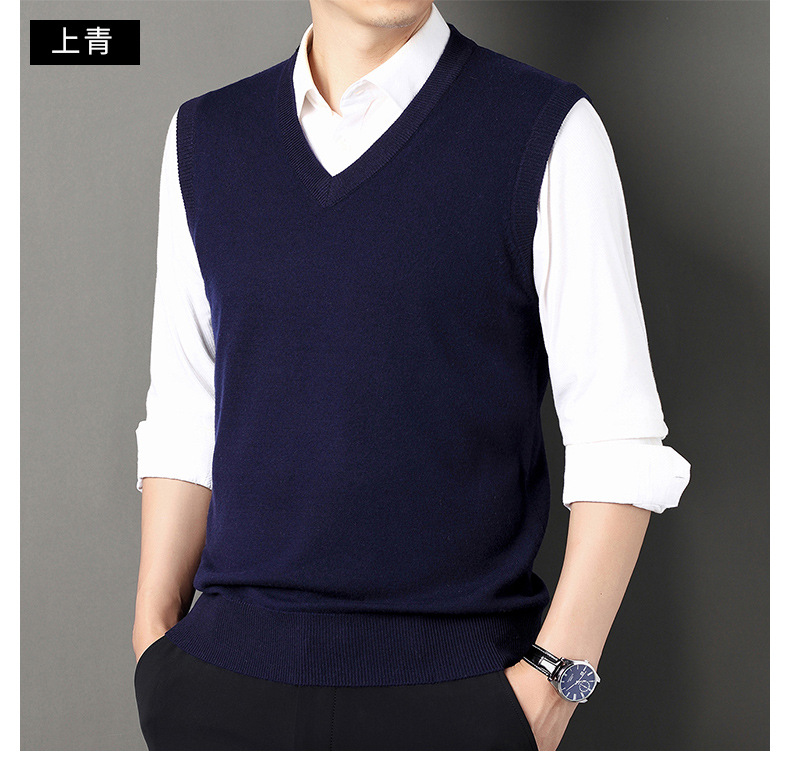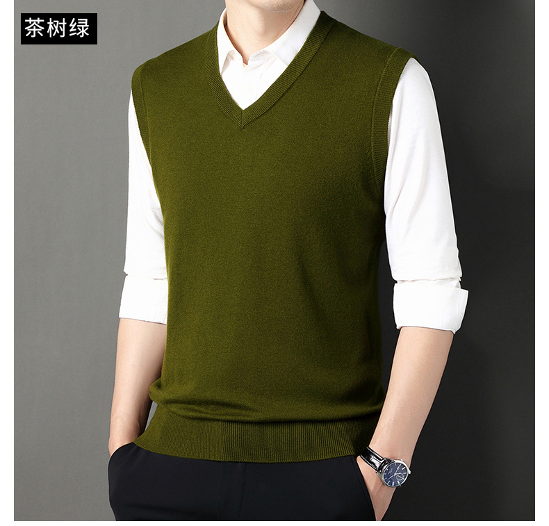秋冬男士羊毛衫背心时尚纯色针织男款V领打底衫爸爸无袖马甲毛衣