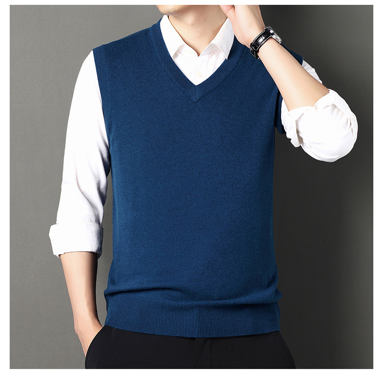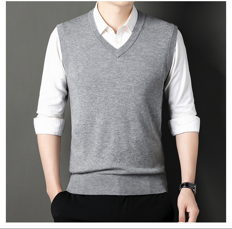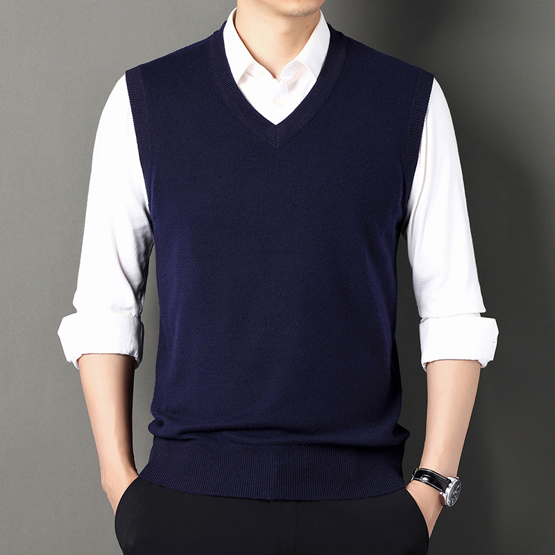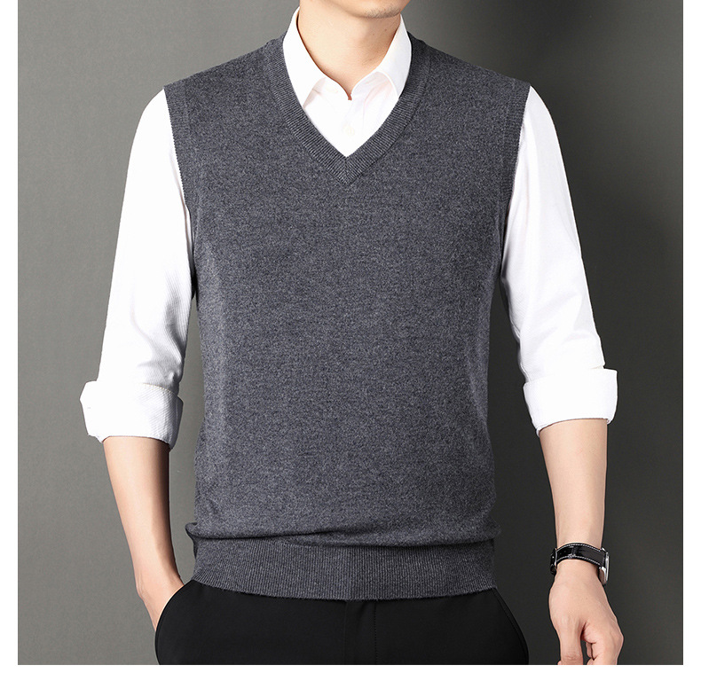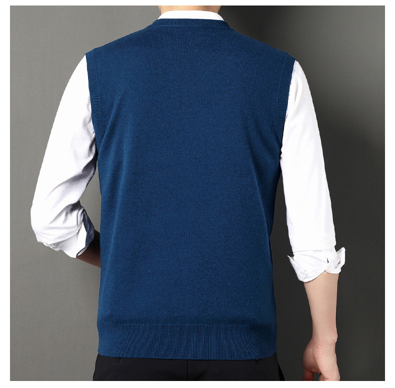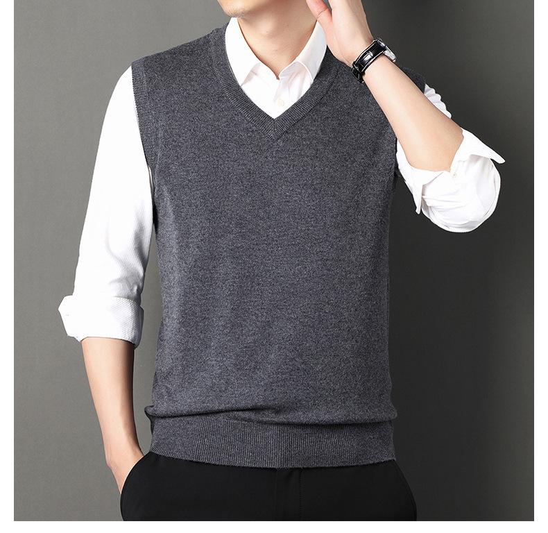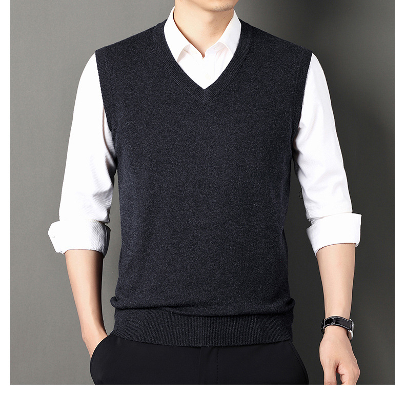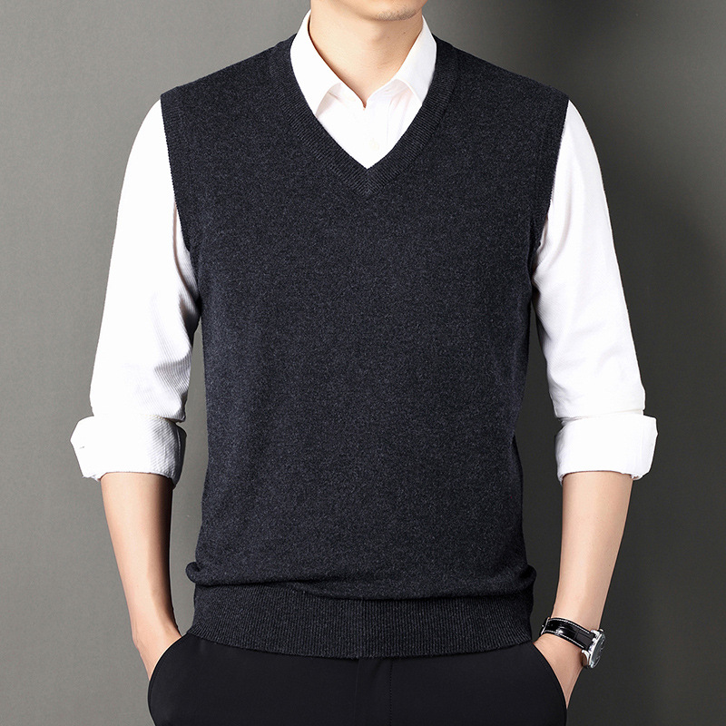 秋冬男士羊毛衫背心时尚纯色针织男款V领打底衫爸爸无袖马甲毛衣