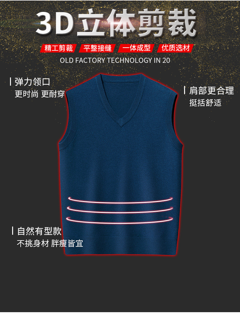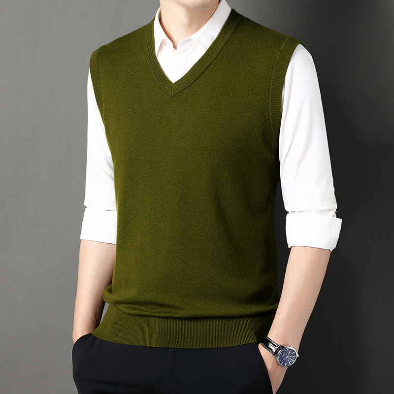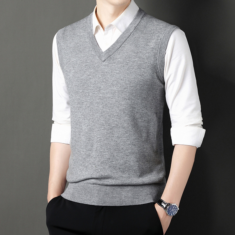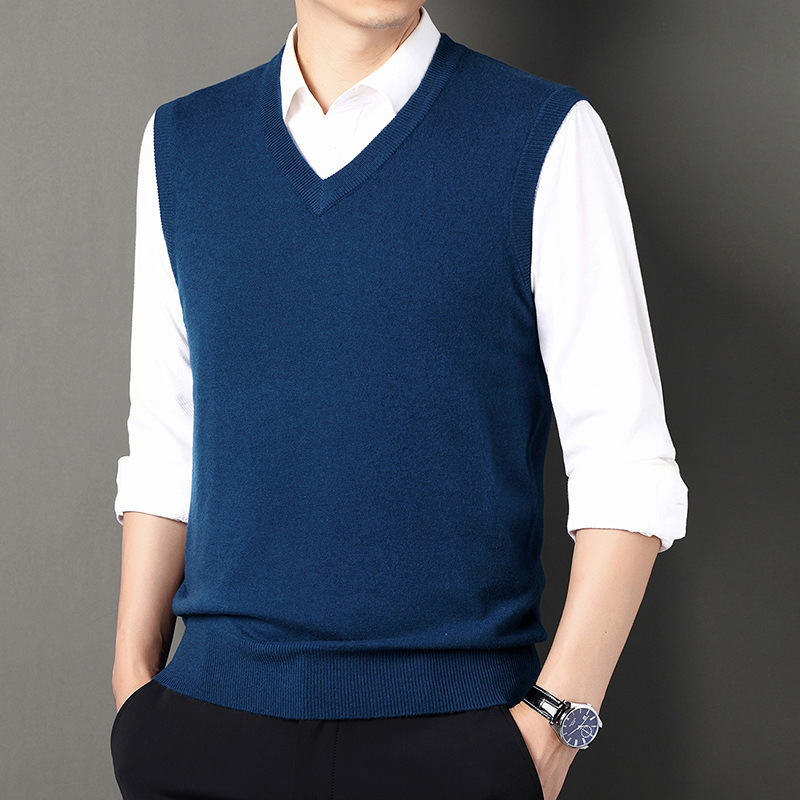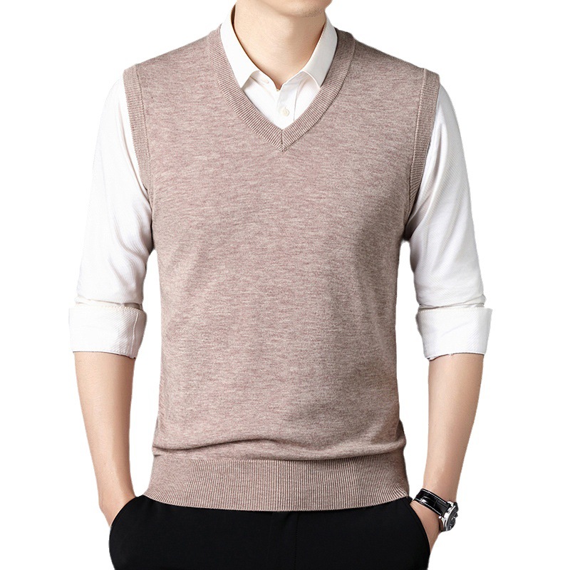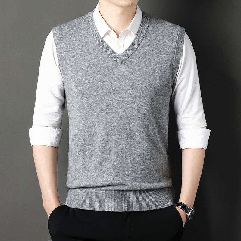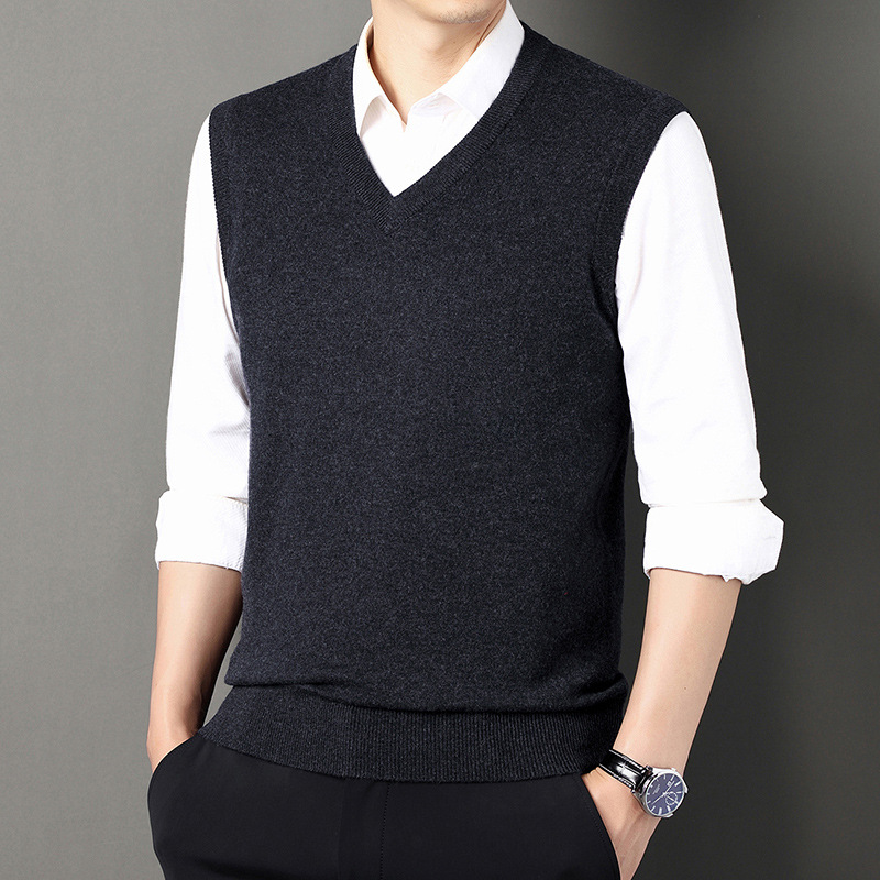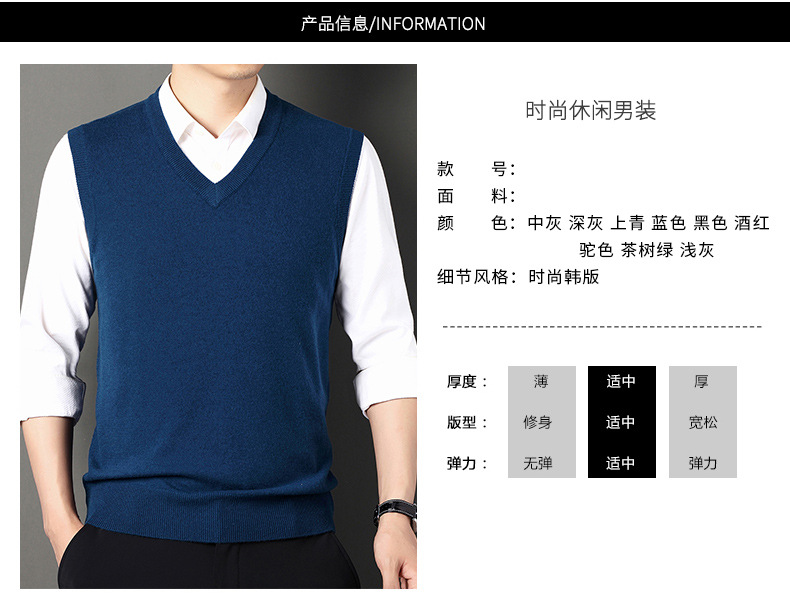 秋冬男士羊毛衫背心时尚纯色针织男款V领打底衫爸爸无袖马甲毛衣