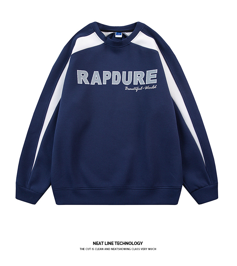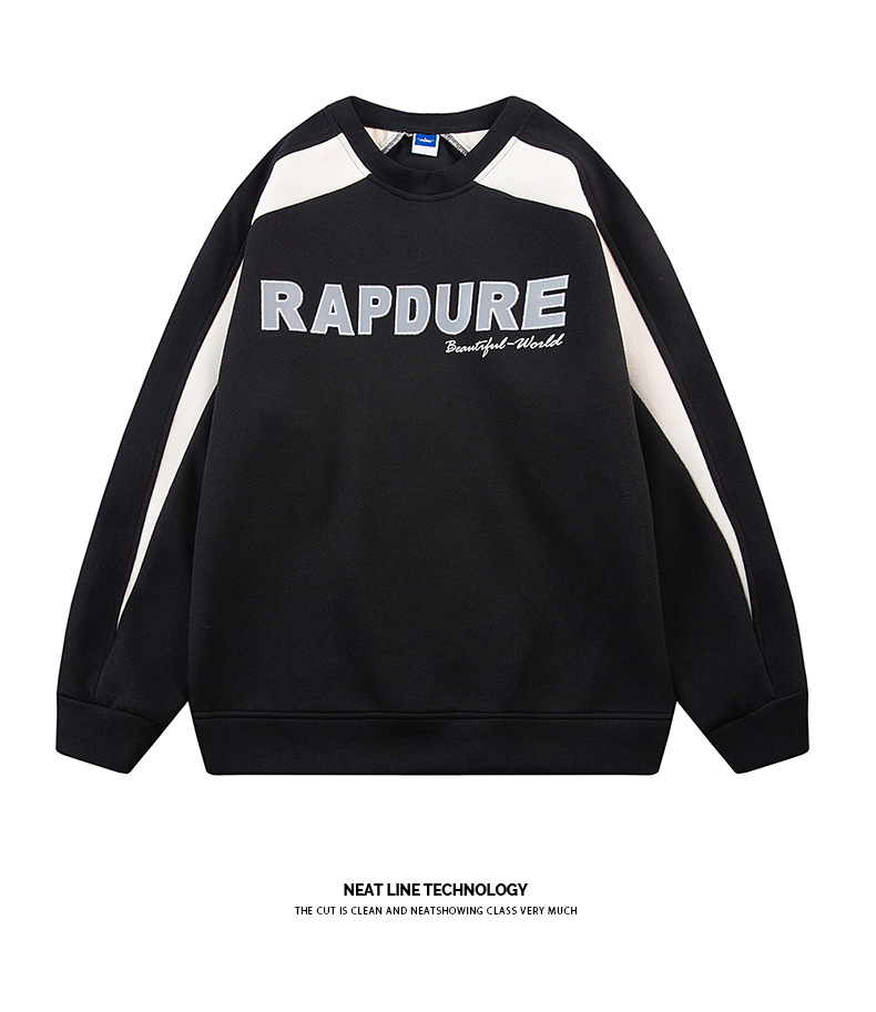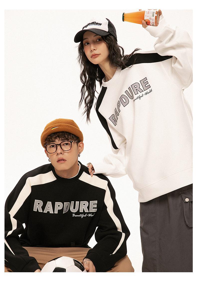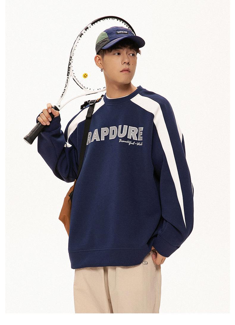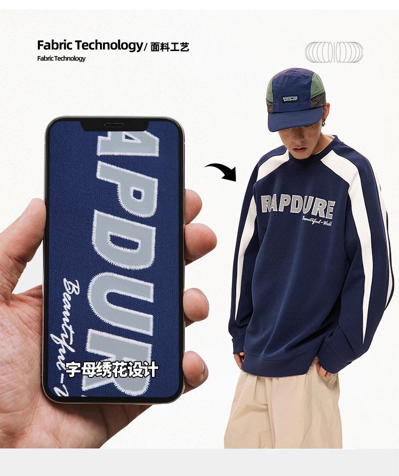ACU男装|学院风字母仿绣字母印花撞色宽松潮牌休闲加绒圆领卫衣男