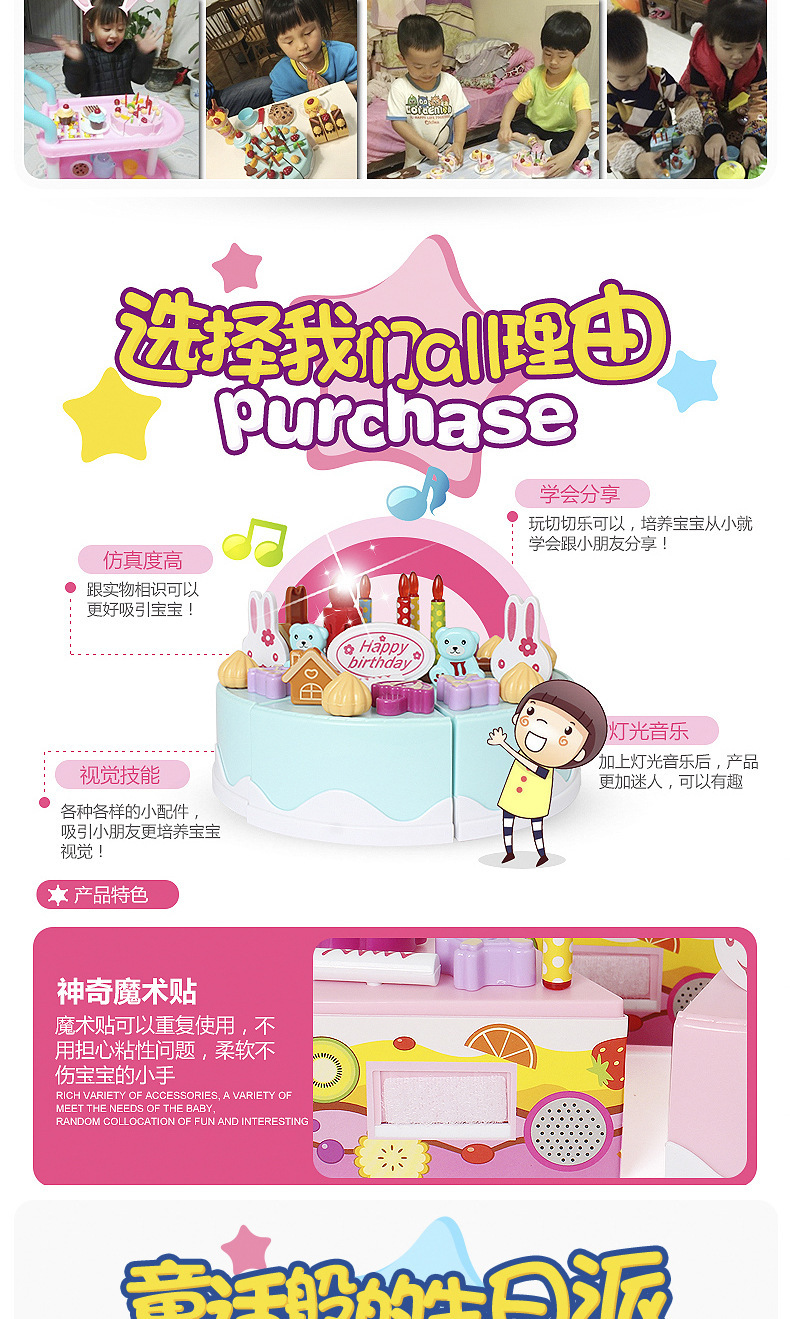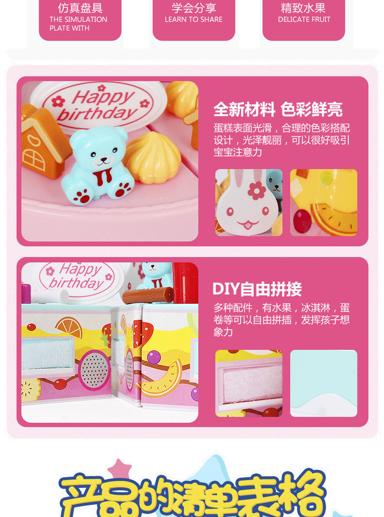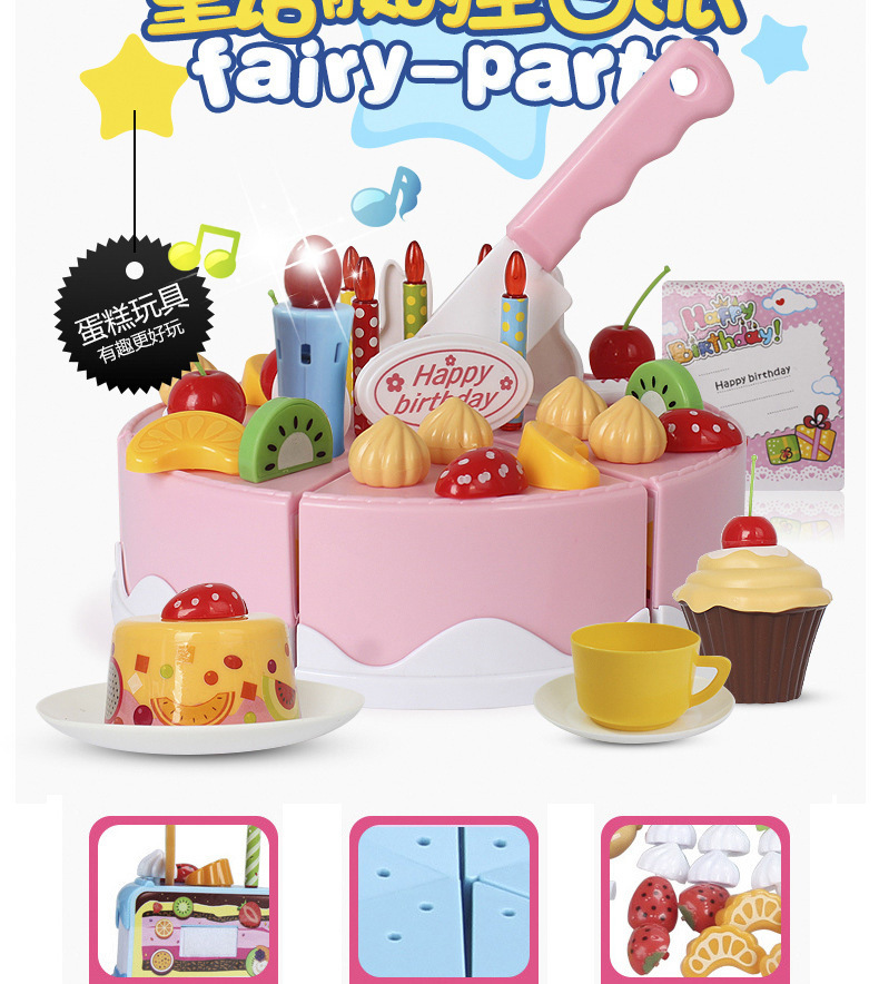 儿童过家家生日蛋糕玩具女孩DIY水果灯光蜡烛仿真蛋糕切切乐玩具