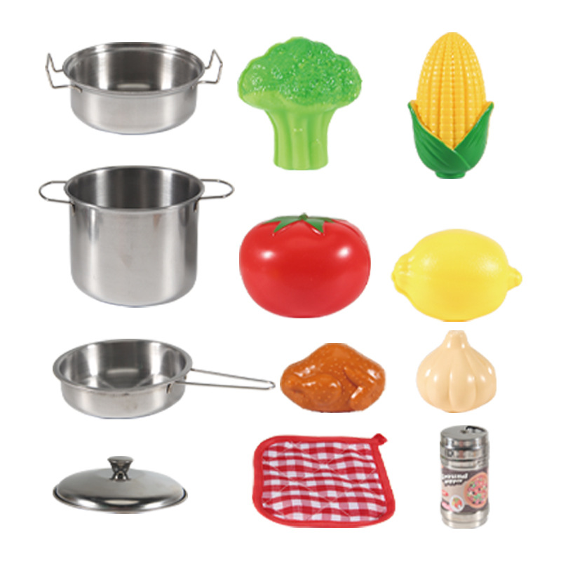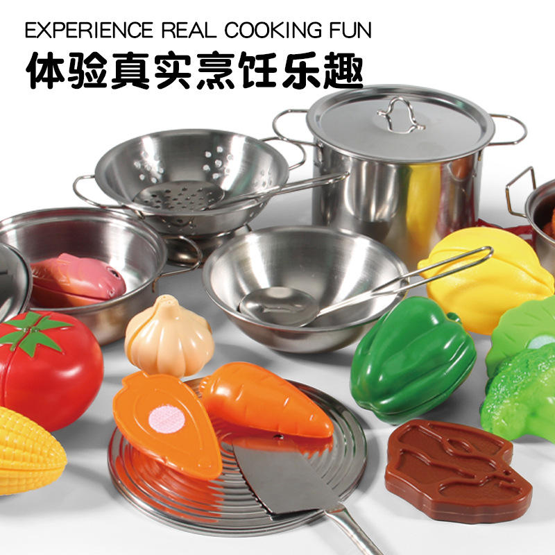 儿童过家家不锈钢厨房玩具迷你仿真餐具蔬菜煮饭做菜套装玩具批发