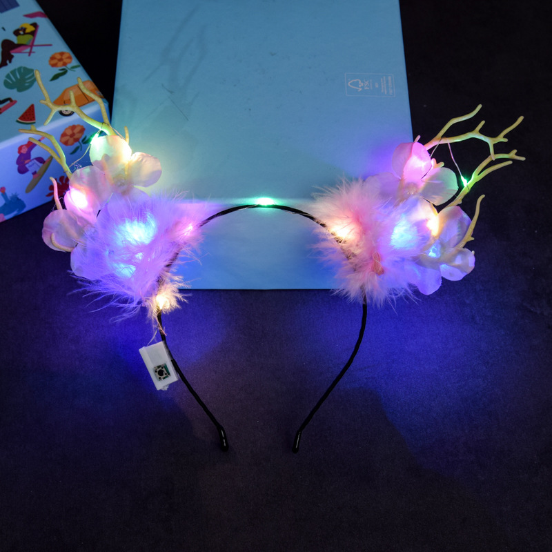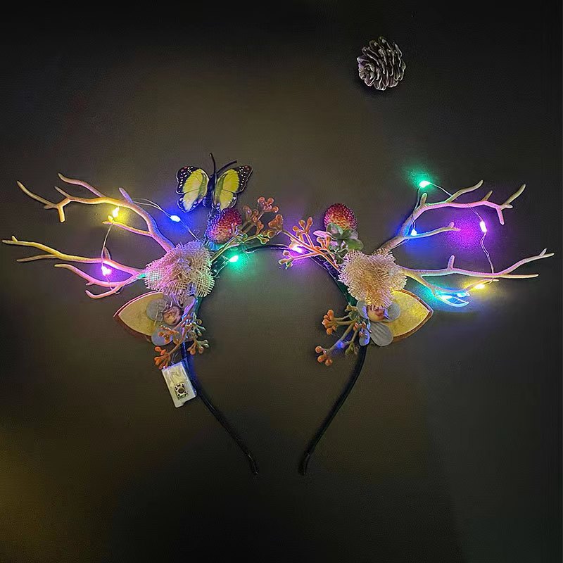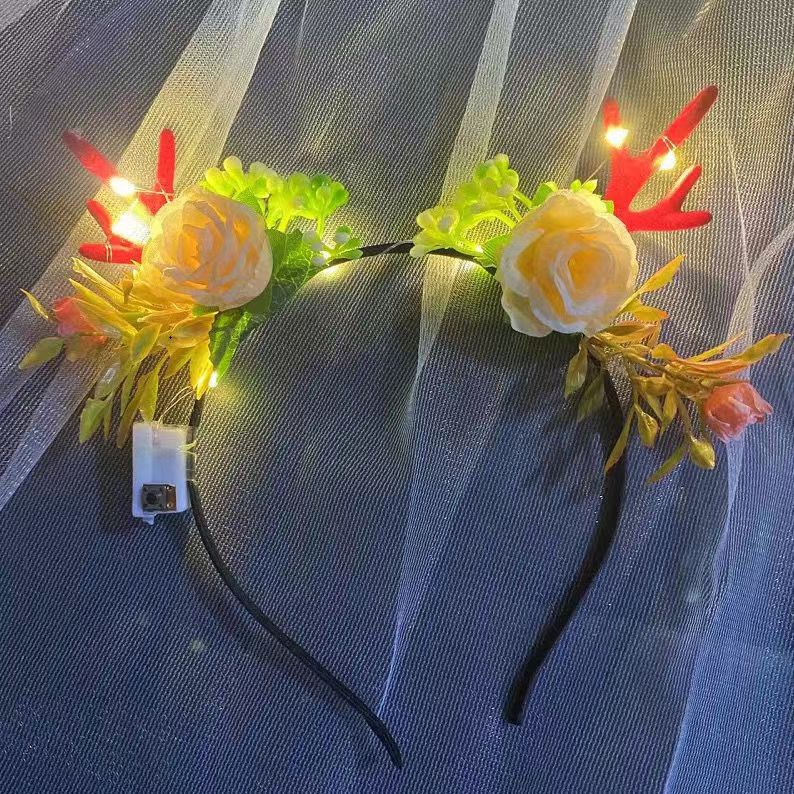新款发光麋鹿鹿角头箍闪光发箍花仙子鹿角头饰圣诞节晚会夜市批发