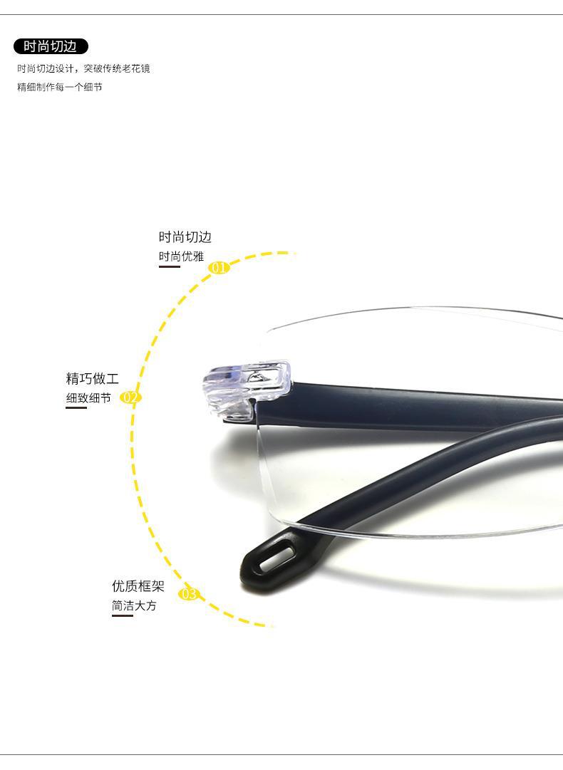 时尚无框老花镜 防蓝光男女跑江湖摆地摊钻石切边老花镜源头工厂