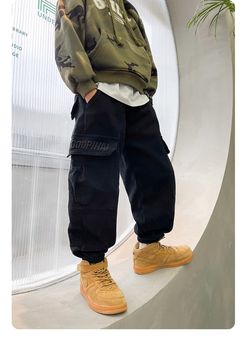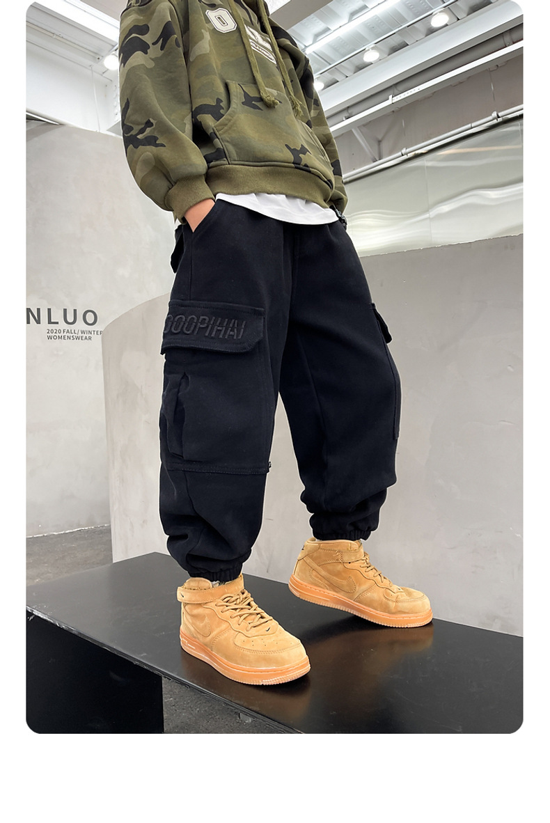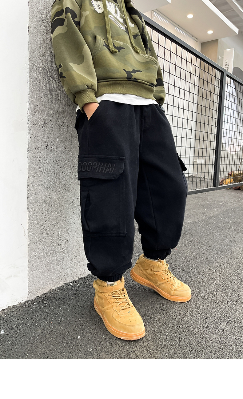 冬季男童加绒工装裤23新童装一体绒休闲裤冬装儿童大男孩长裤童裤