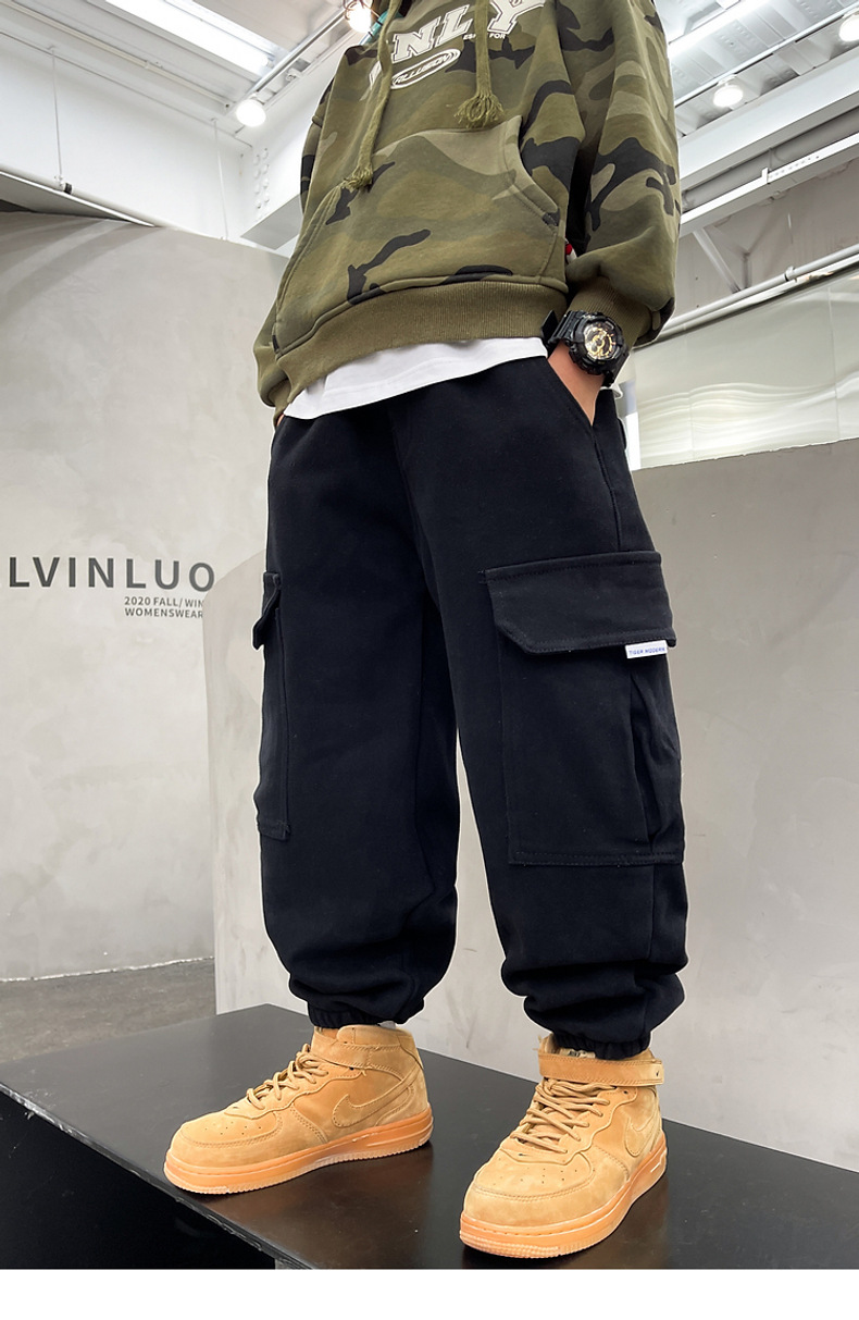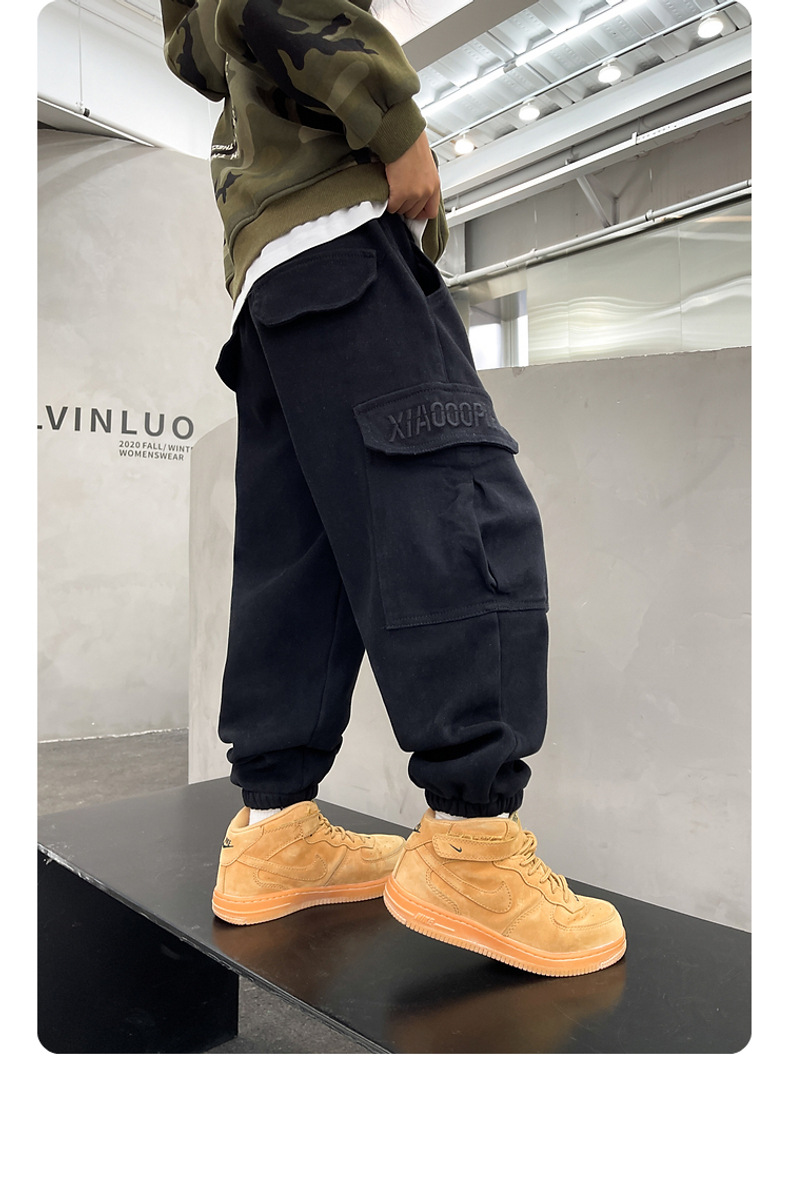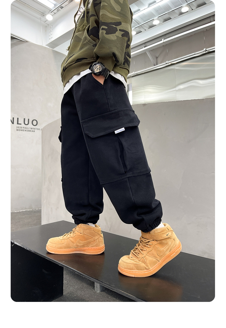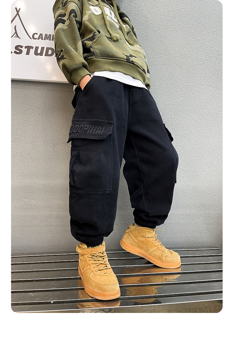 冬季男童加绒工装裤23新童装一体绒休闲裤冬装儿童大男孩长裤童裤
