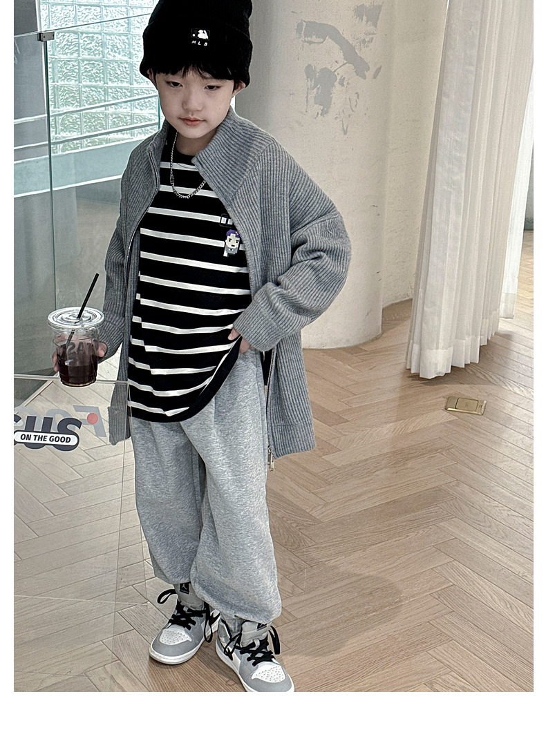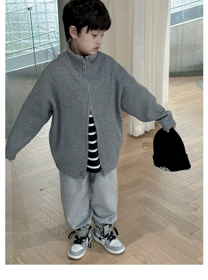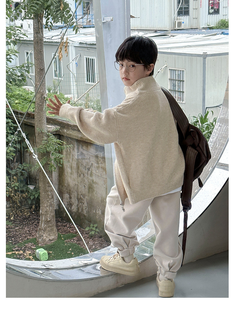 秋冬男童毛衣2023新品童装儿童大男孩纯色拉链毛衣针织开衫潮范