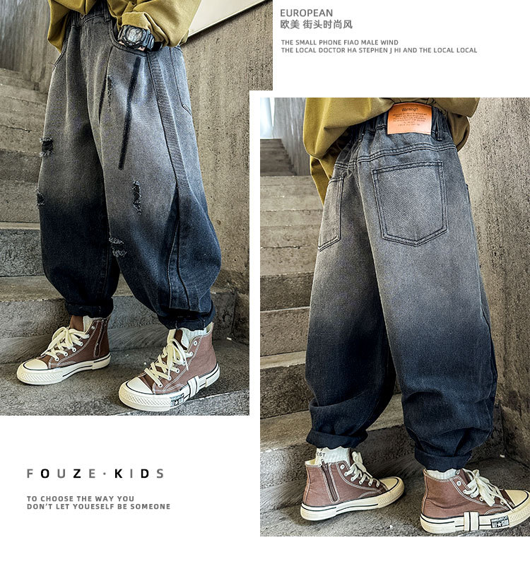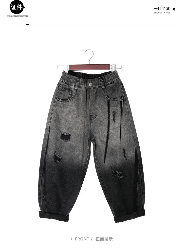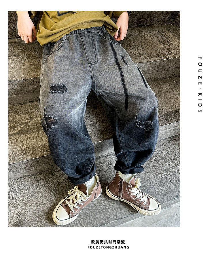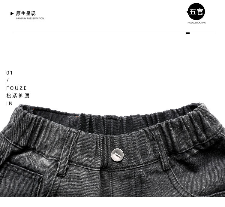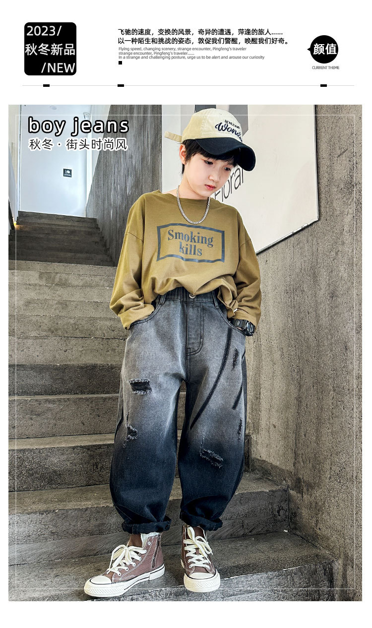 秋冬季大男童加绒牛仔裤新童装儿童男孩磨破牛仔裤长裤潮裤子个性