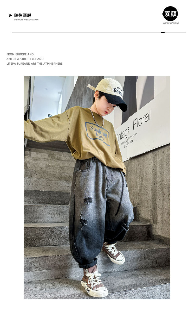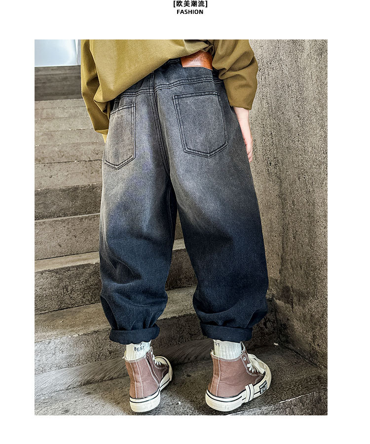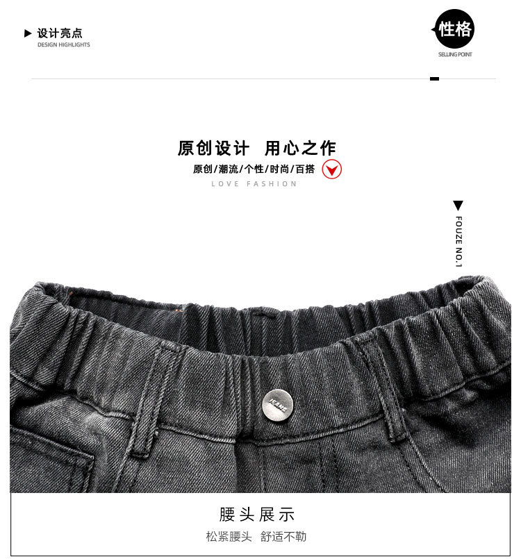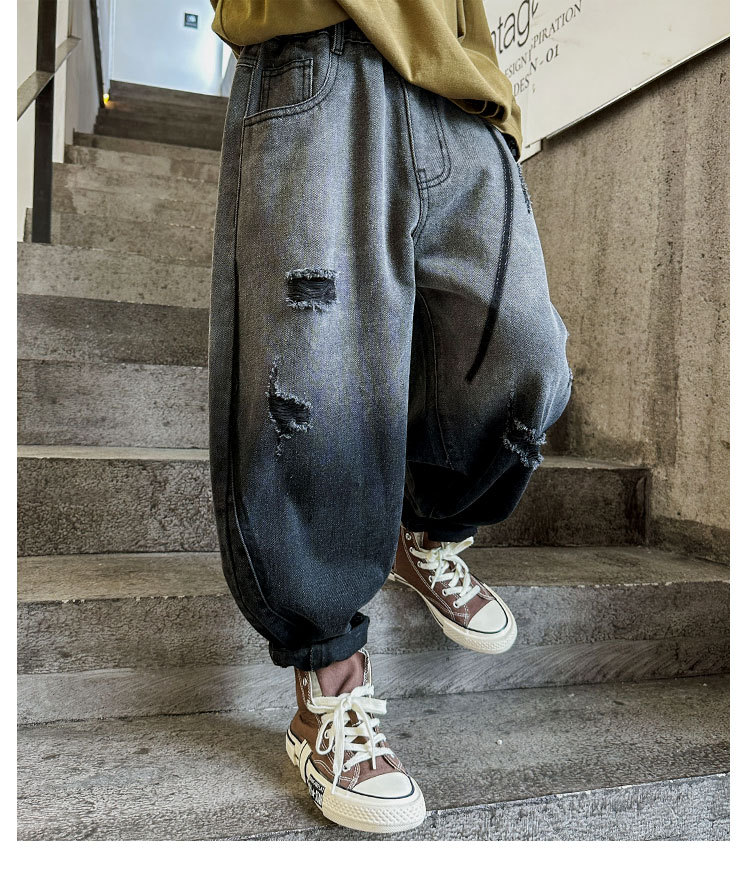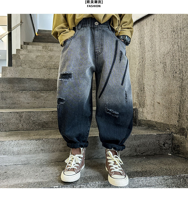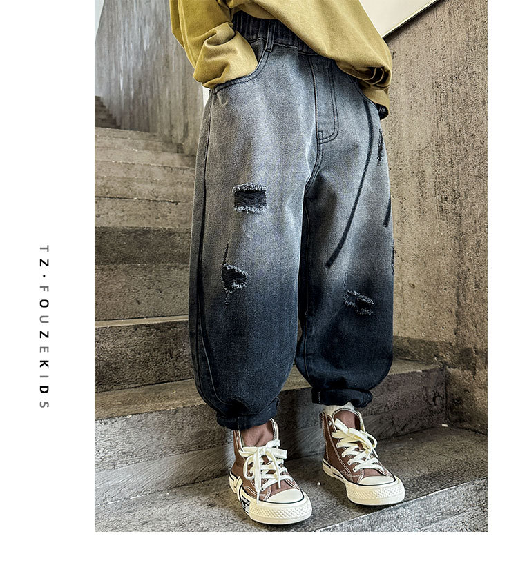 秋冬季大男童加绒牛仔裤新童装儿童男孩磨破牛仔裤长裤潮裤子个性