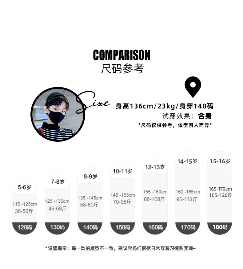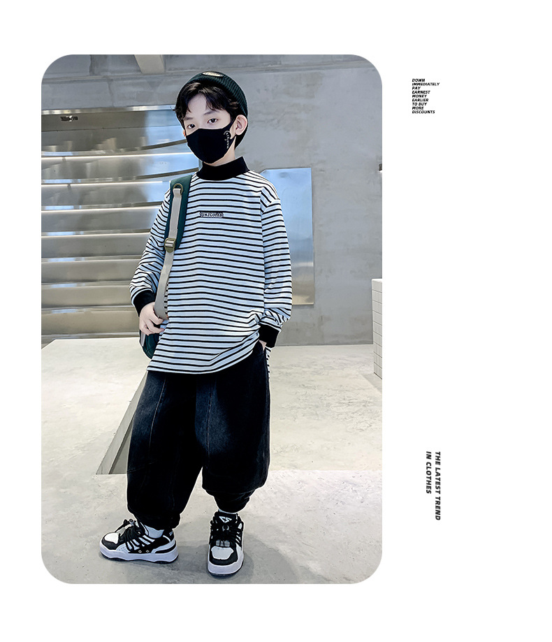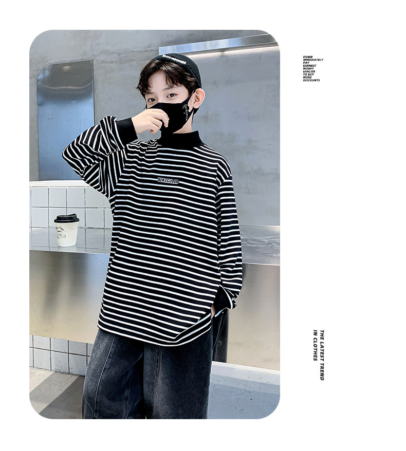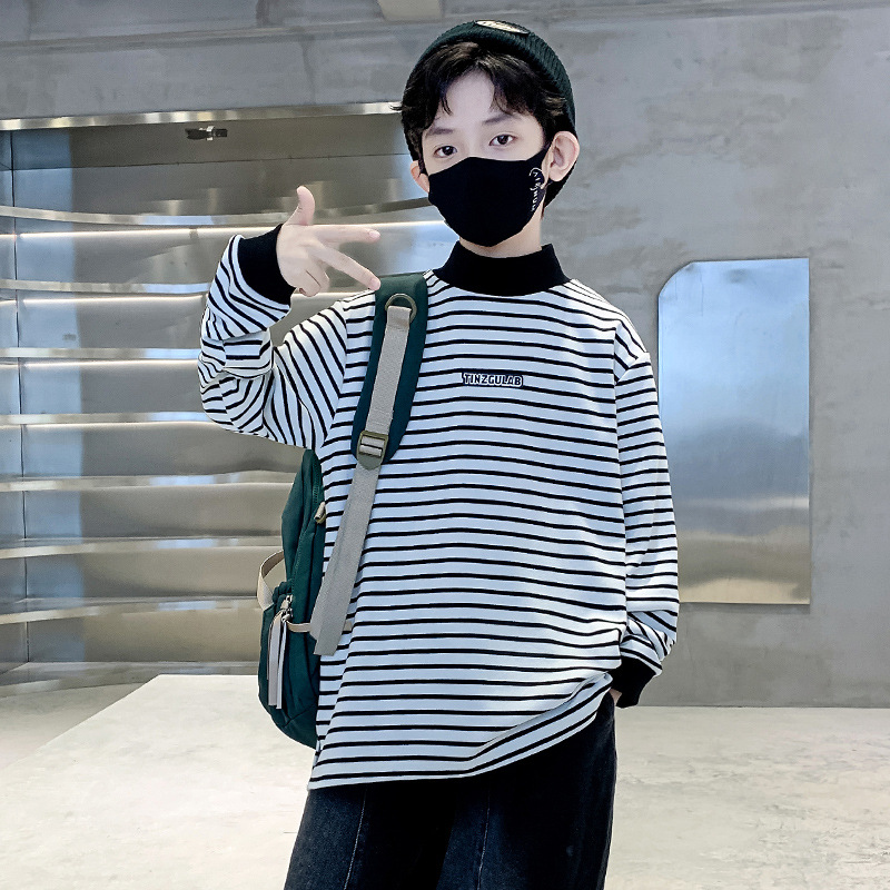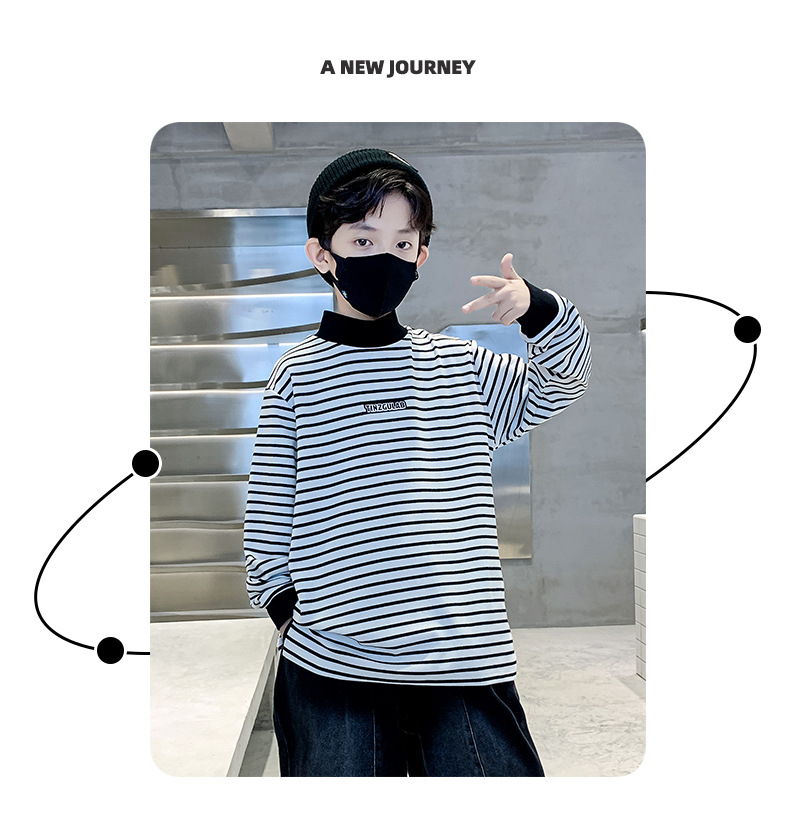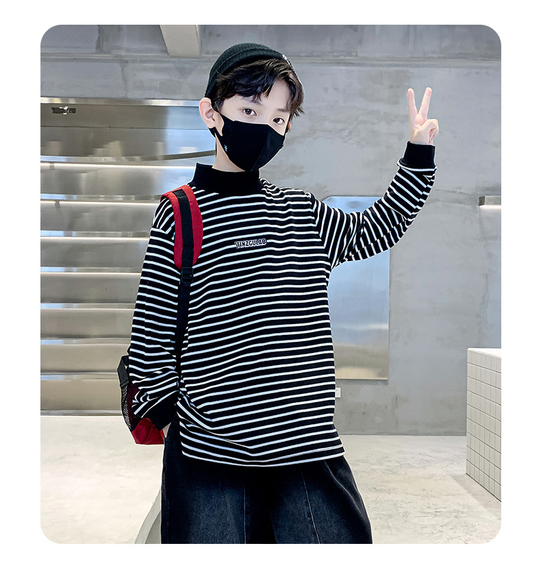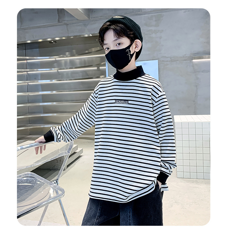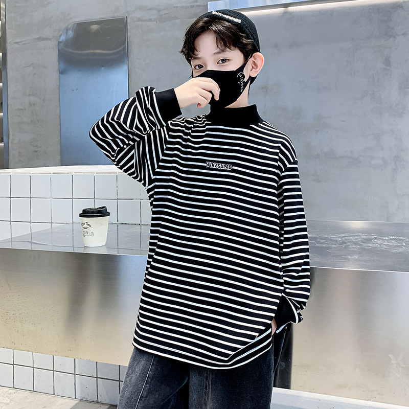 冬季男童德绒打底衫23新品大男孩条纹中领打底衫上衣内搭加绒百搭