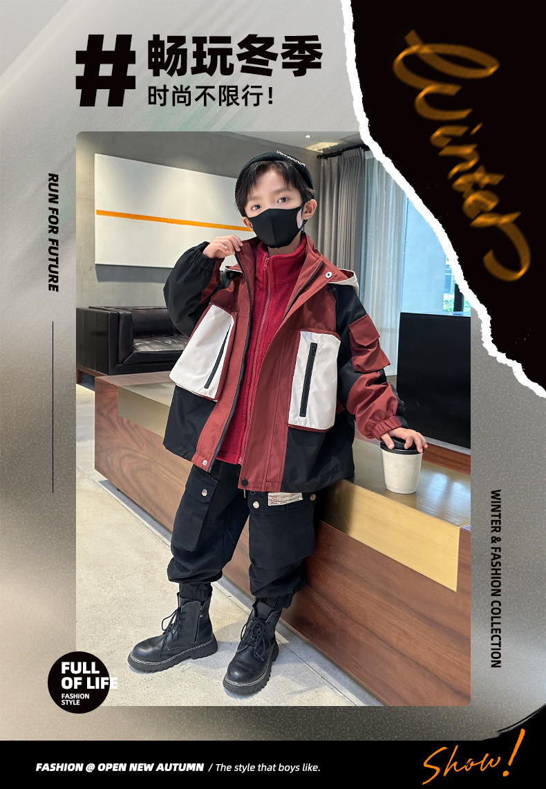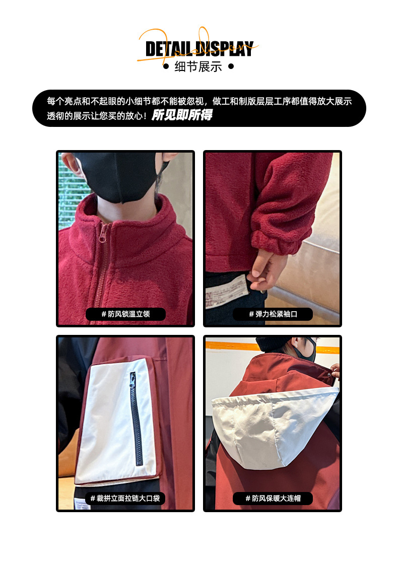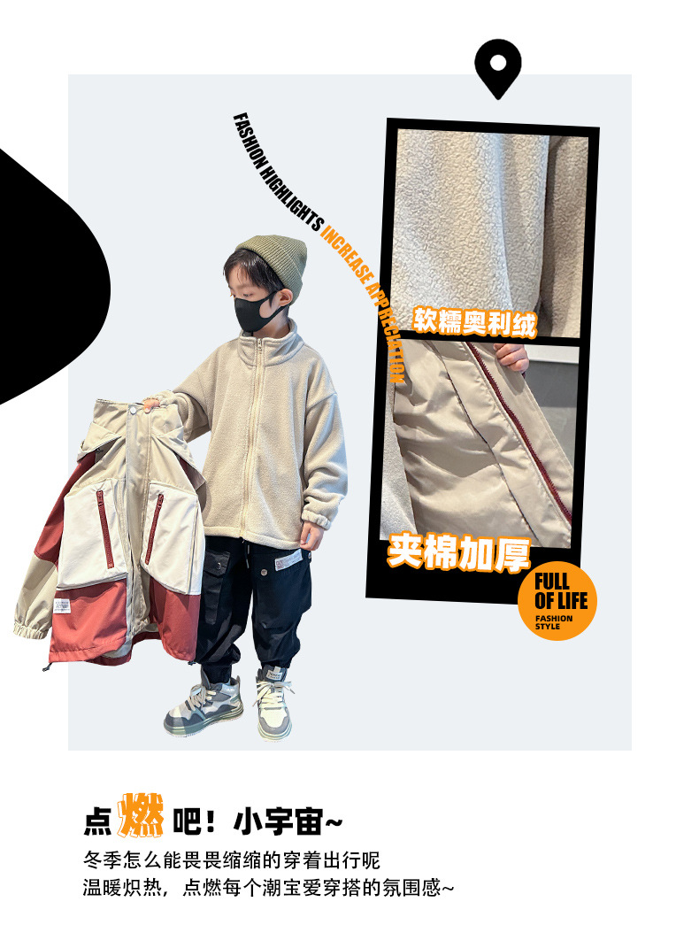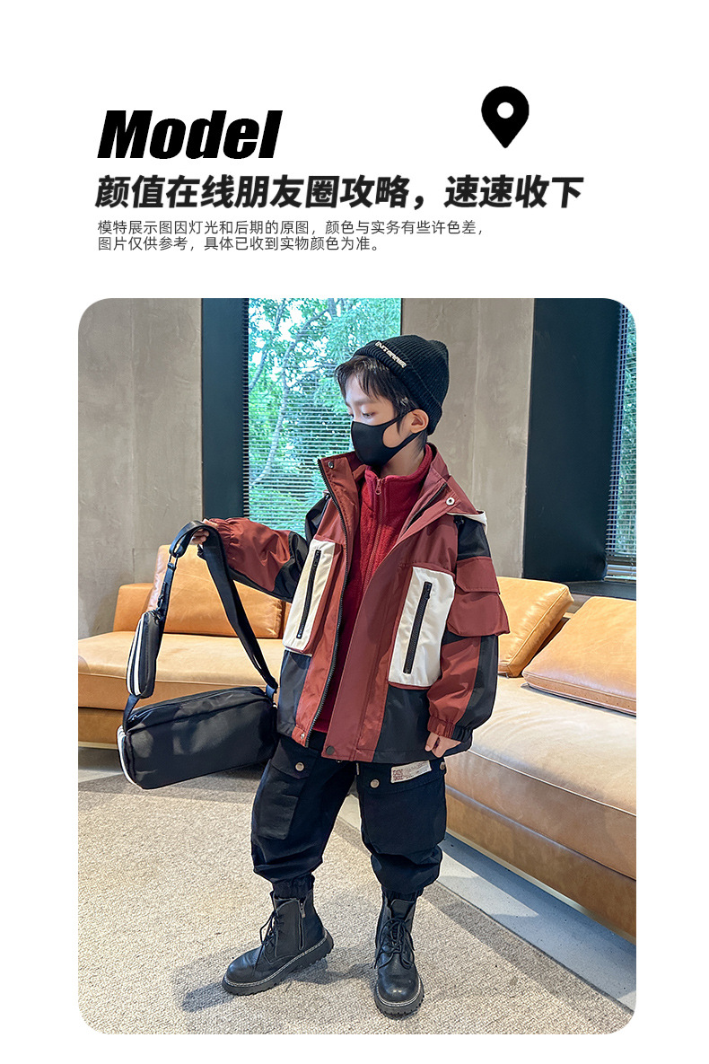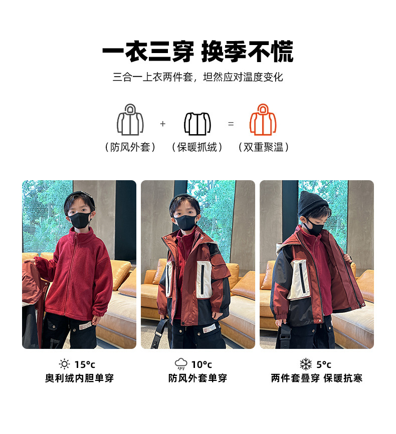 冬季男童加绒外套新款冬装童装儿童大男孩内胆三合一冲锋衣两件套
