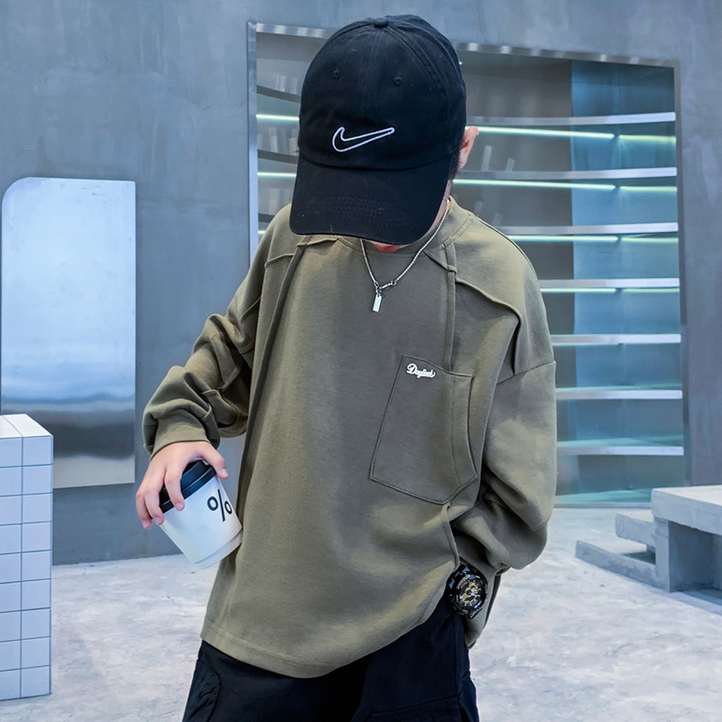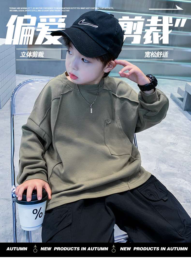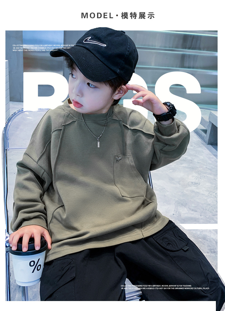 秋冬季男童加绒卫衣新大男孩个性上衣内搭长袖t恤潮范酷一件代发