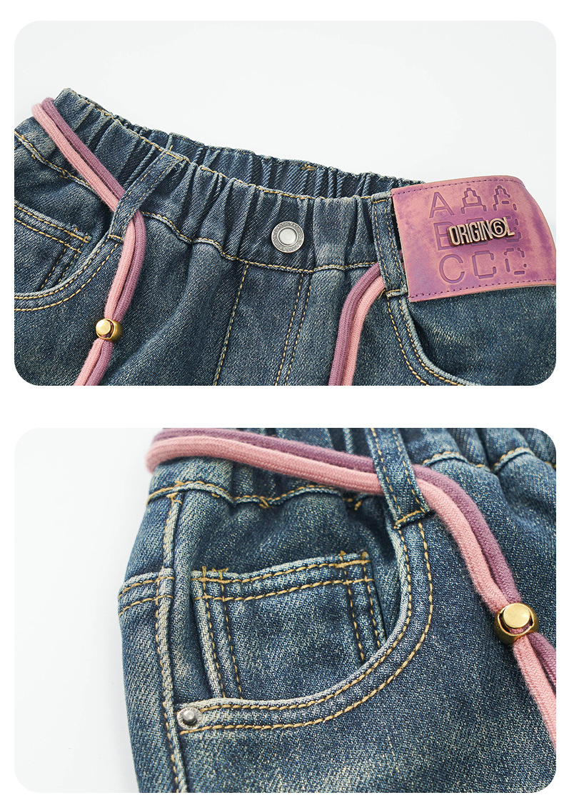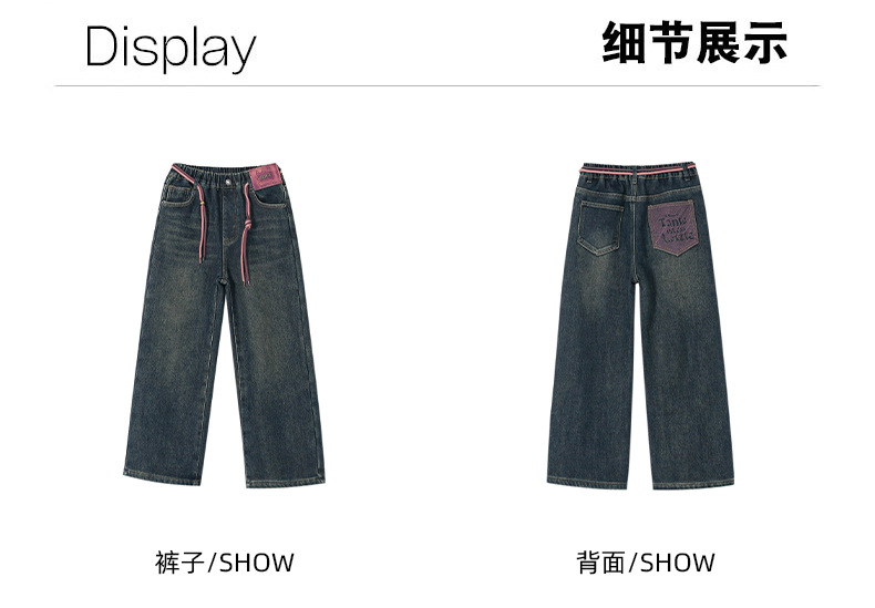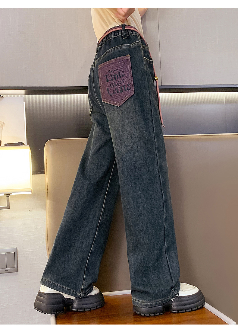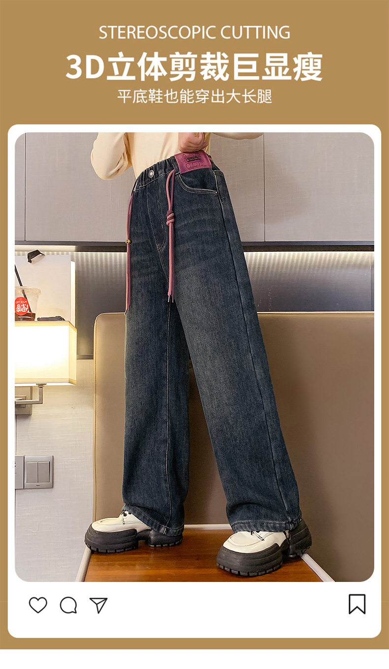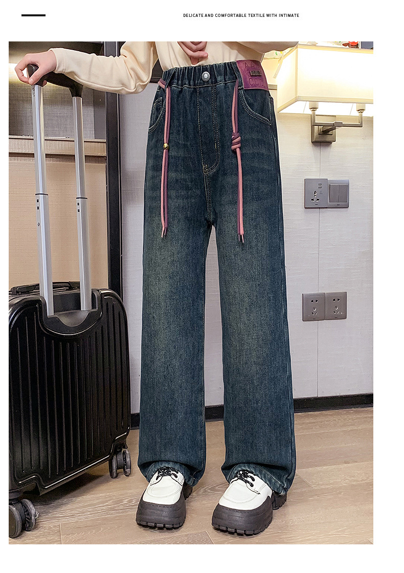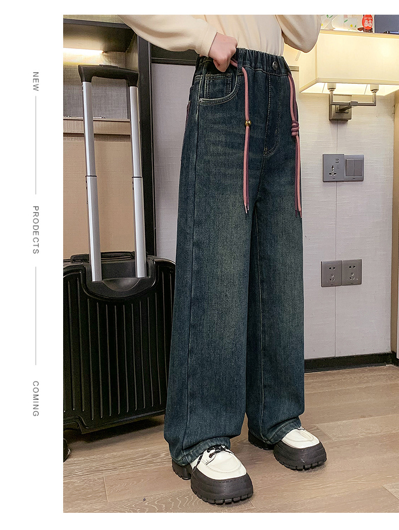 冬季女童加绒牛仔裤新款童装儿童女孩阔腿长裤潮流裤子宽松直筒韩
