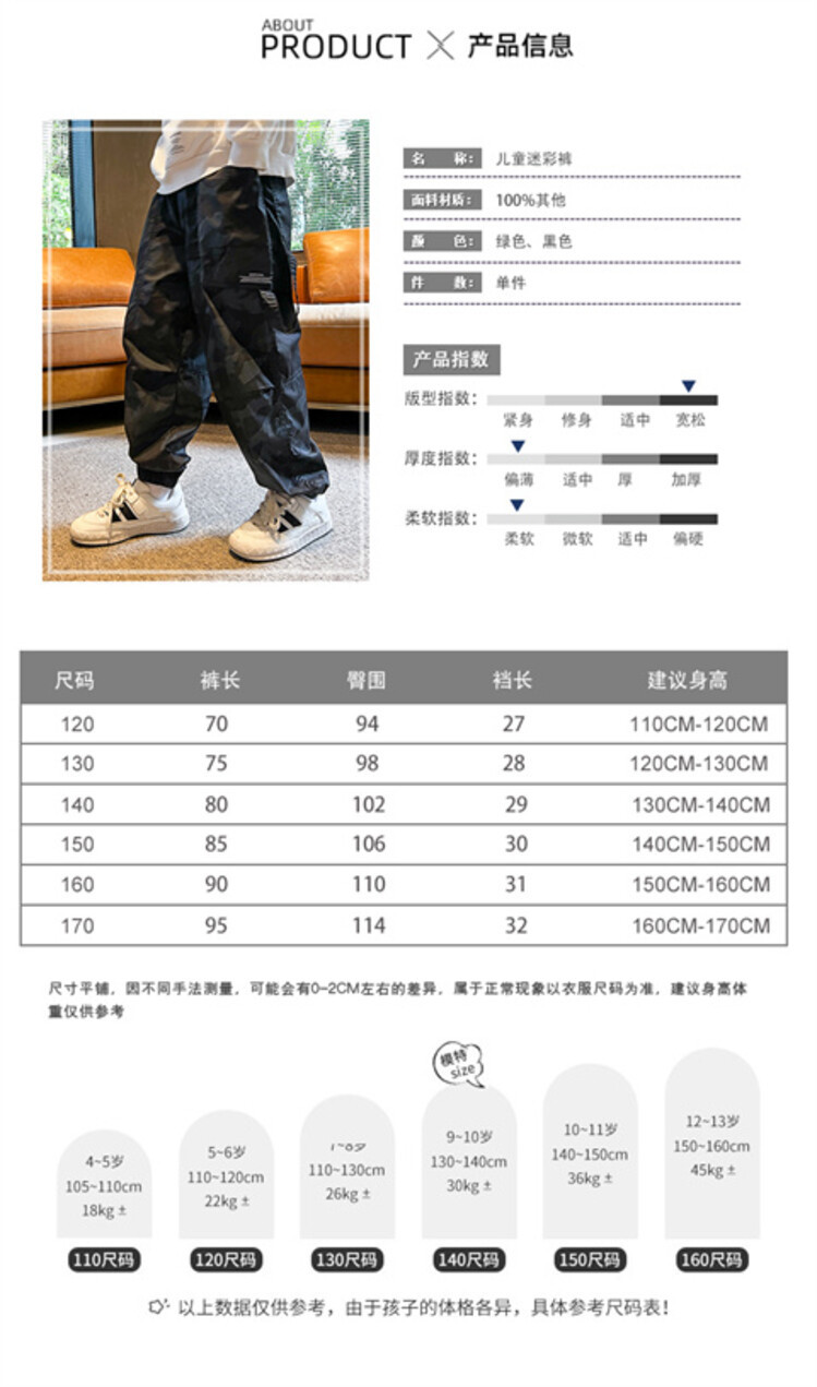秋季男童迷彩裤2023新款童装儿童中大男童迷彩休闲裤男孩外穿裤子