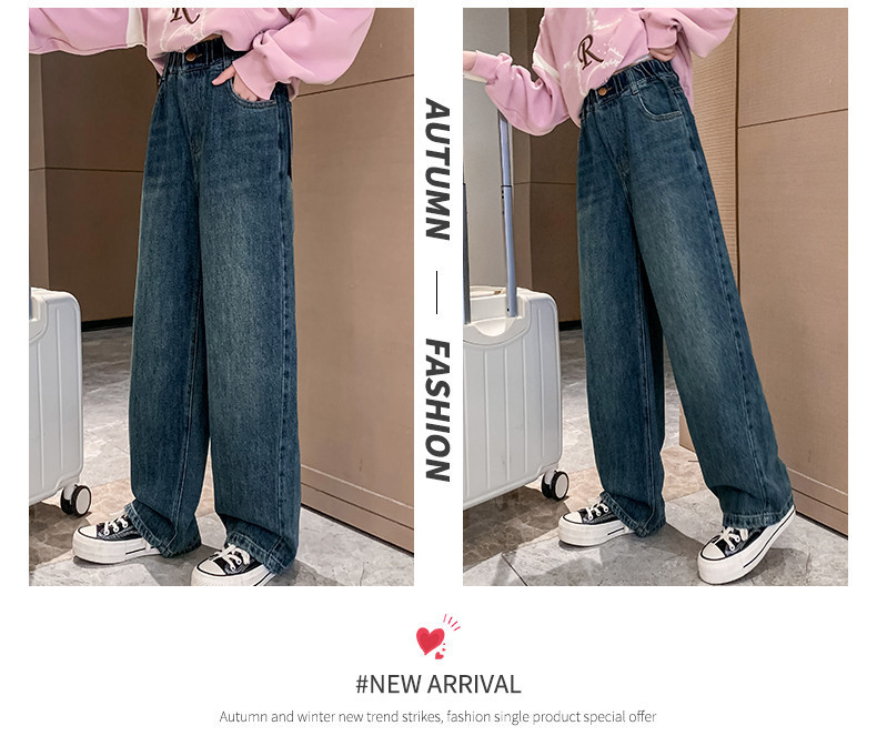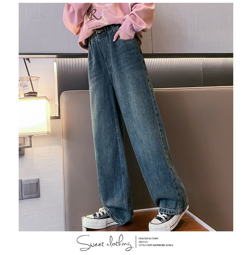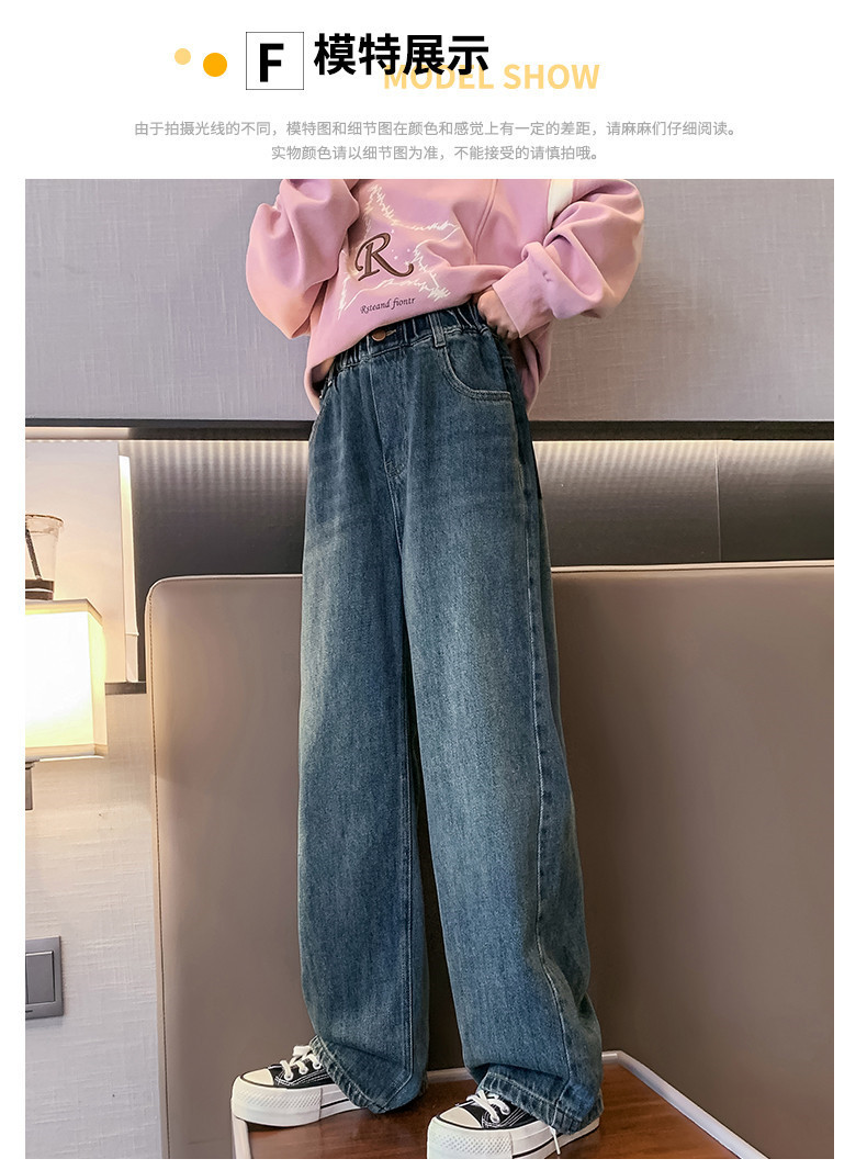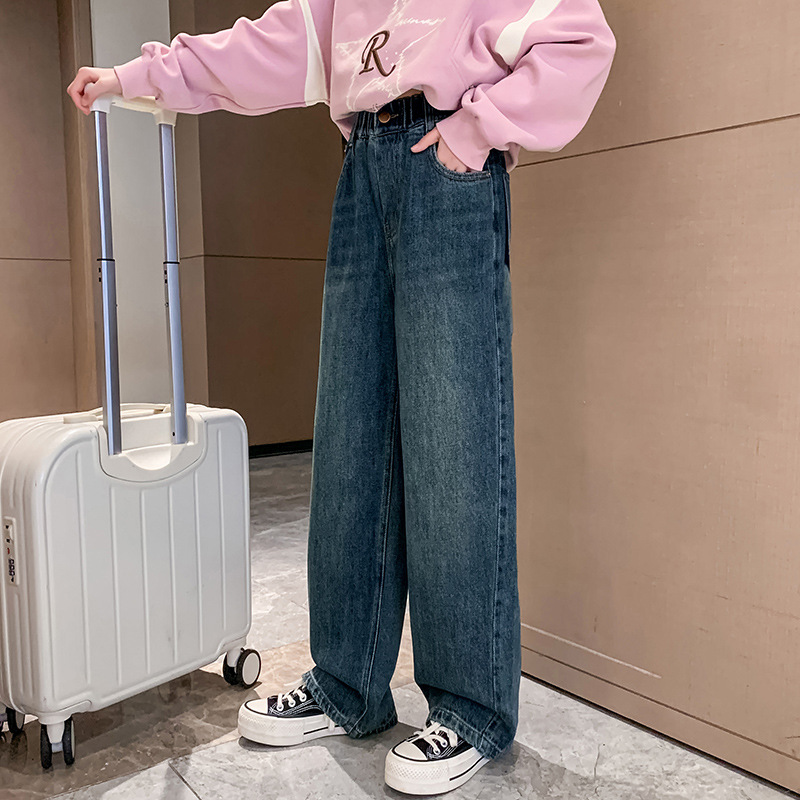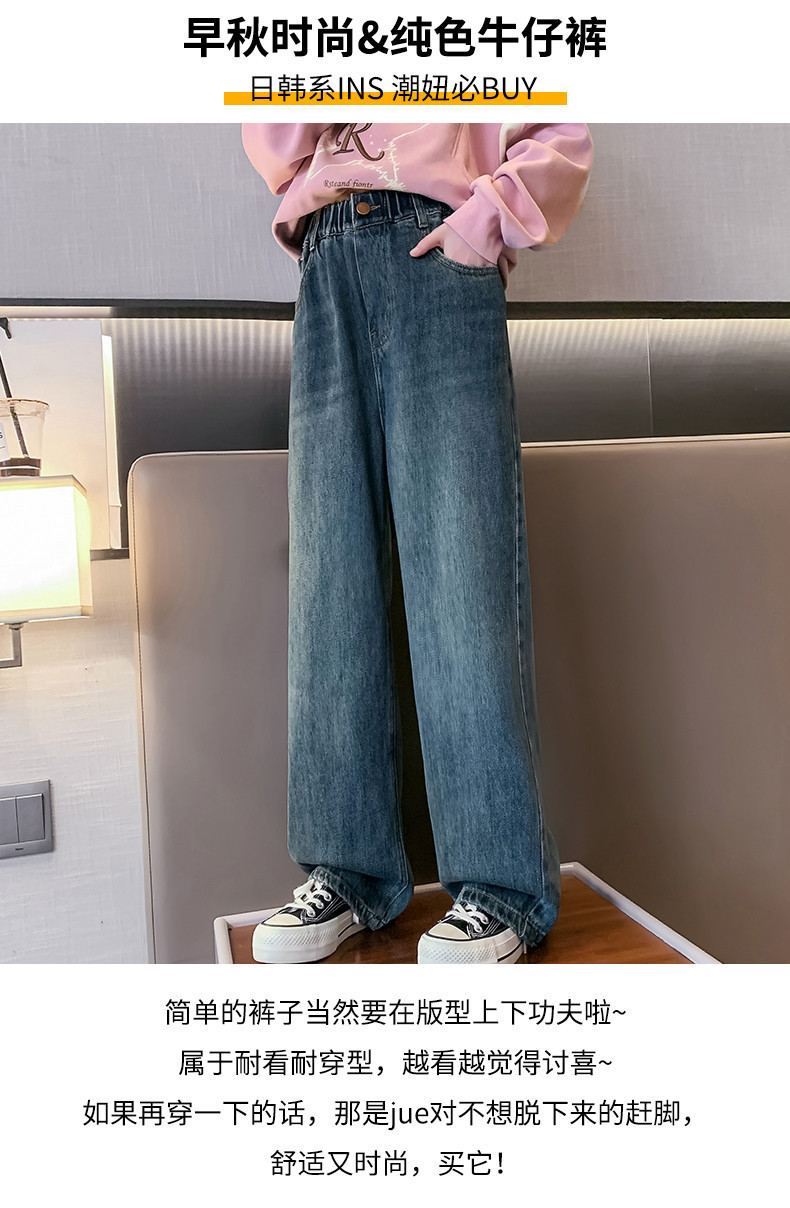 秋季大女童牛仔裤23新款童装儿童女孩阔腿牛仔裤长裤潮款裤子直筒