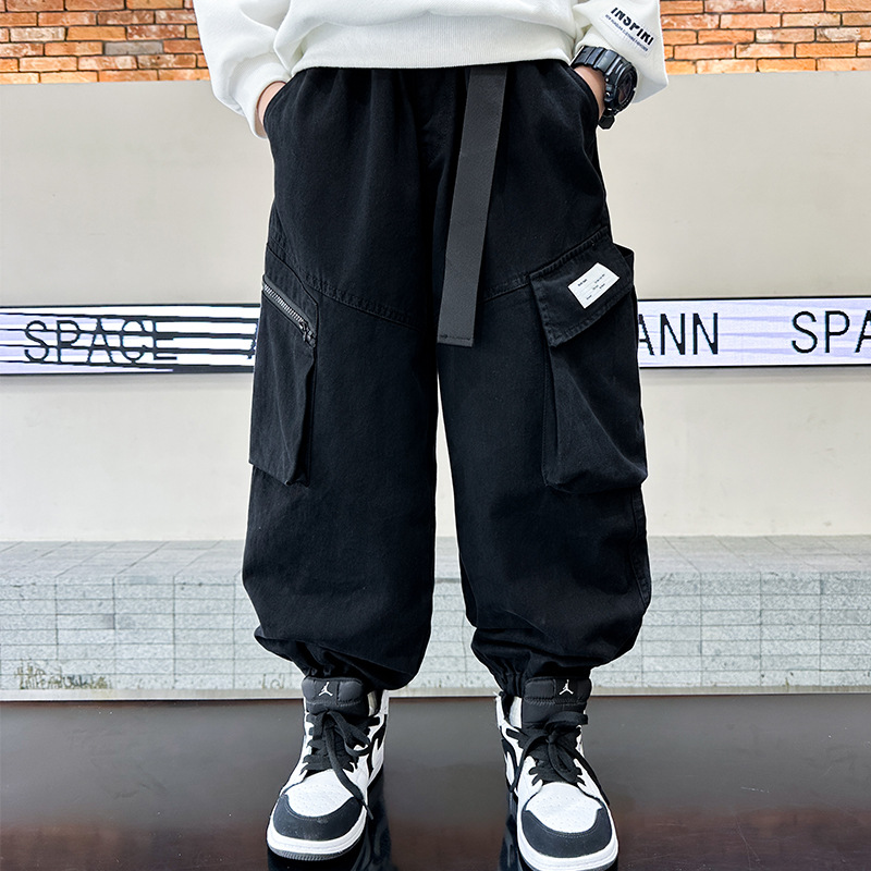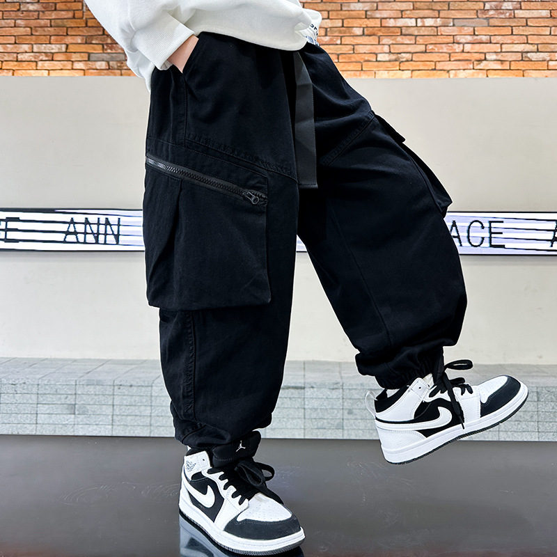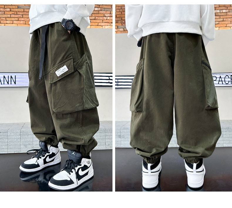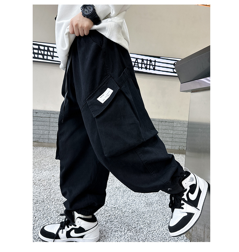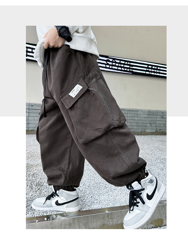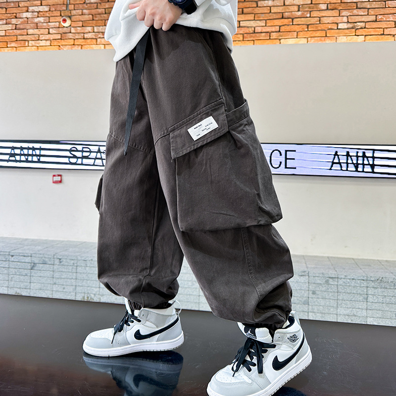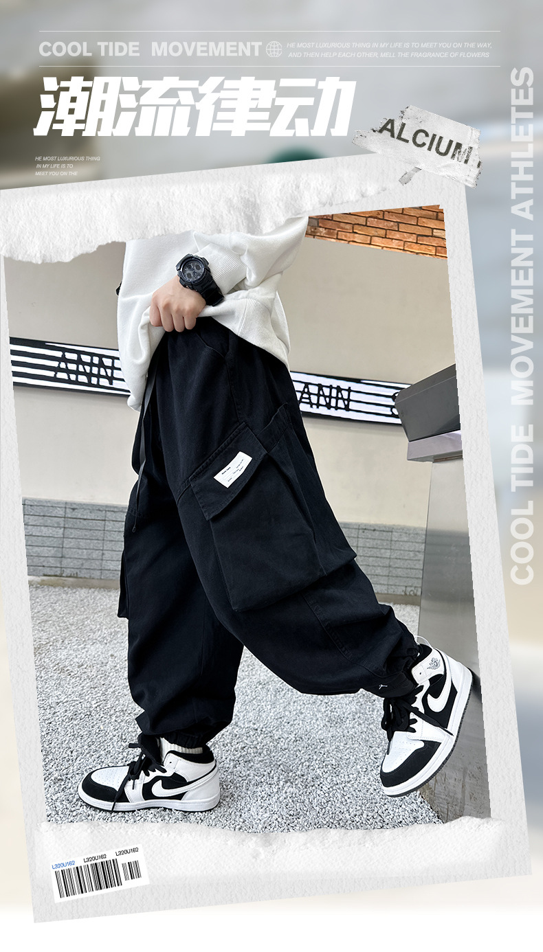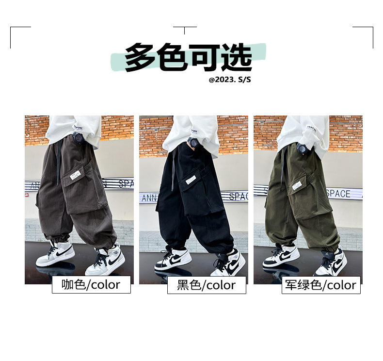 秋季男童工装裤2023新款大男孩大口袋休闲裤潮酷个性童装长裤代发