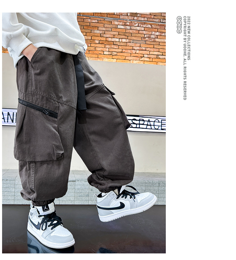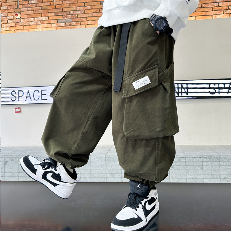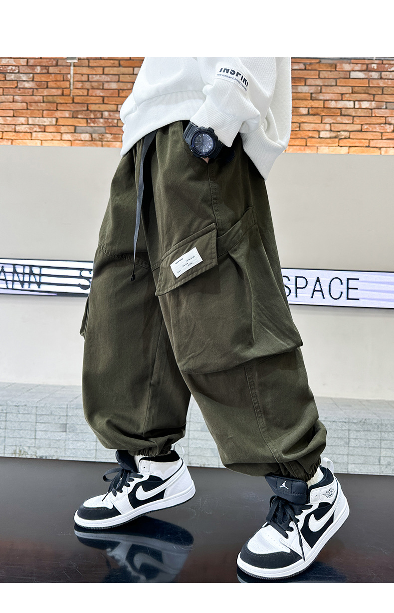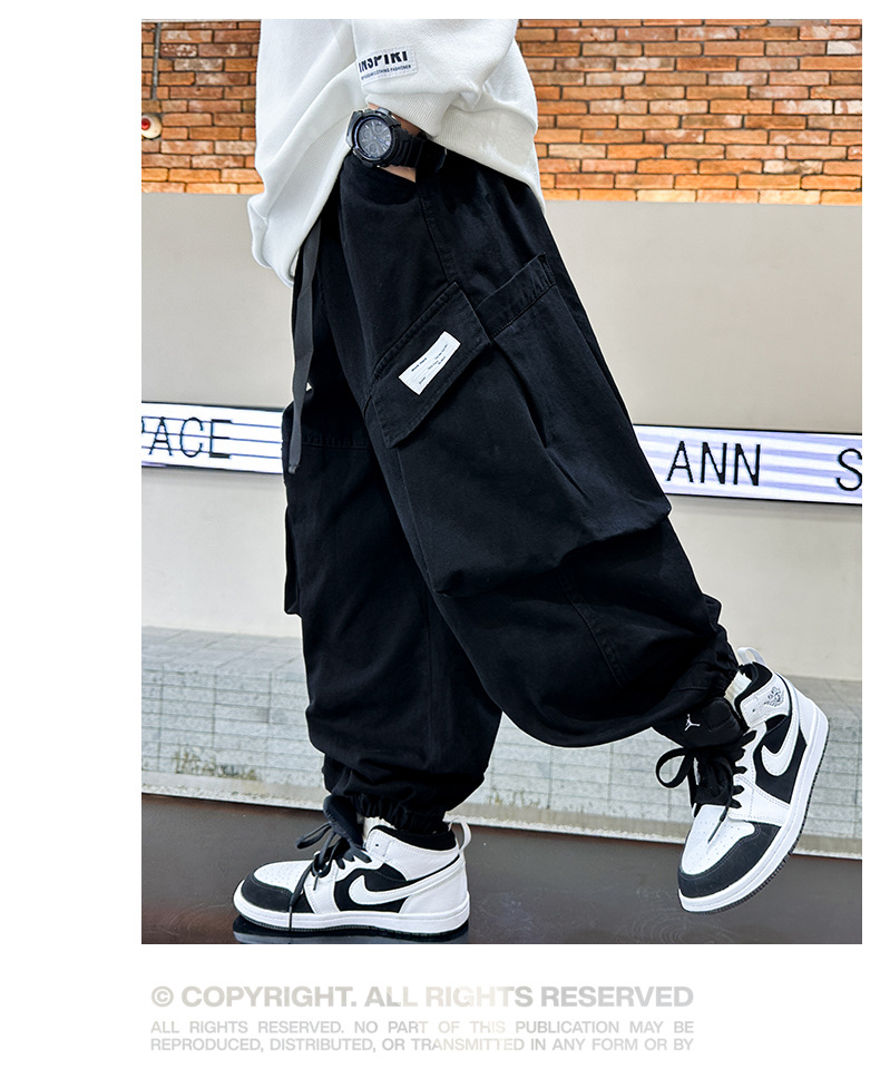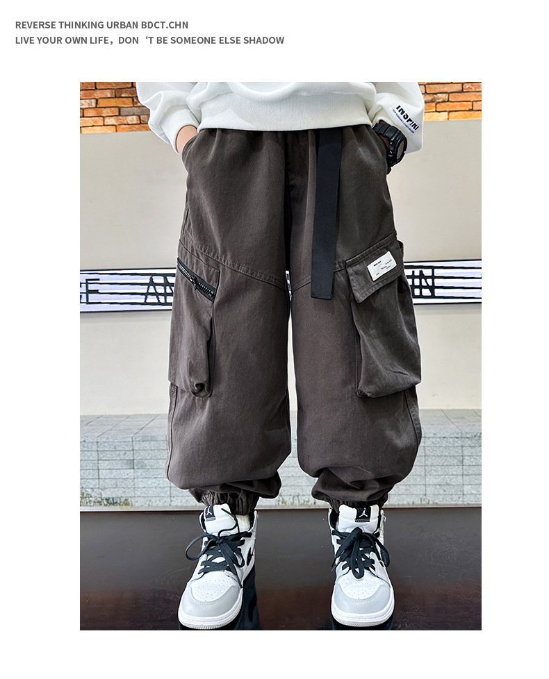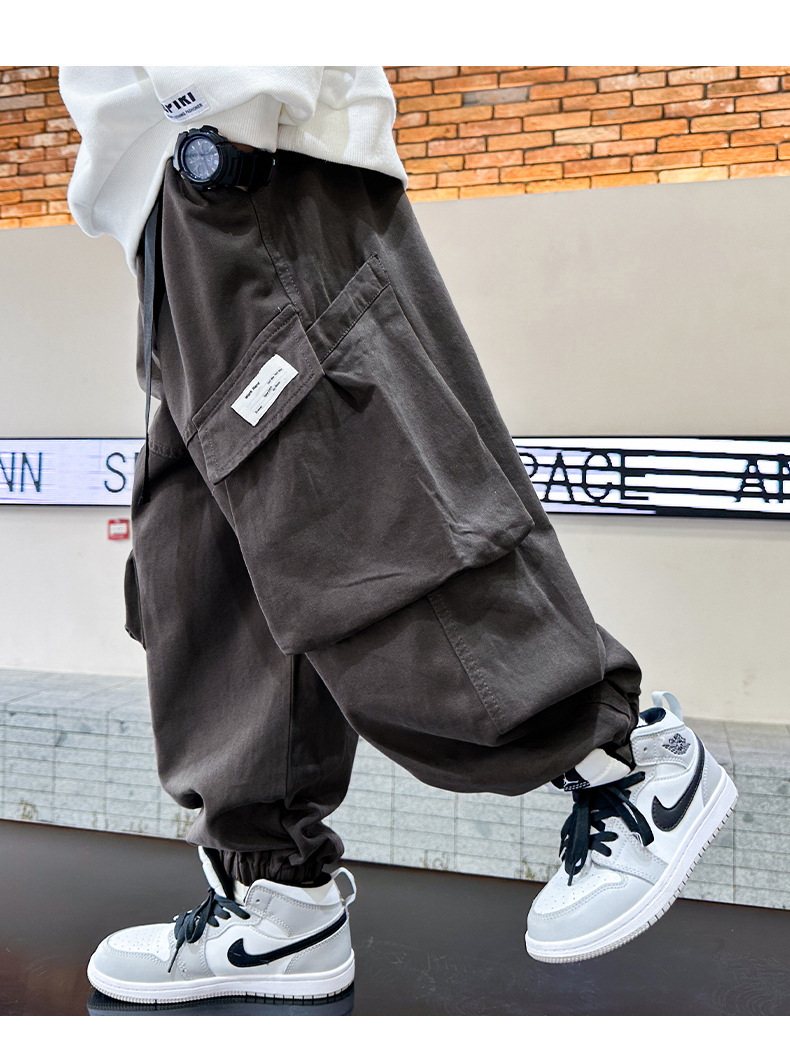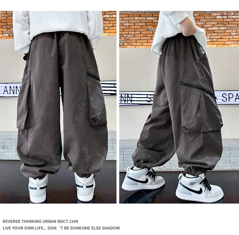 秋季男童工装裤2023新款大男孩大口袋休闲裤潮酷个性童装长裤代发