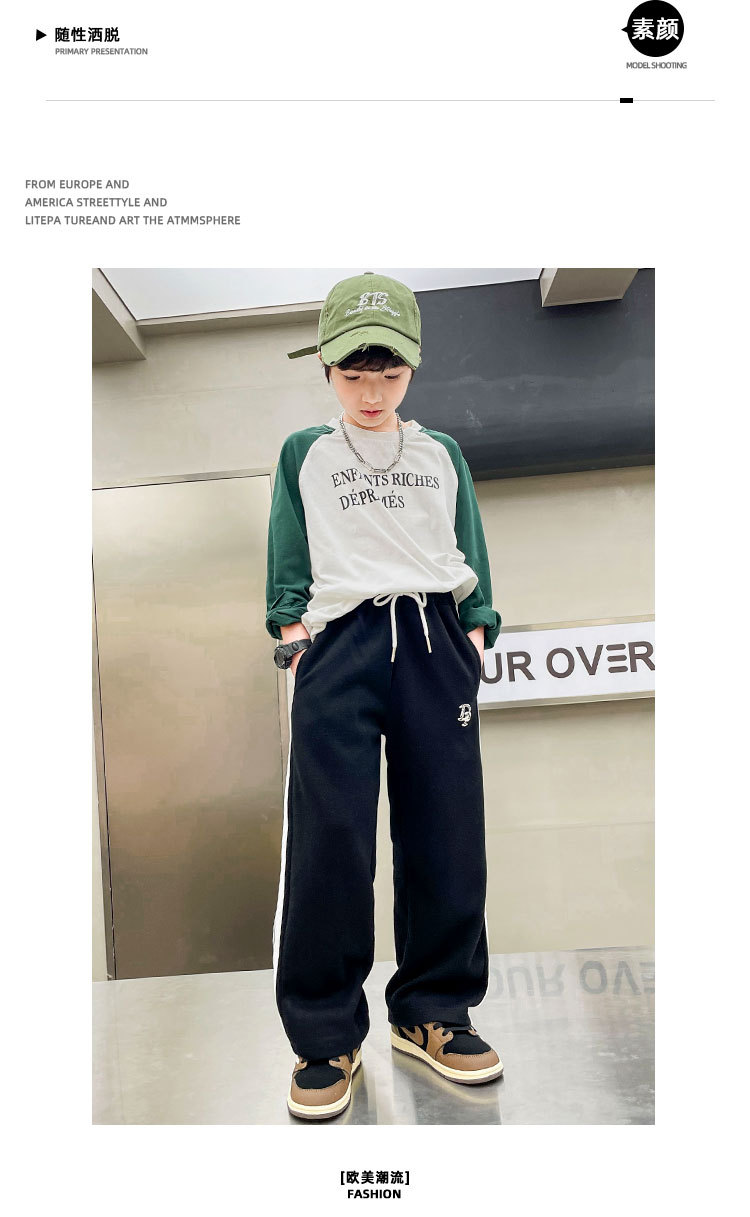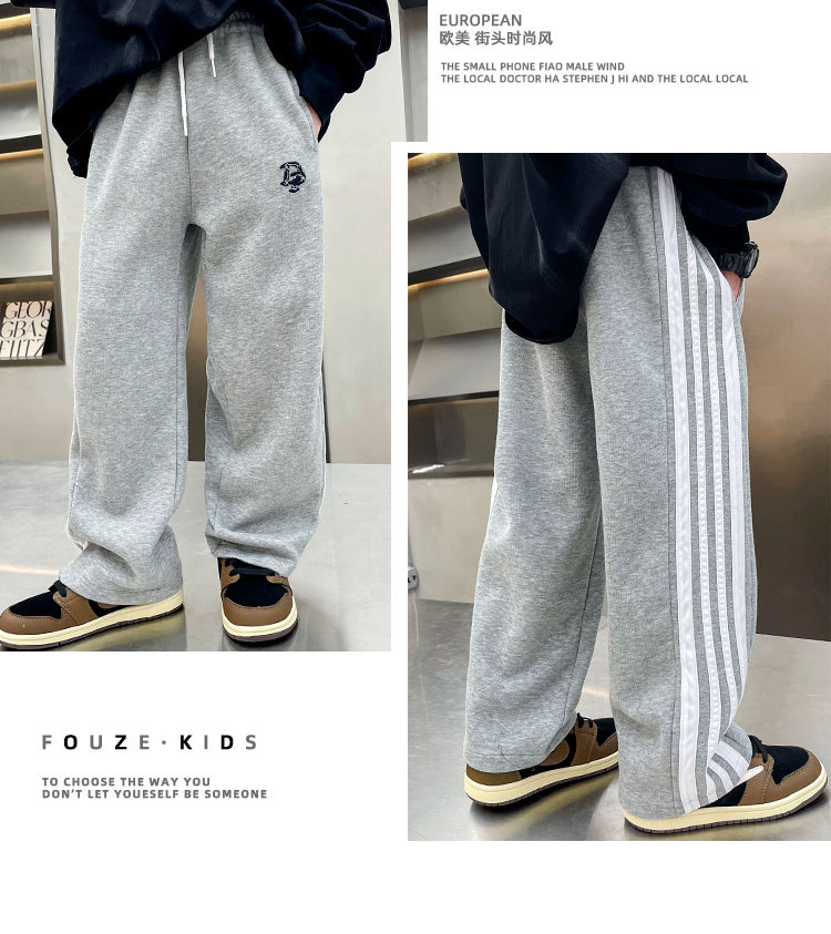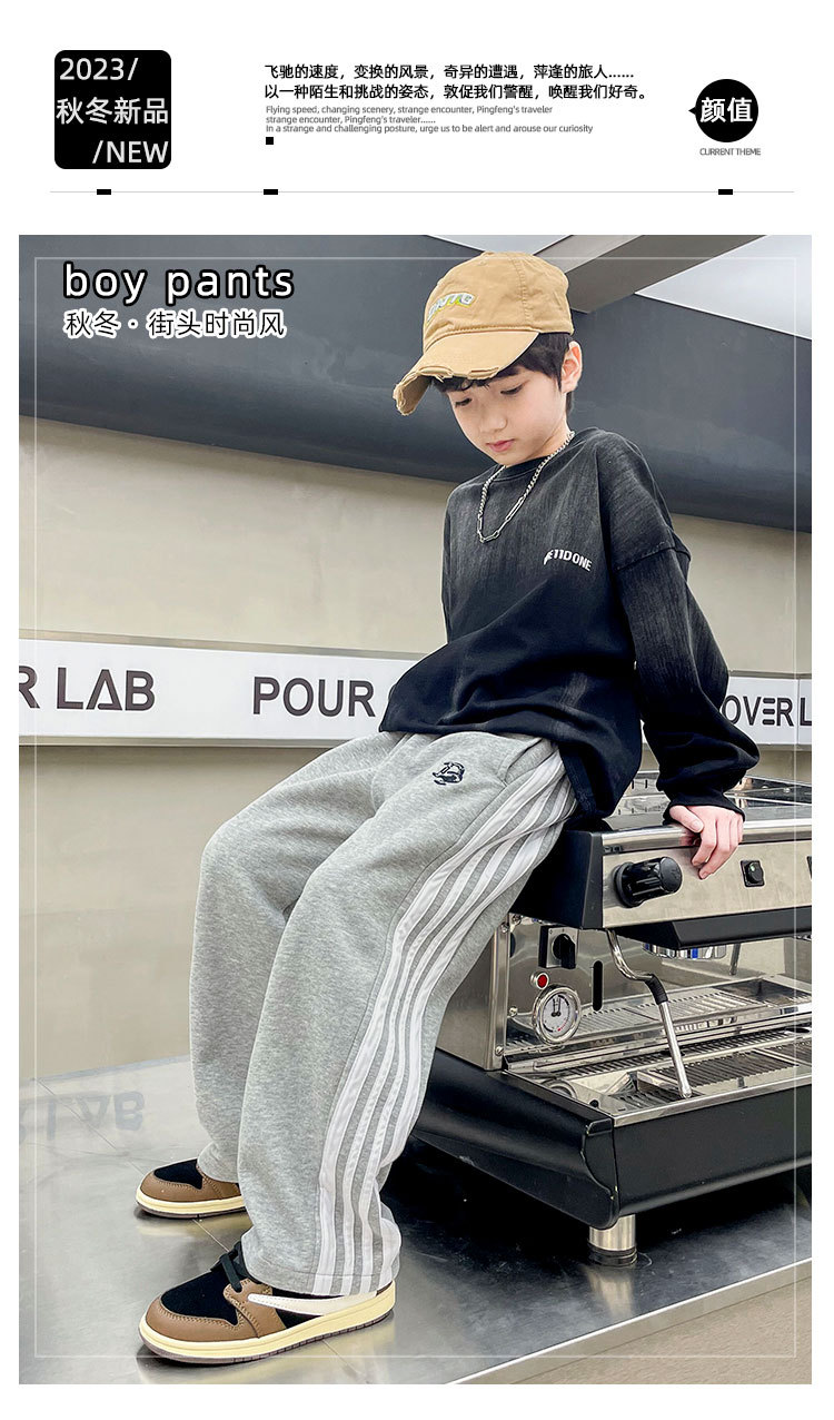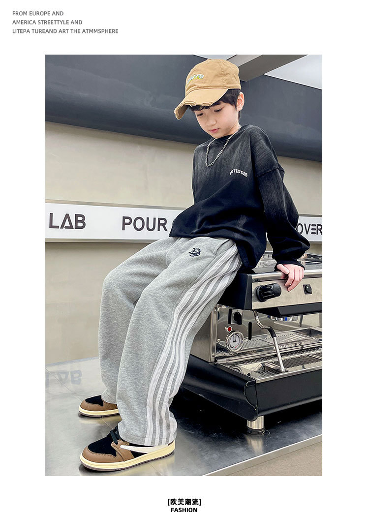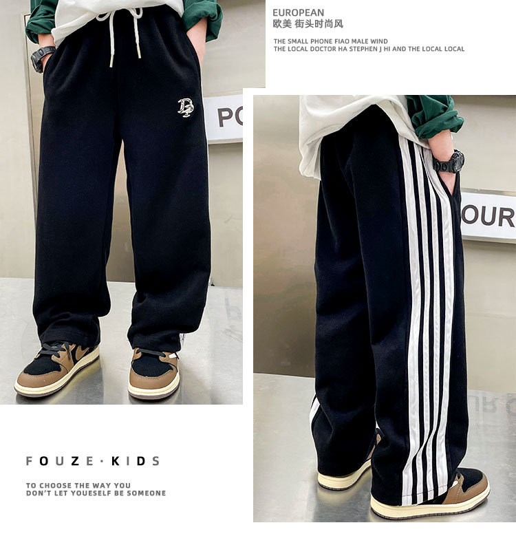 秋季男童运动裤童装休闲裤秋装儿童大男孩白条宽松直筒长裤童裤潮