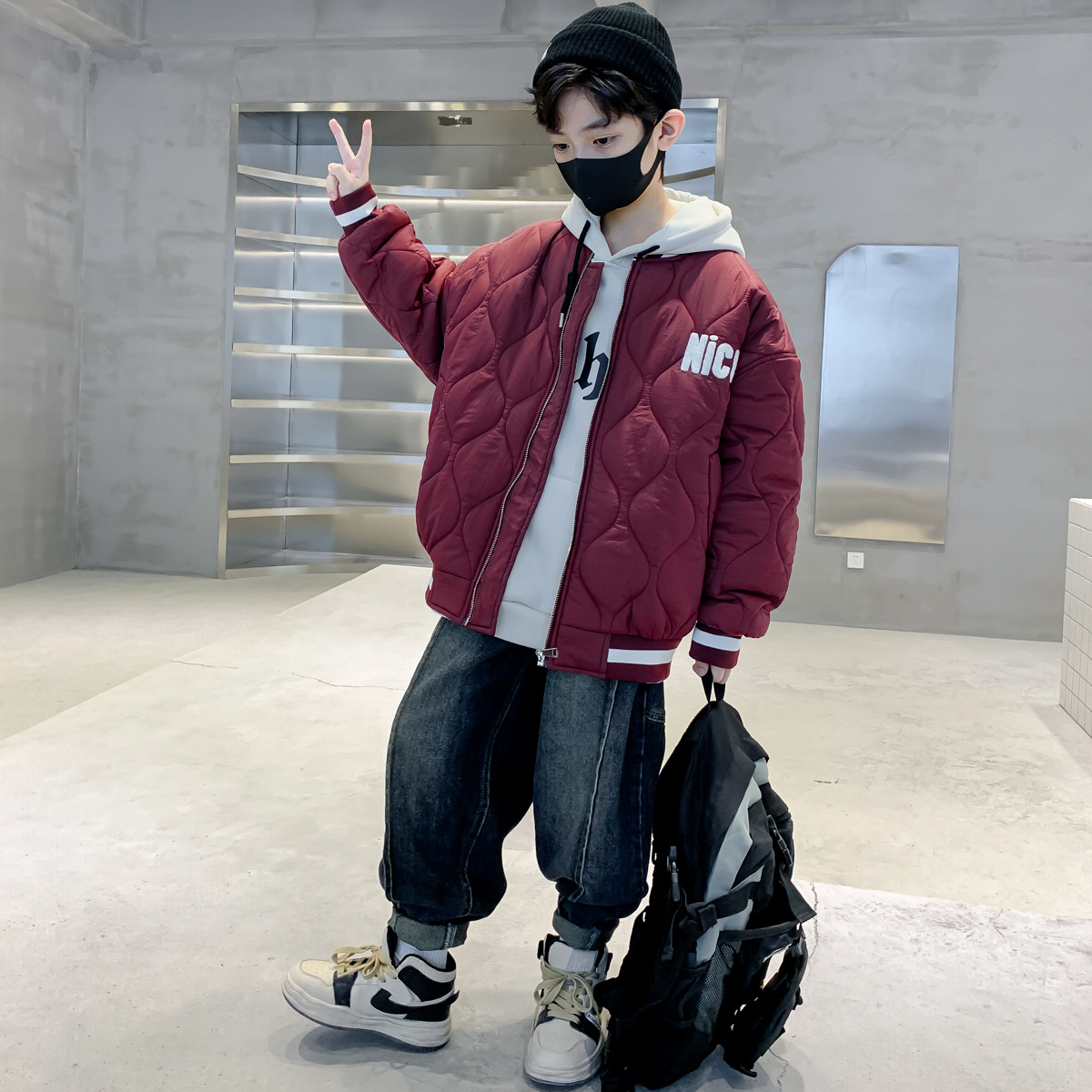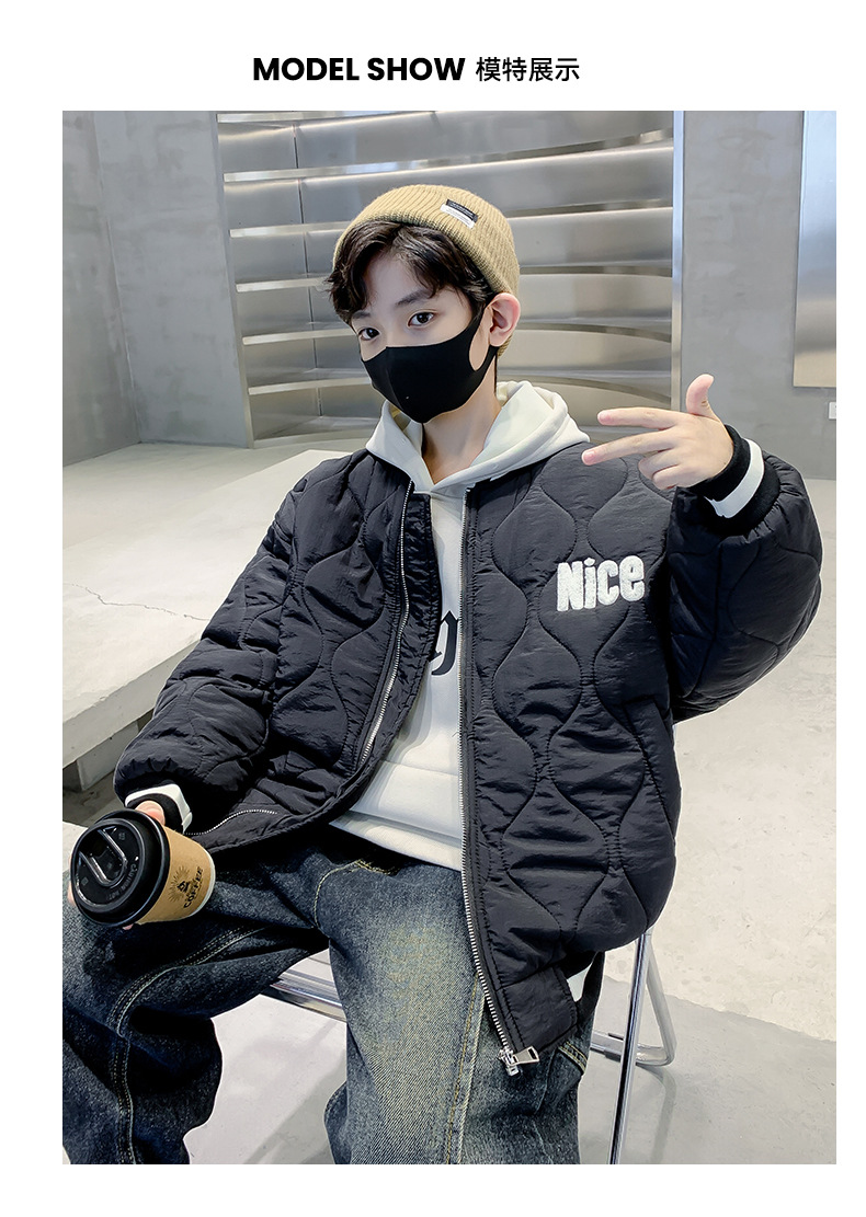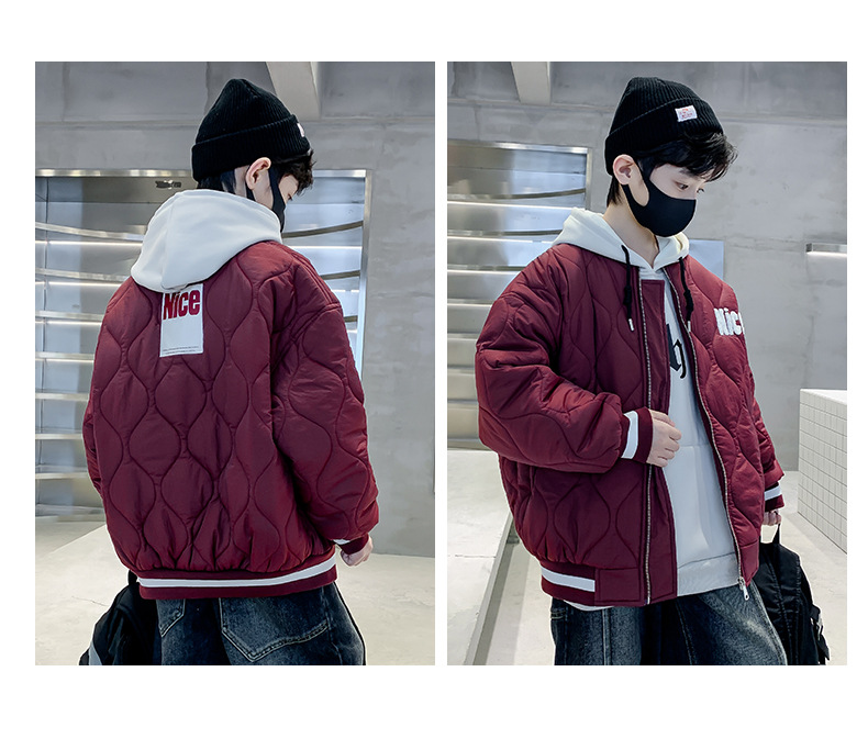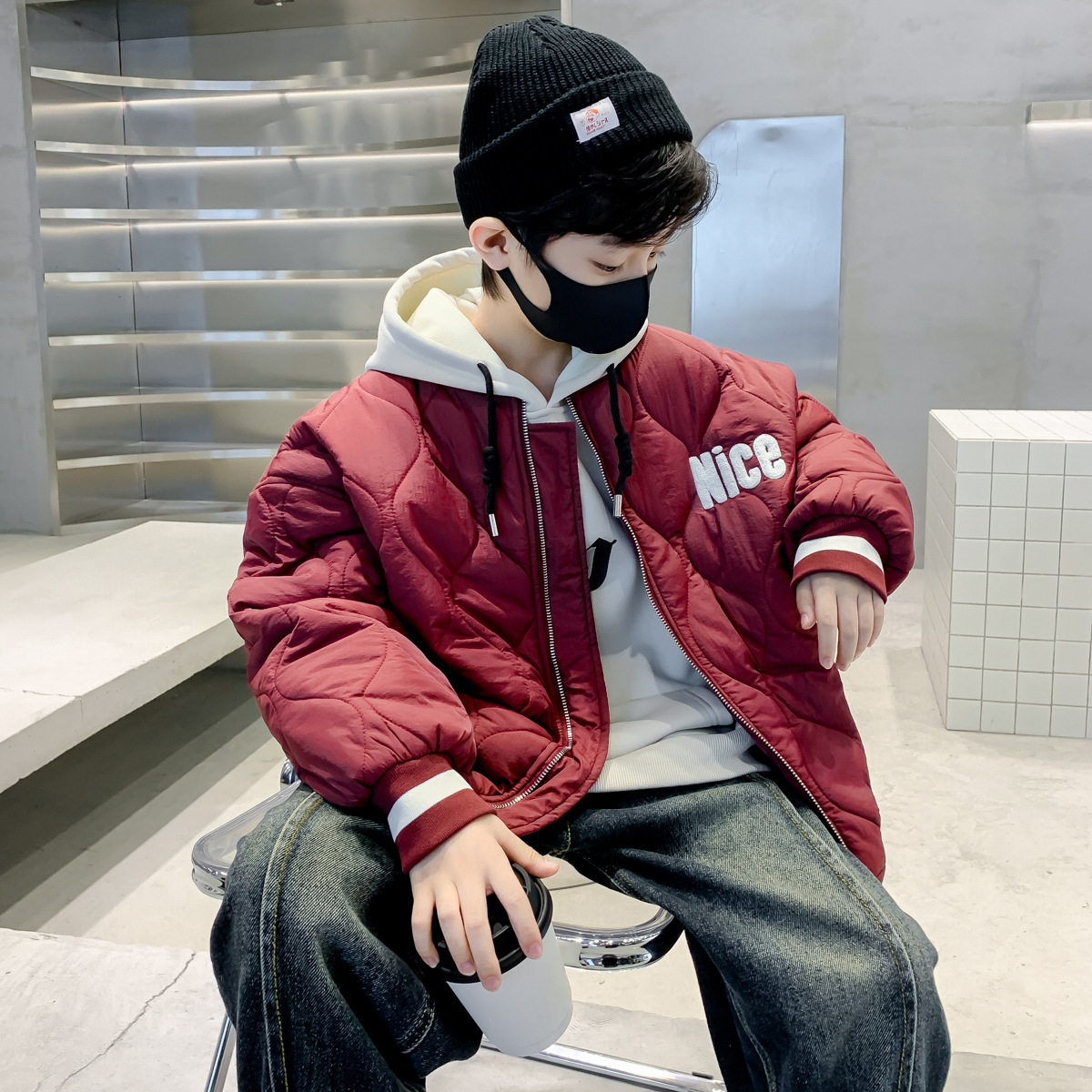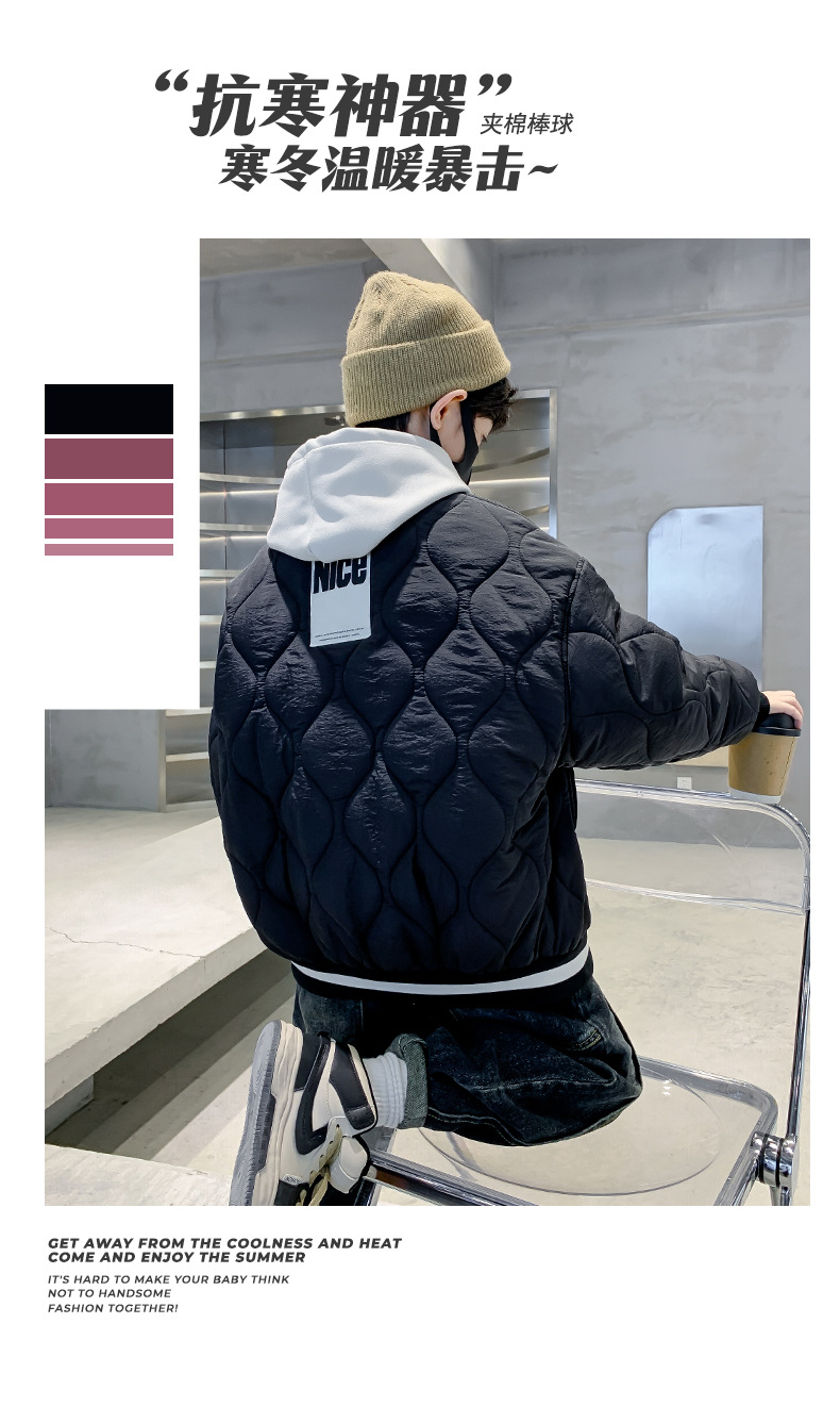 冬季男童薄棉衣冬装新品童装儿童大男孩菱格绗线夹棉外套棒球服潮