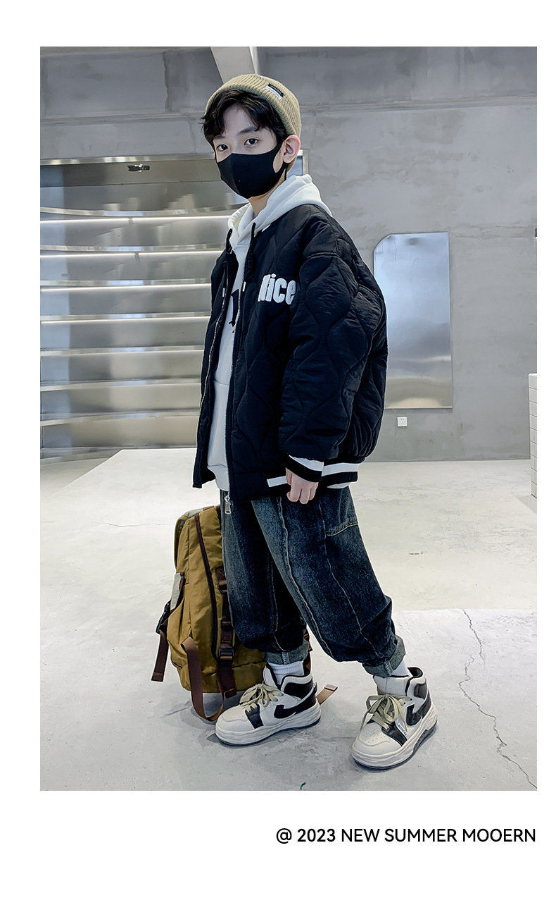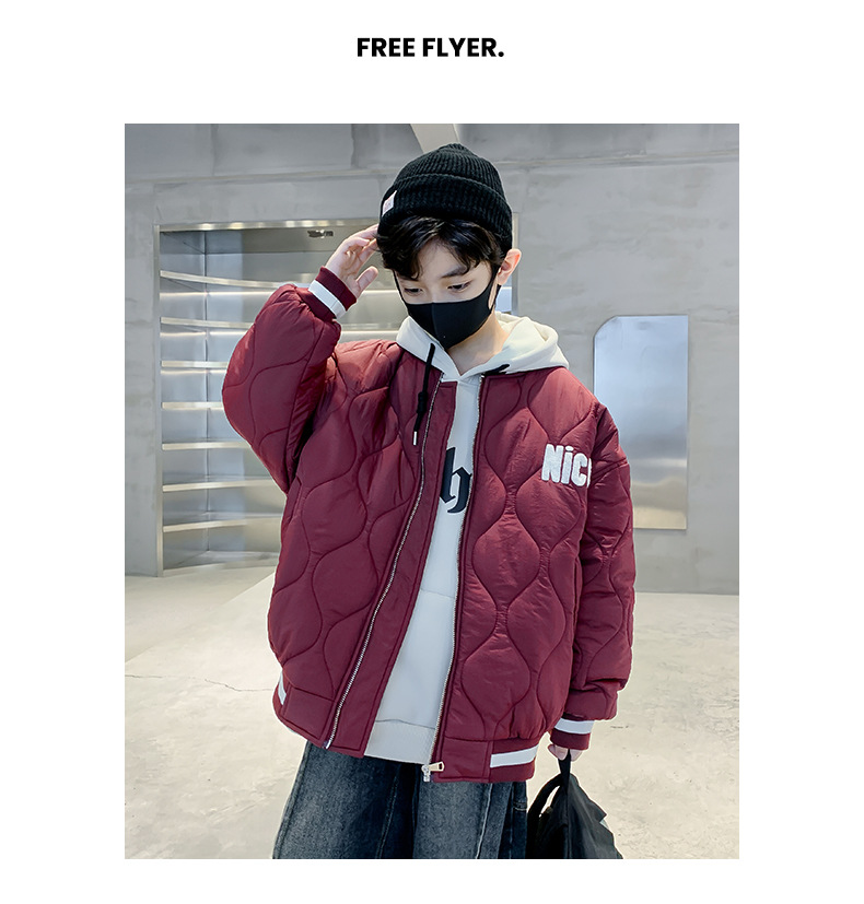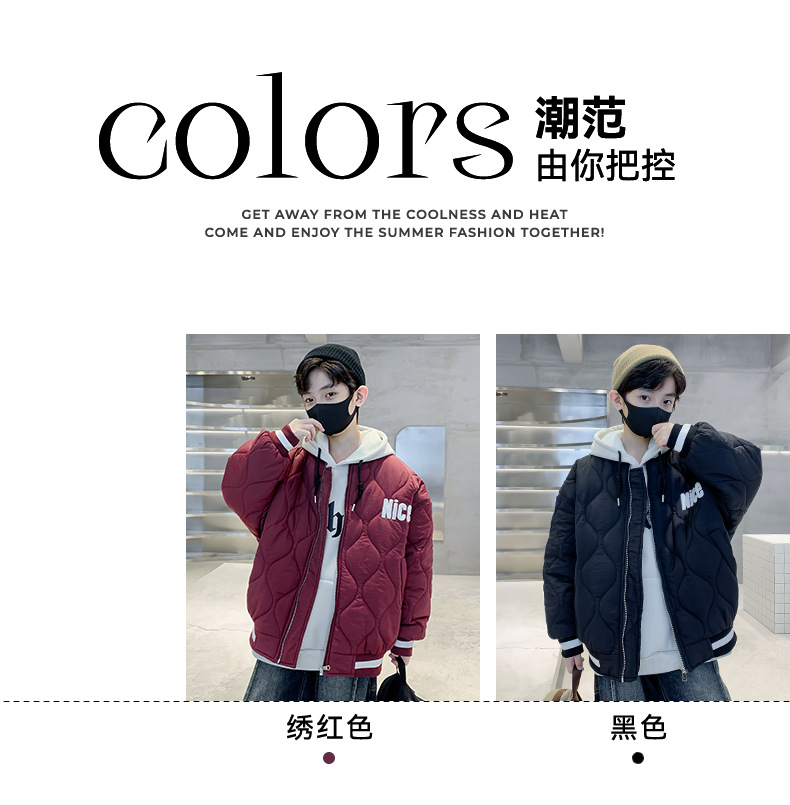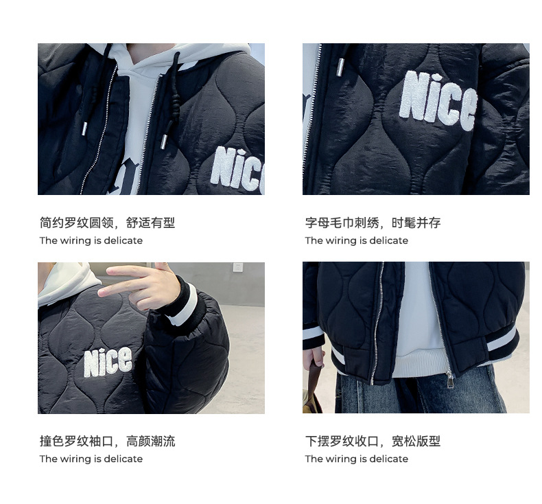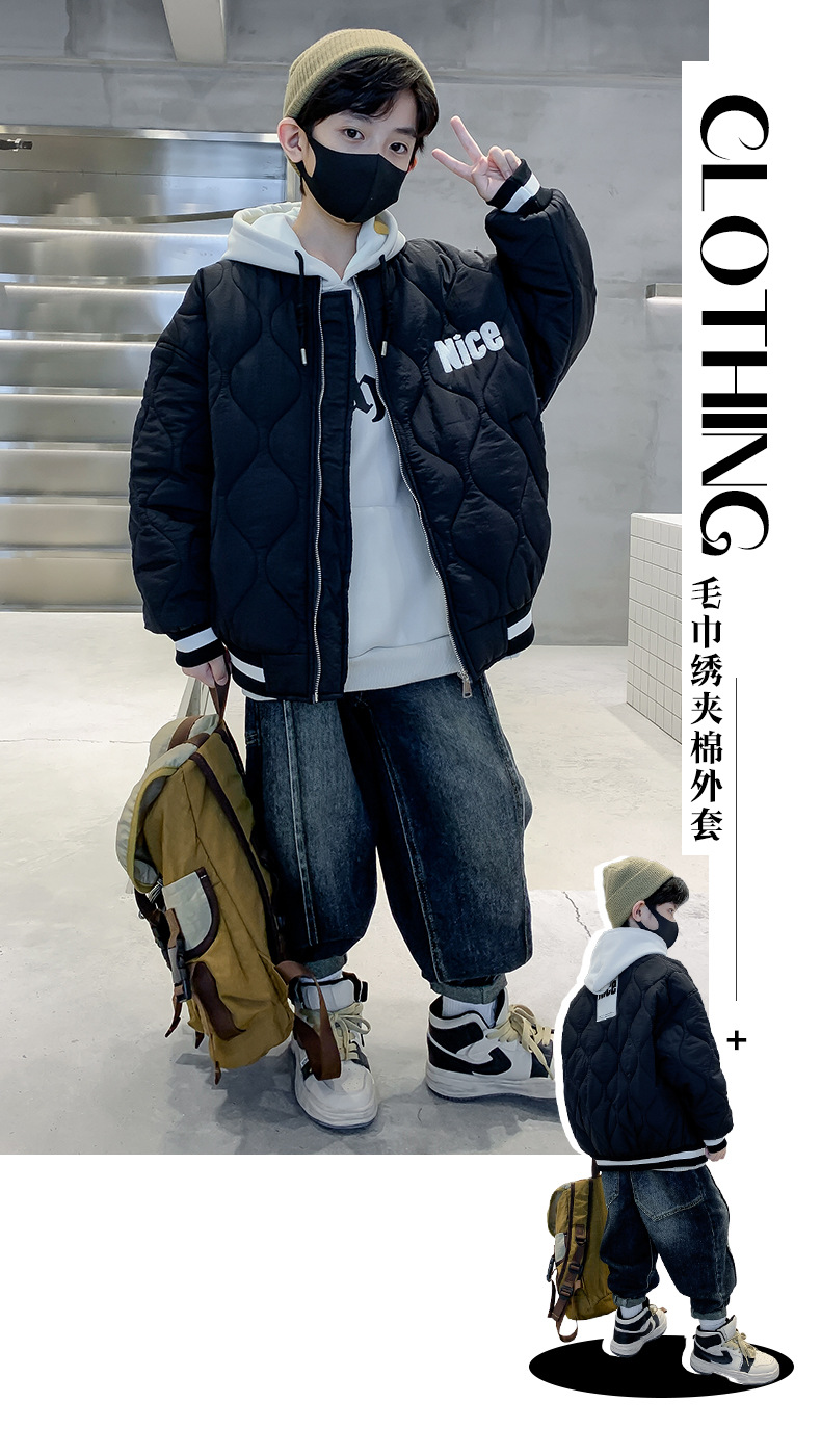 冬季男童薄棉衣冬装新品童装儿童大男孩菱格绗线夹棉外套棒球服潮
